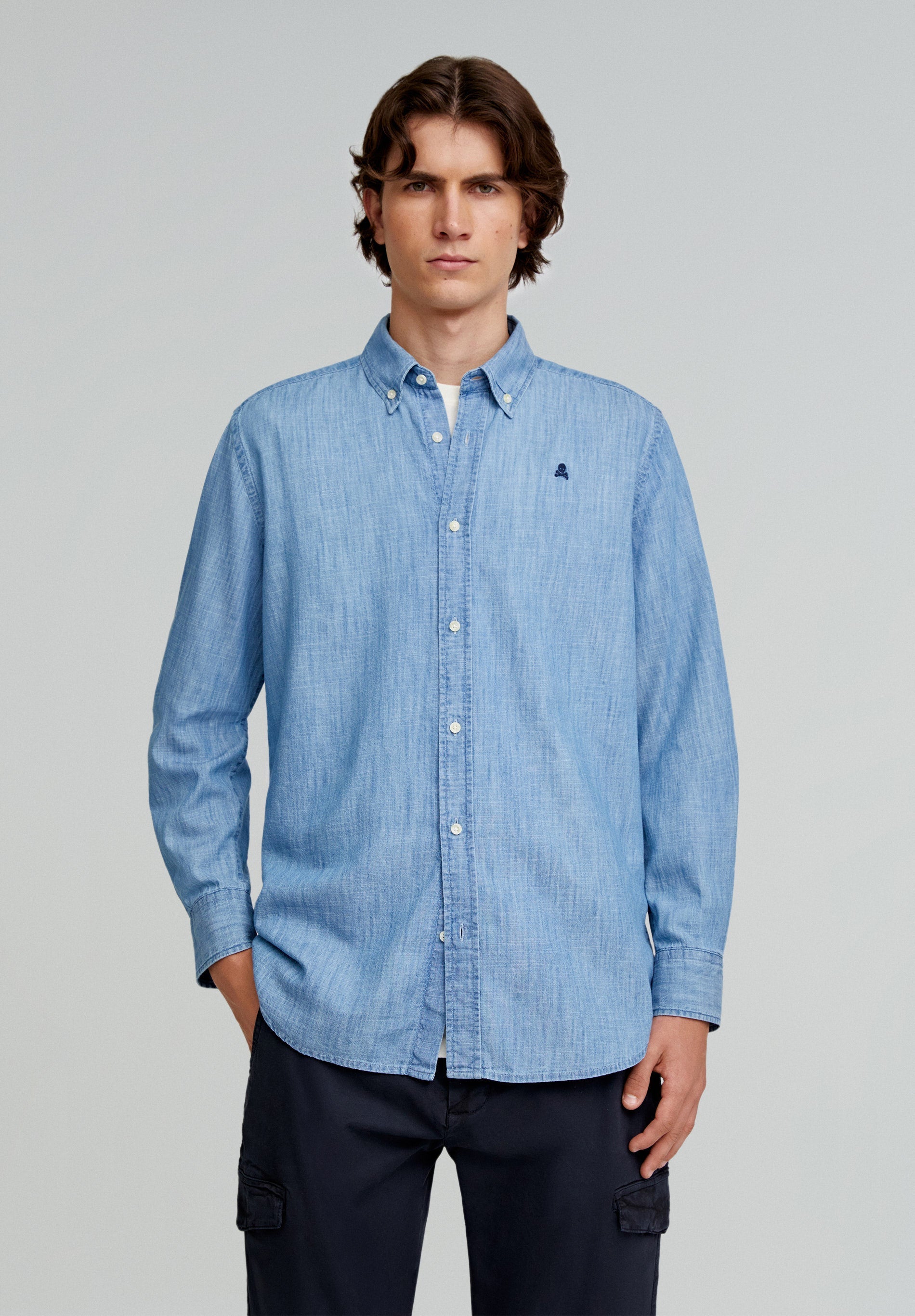 CAMISA DENIM CALAVERA CUELLO BOTONES CAMISA DENIM CALAVERA CUELLO BOTONES