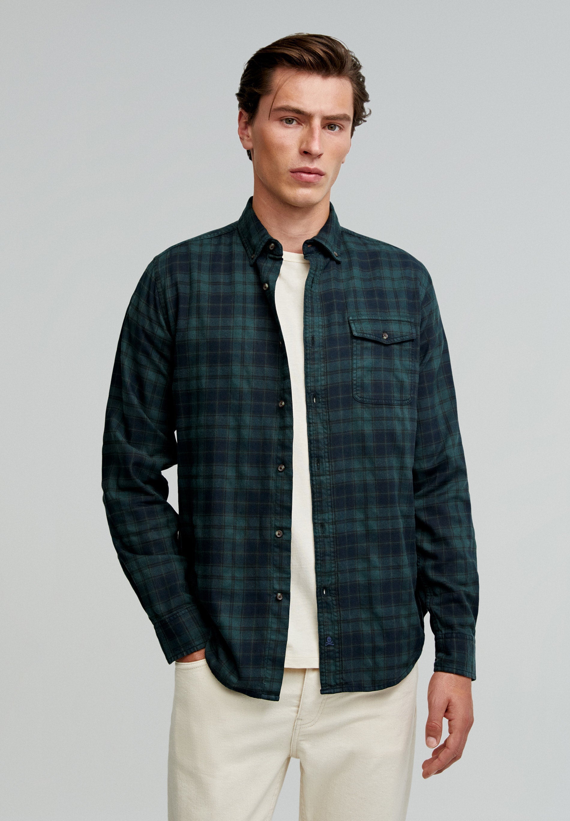 CAMISA CUADROS TARTÁN BOLSILLO TAPETA