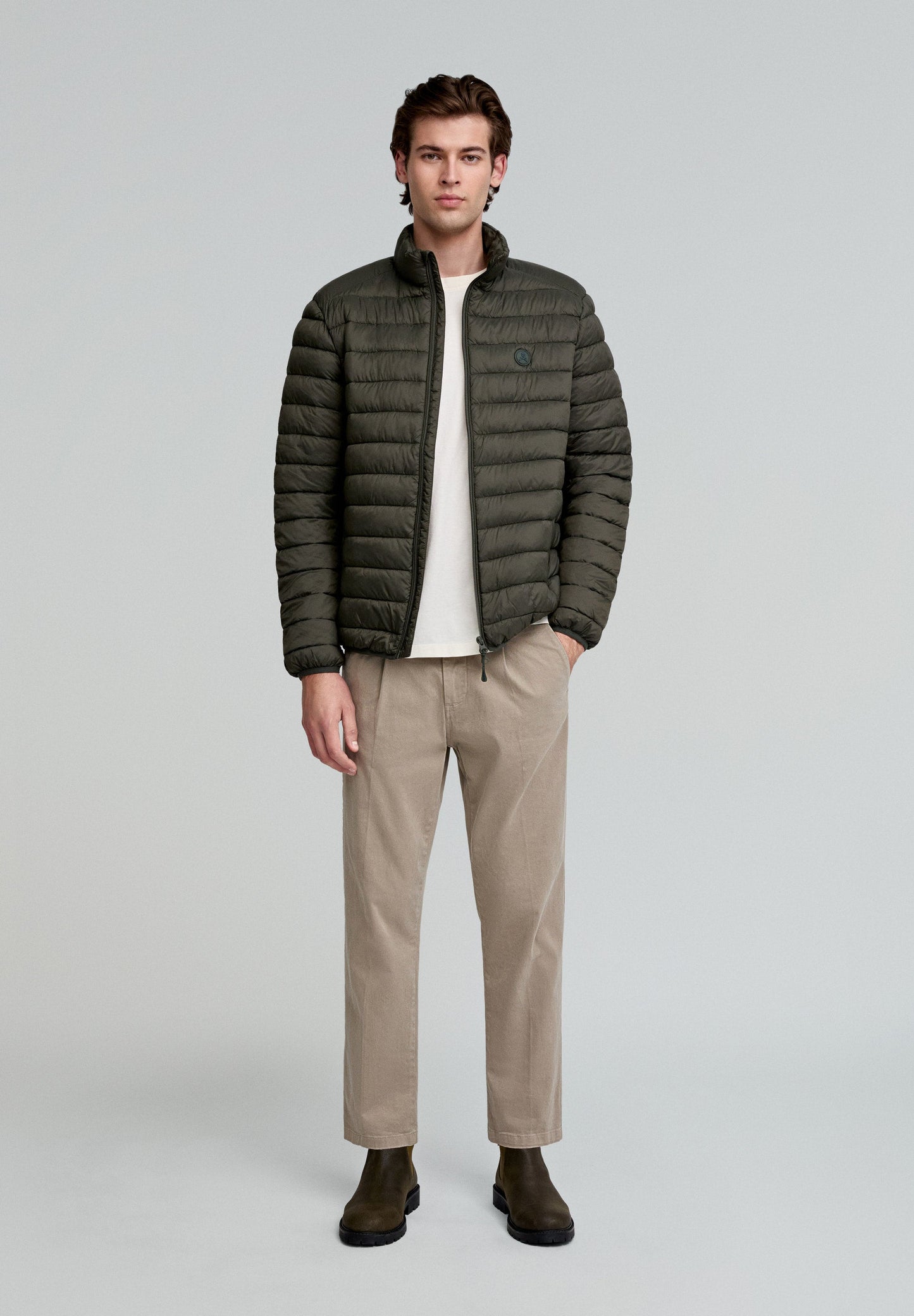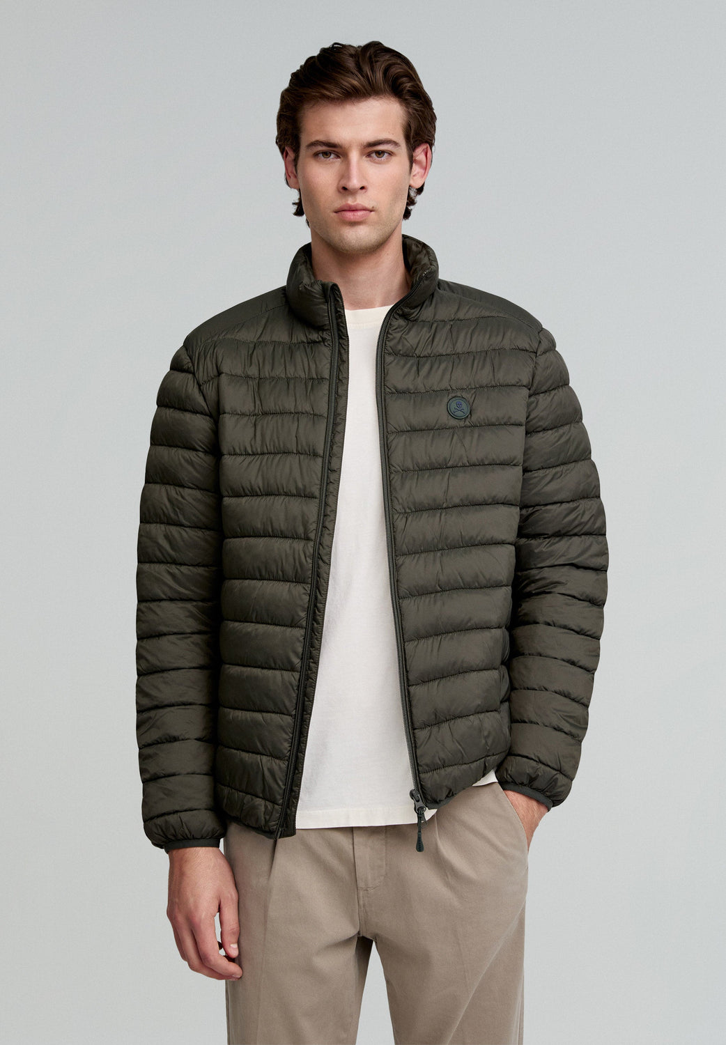 Chaqueta acolchada con parche de calavera engomado.