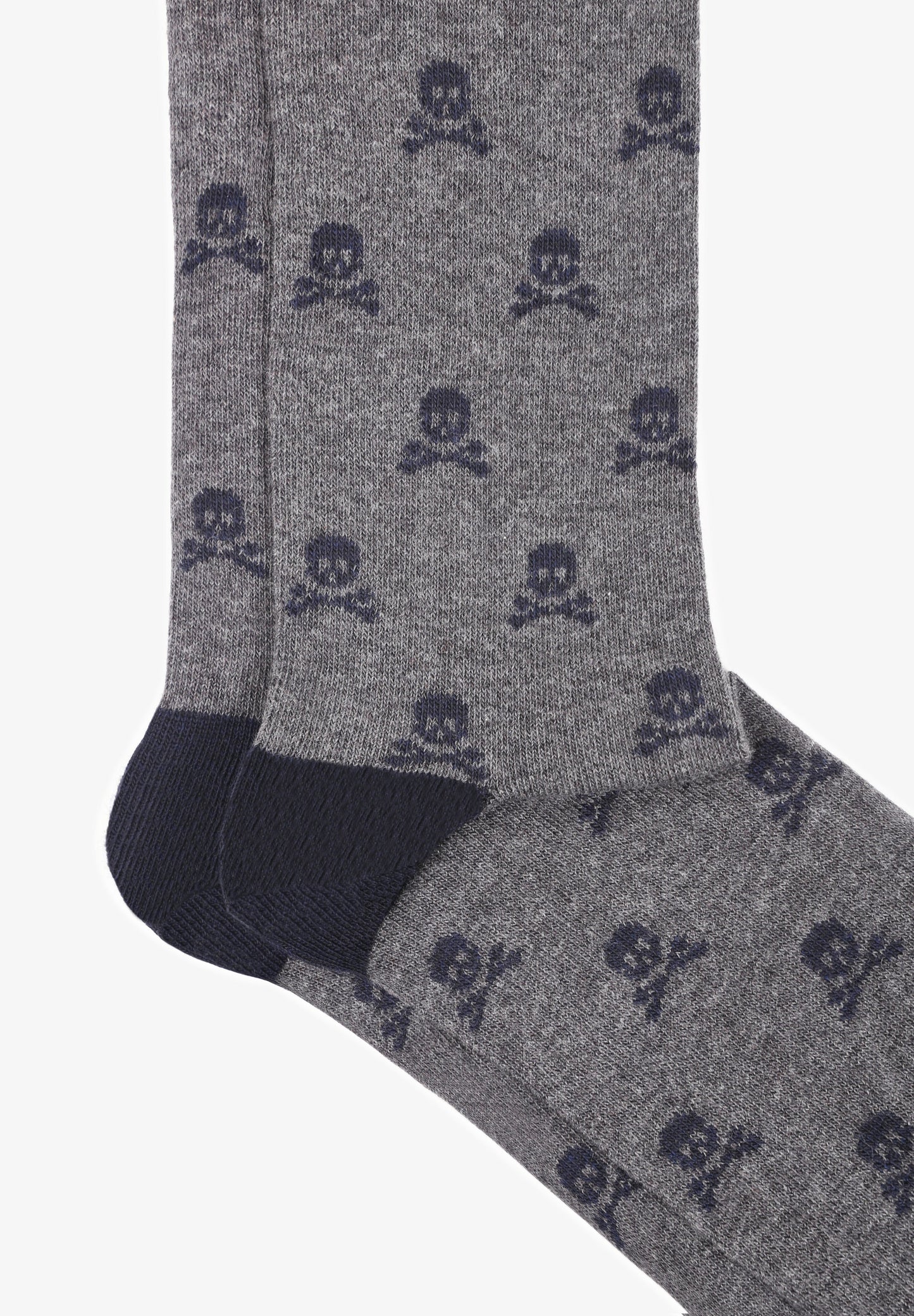 Calcetines con motivos de calaveras all over confeccionados en tejido mezcla de algodón. Caña larga y puntera a contraste.