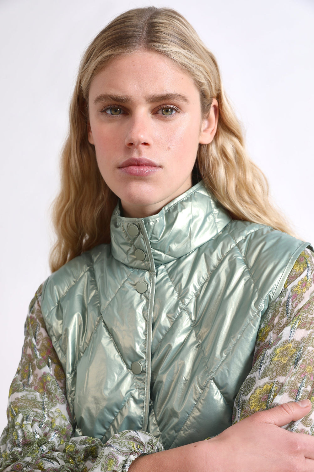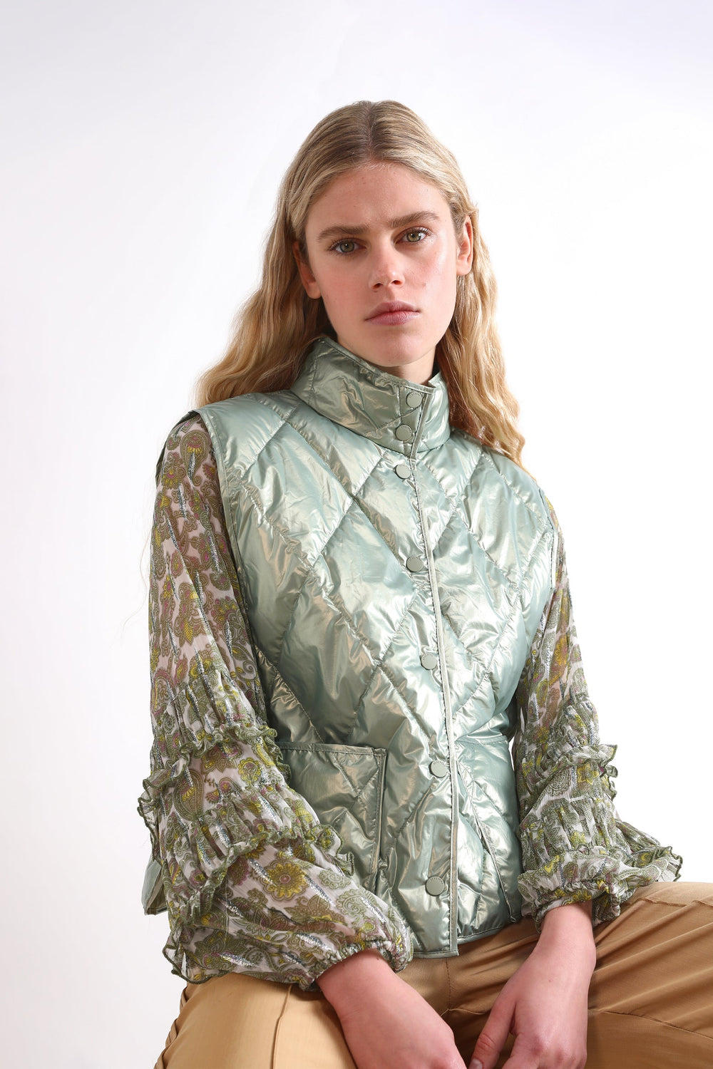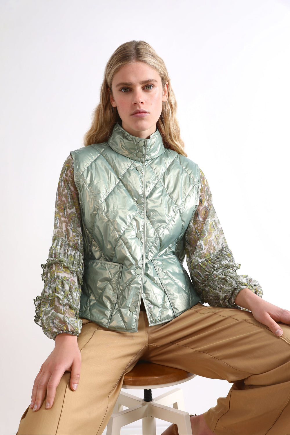 Chaleco acolchado con bolsillos tipo parche.