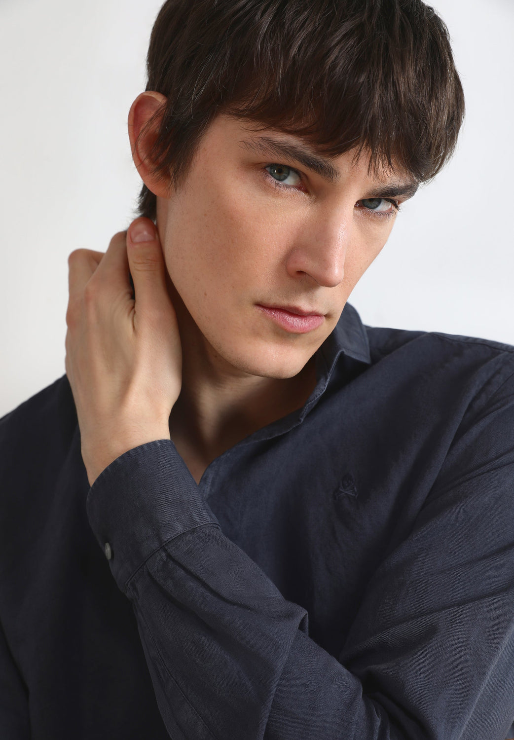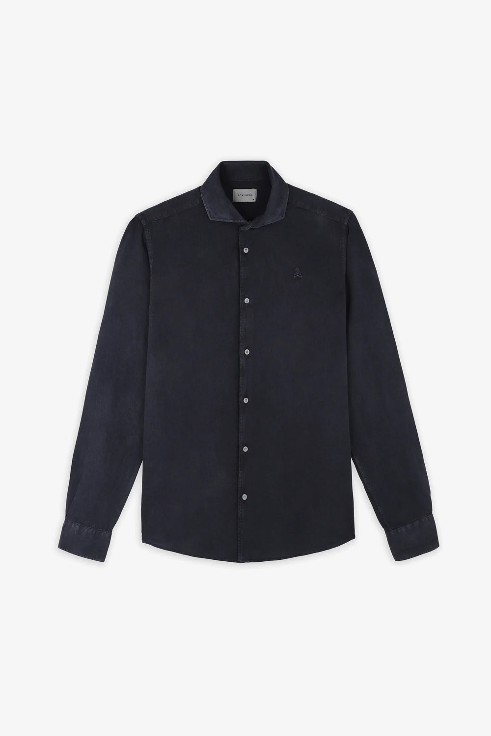 Camisa lino con calavera bordada a tono.