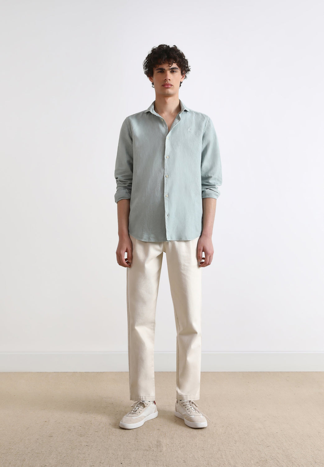 • Manga larga terminada en puño con botones