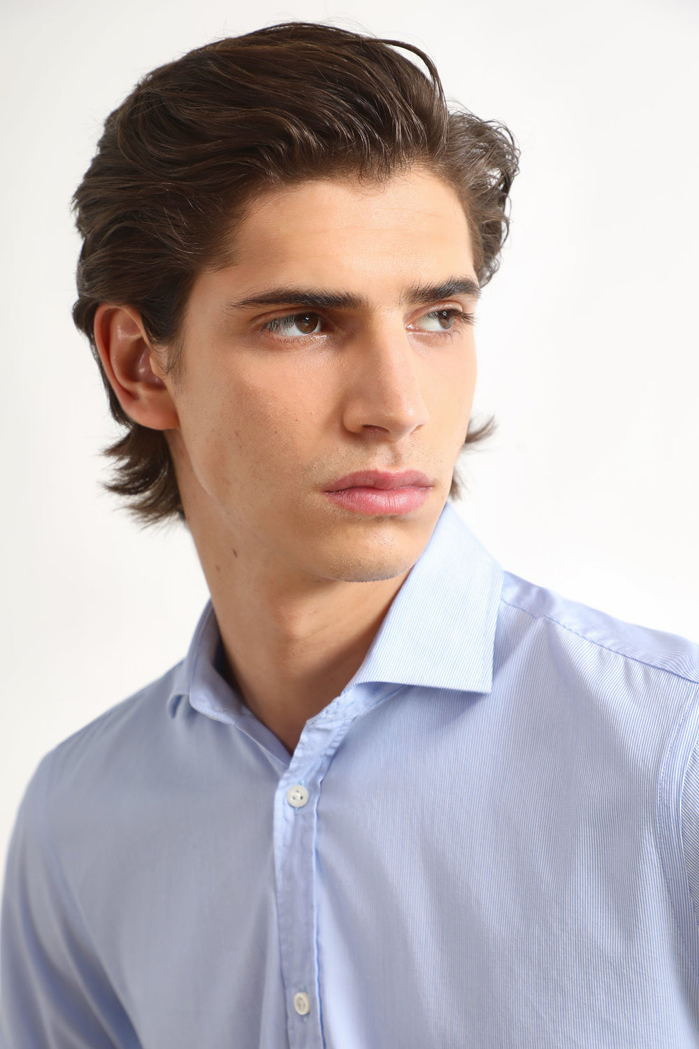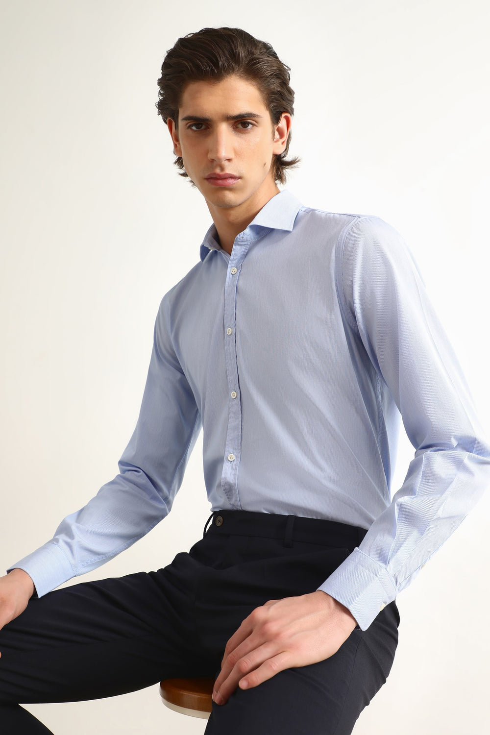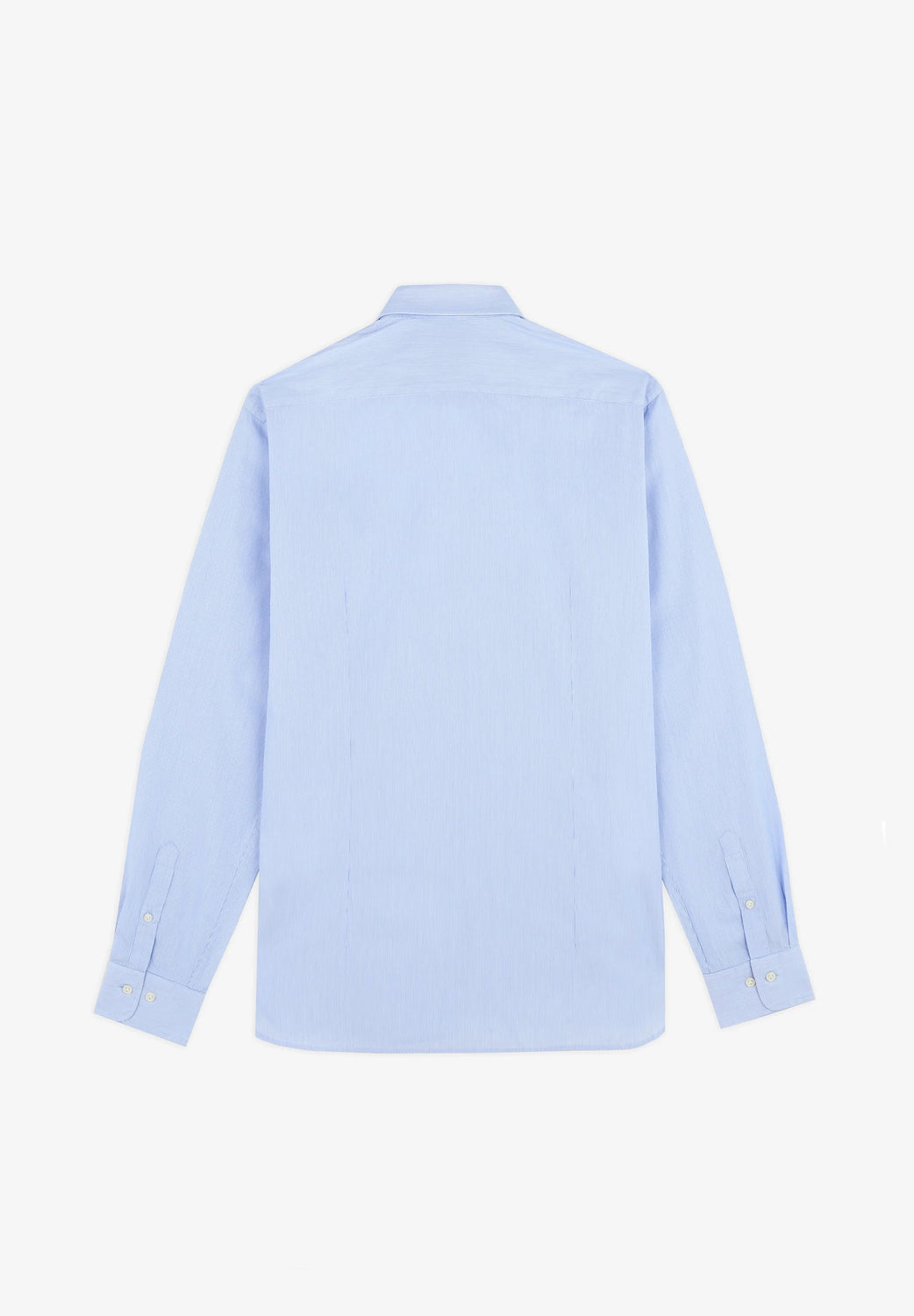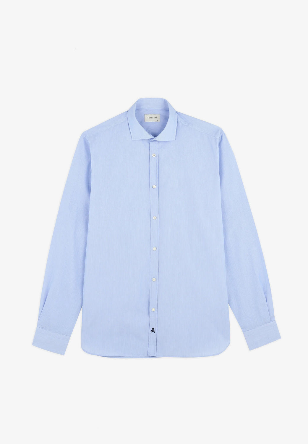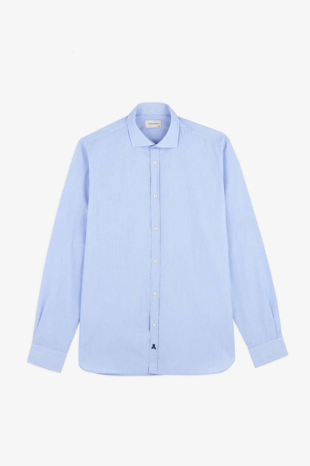 Camisa tejido mil rayas con detalle calavera en la tapeta frontal.