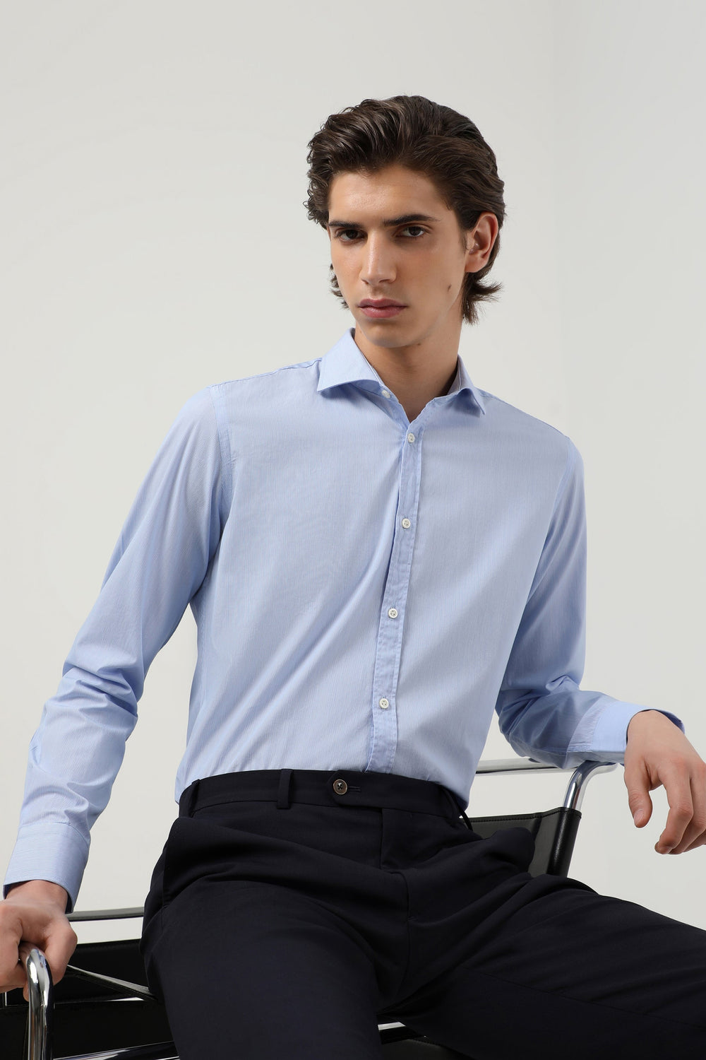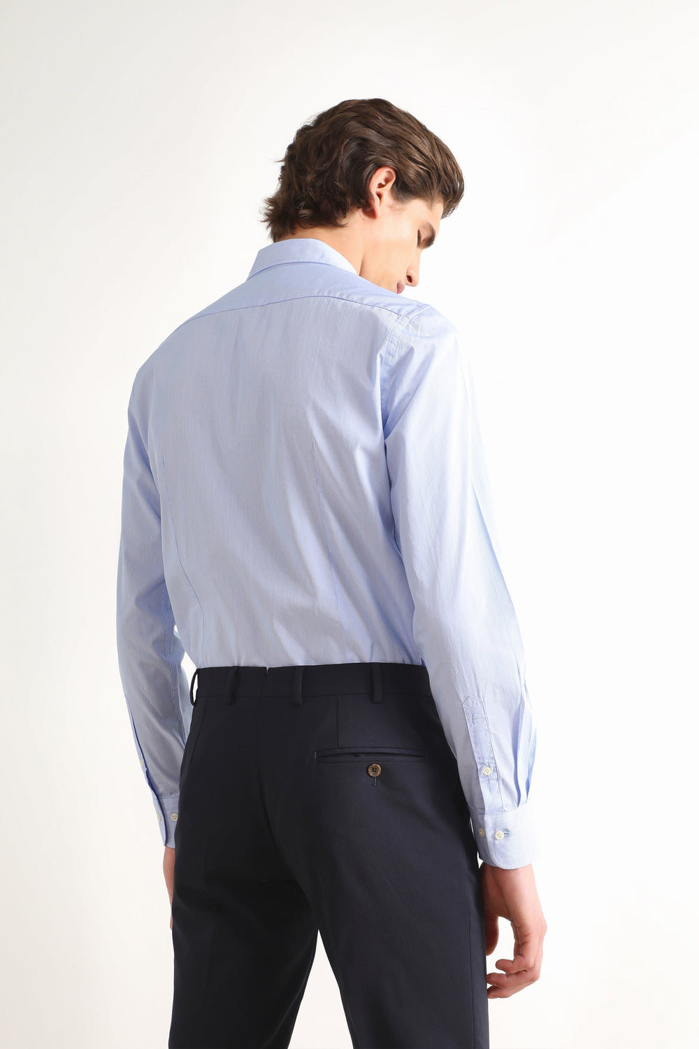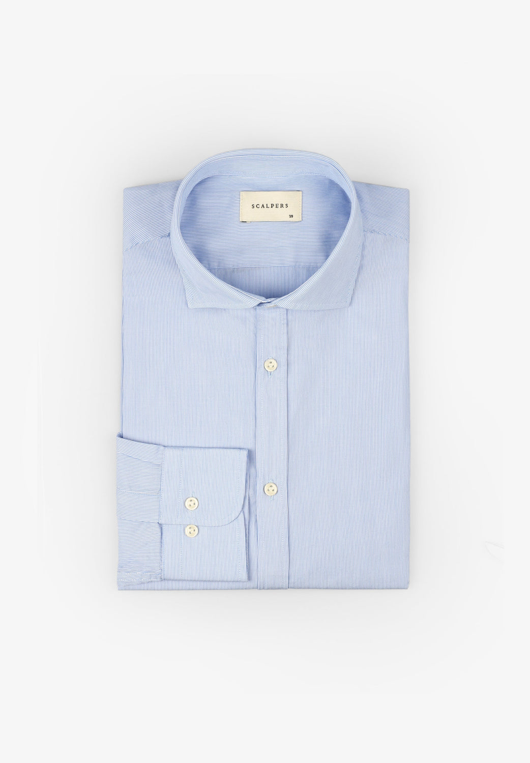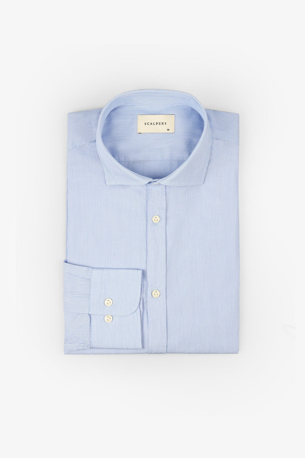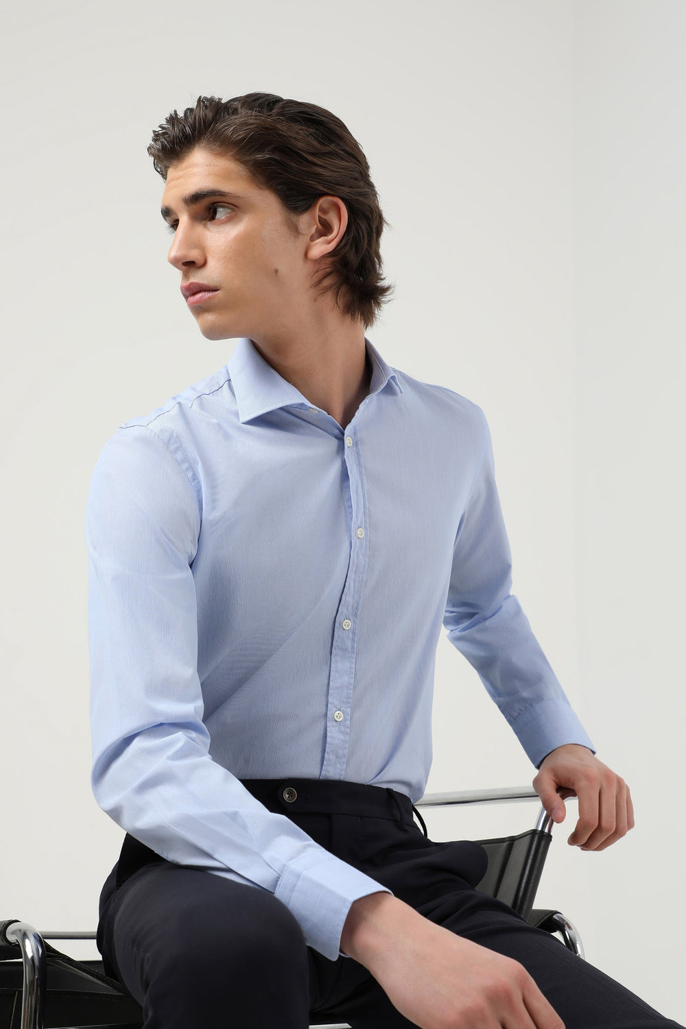 Camisa tejido mil rayas con detalle calavera en la tapeta frontal.