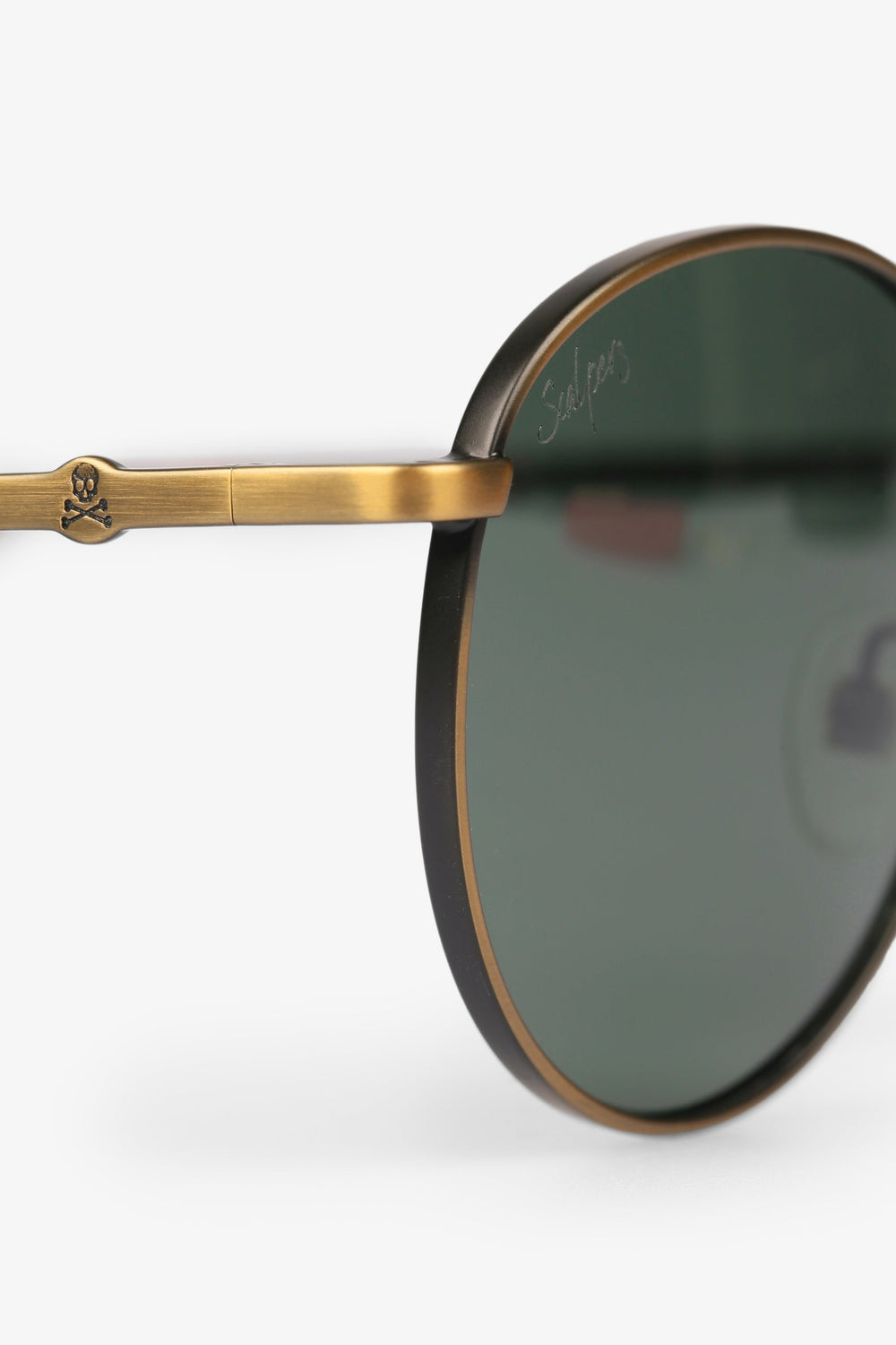 - Logo grabado en el cristal y calavera en la patilla