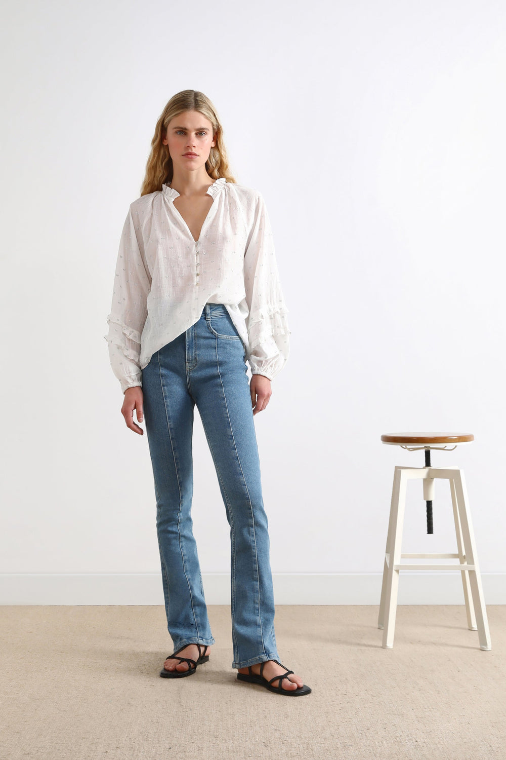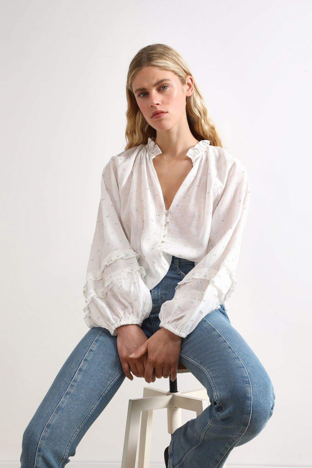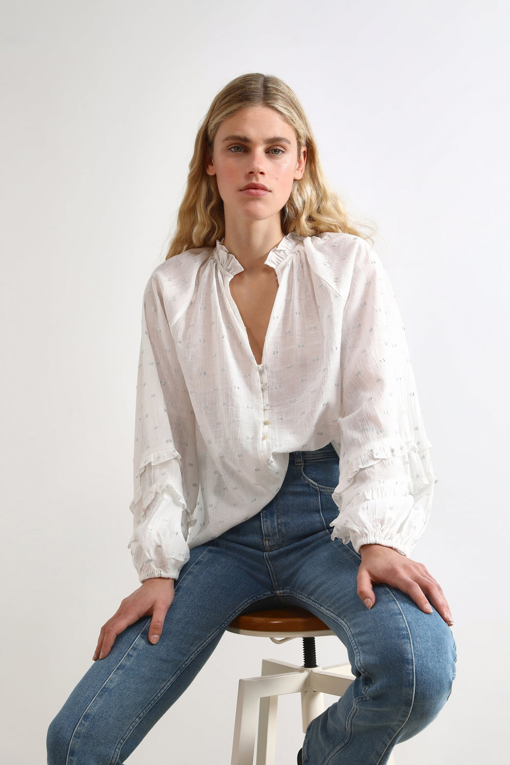 Blusa con detalles metalizados.