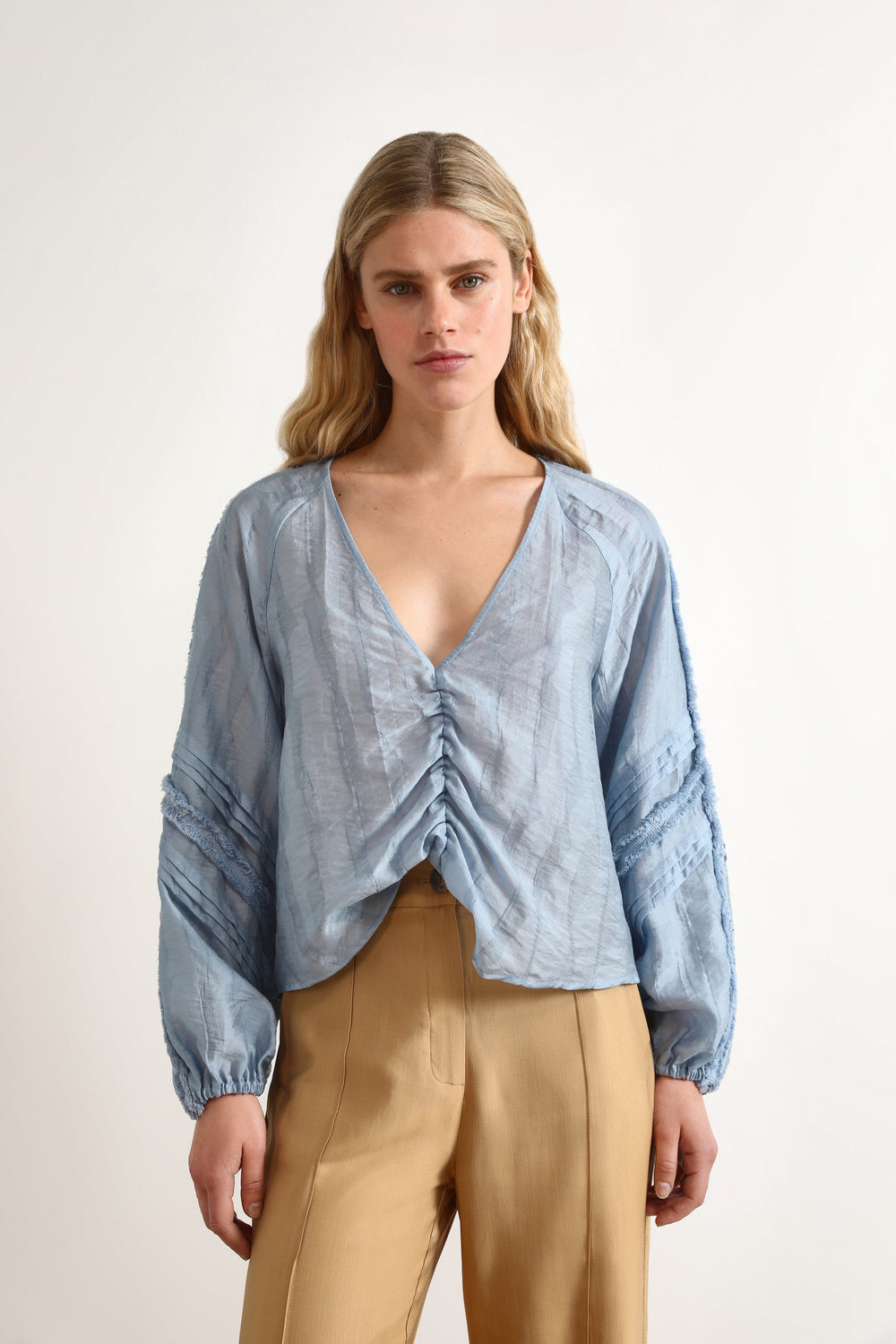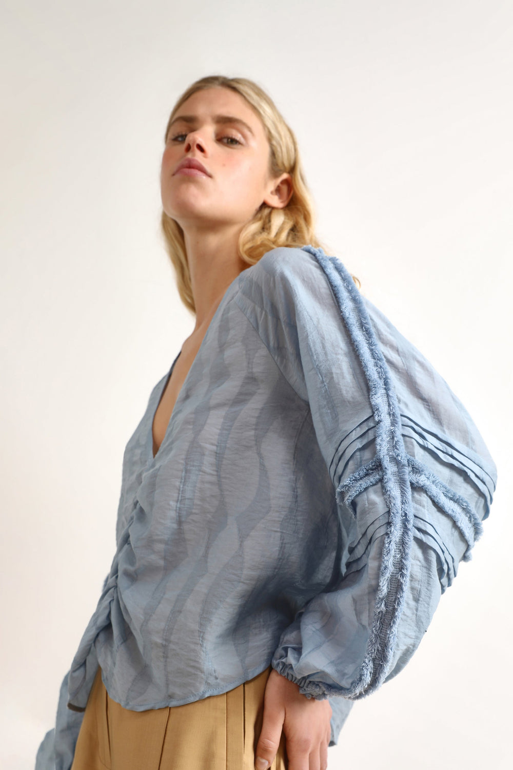 Blusa fluida con detalles en relieve.