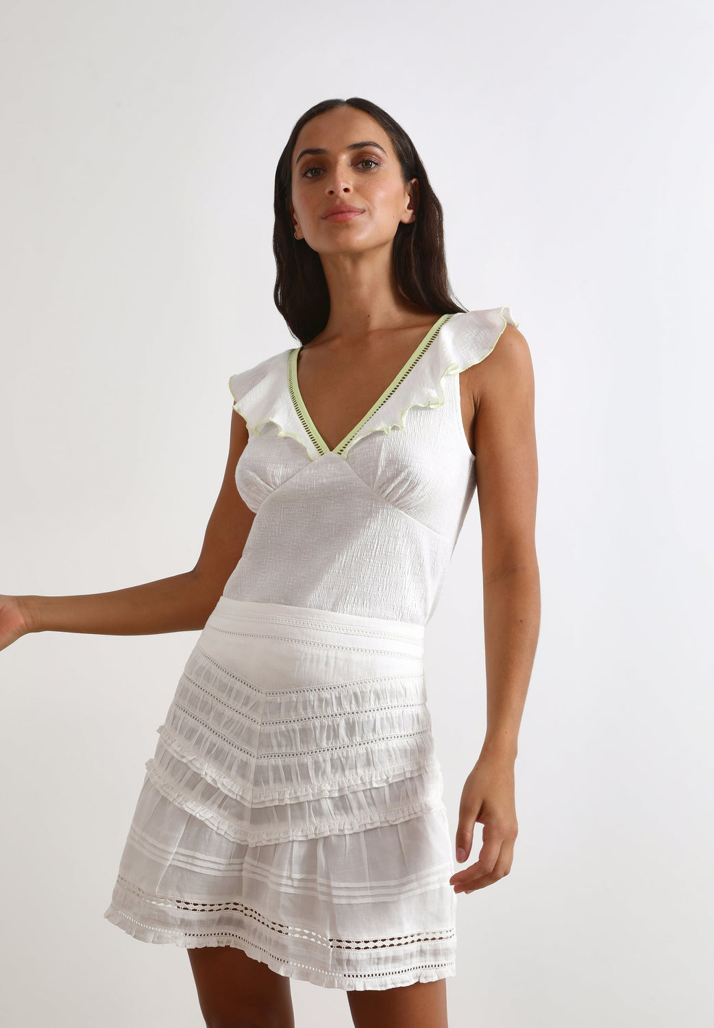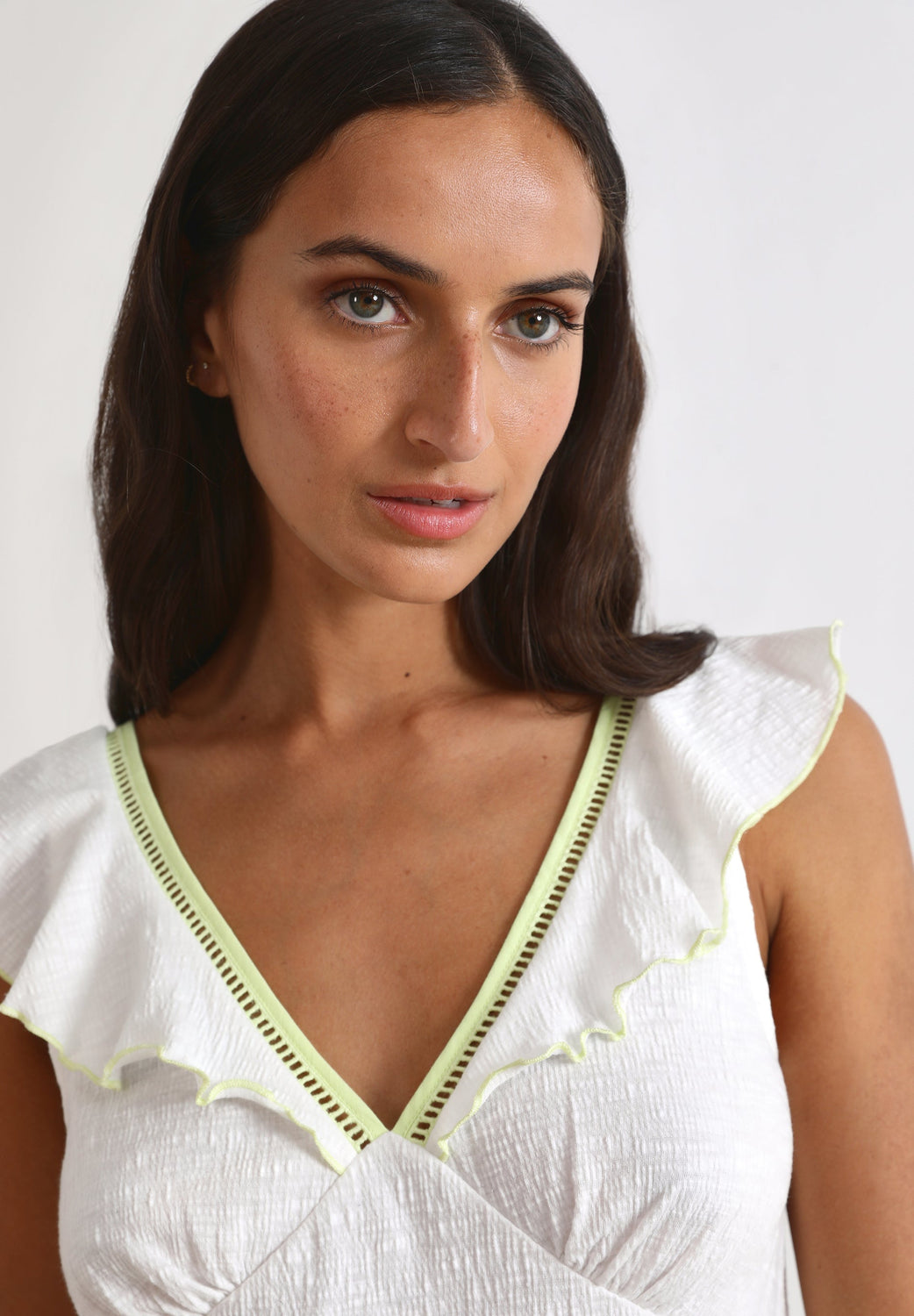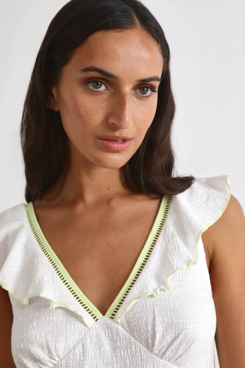 Top con volantes en manga.