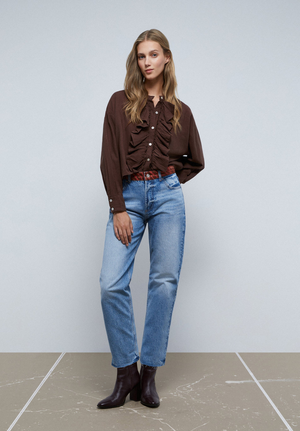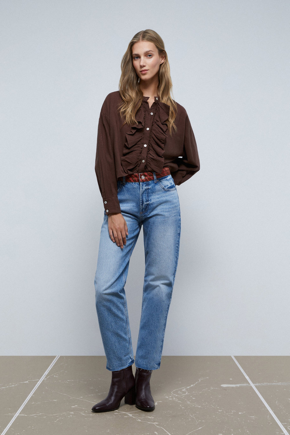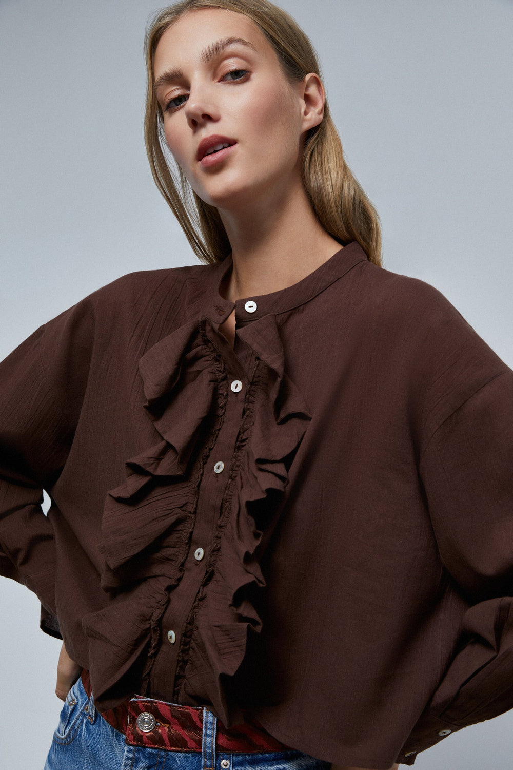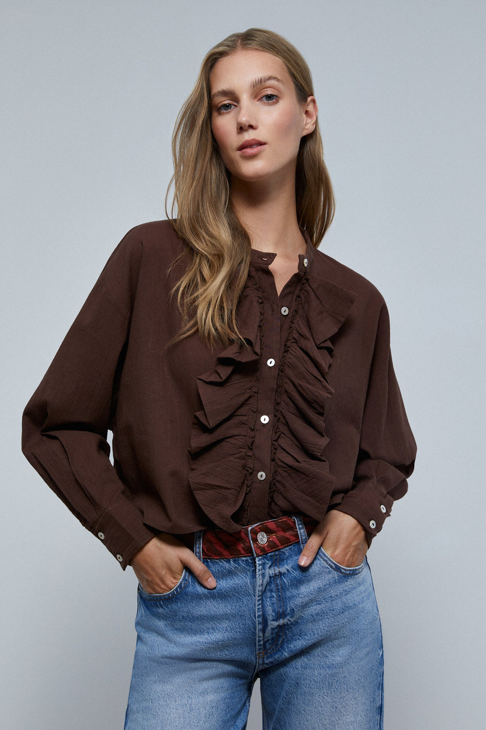 Blusa con detalle de volantes frontales.