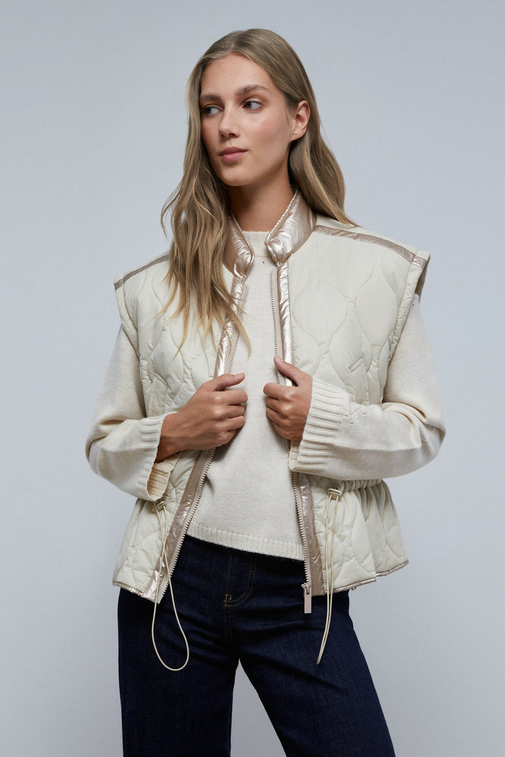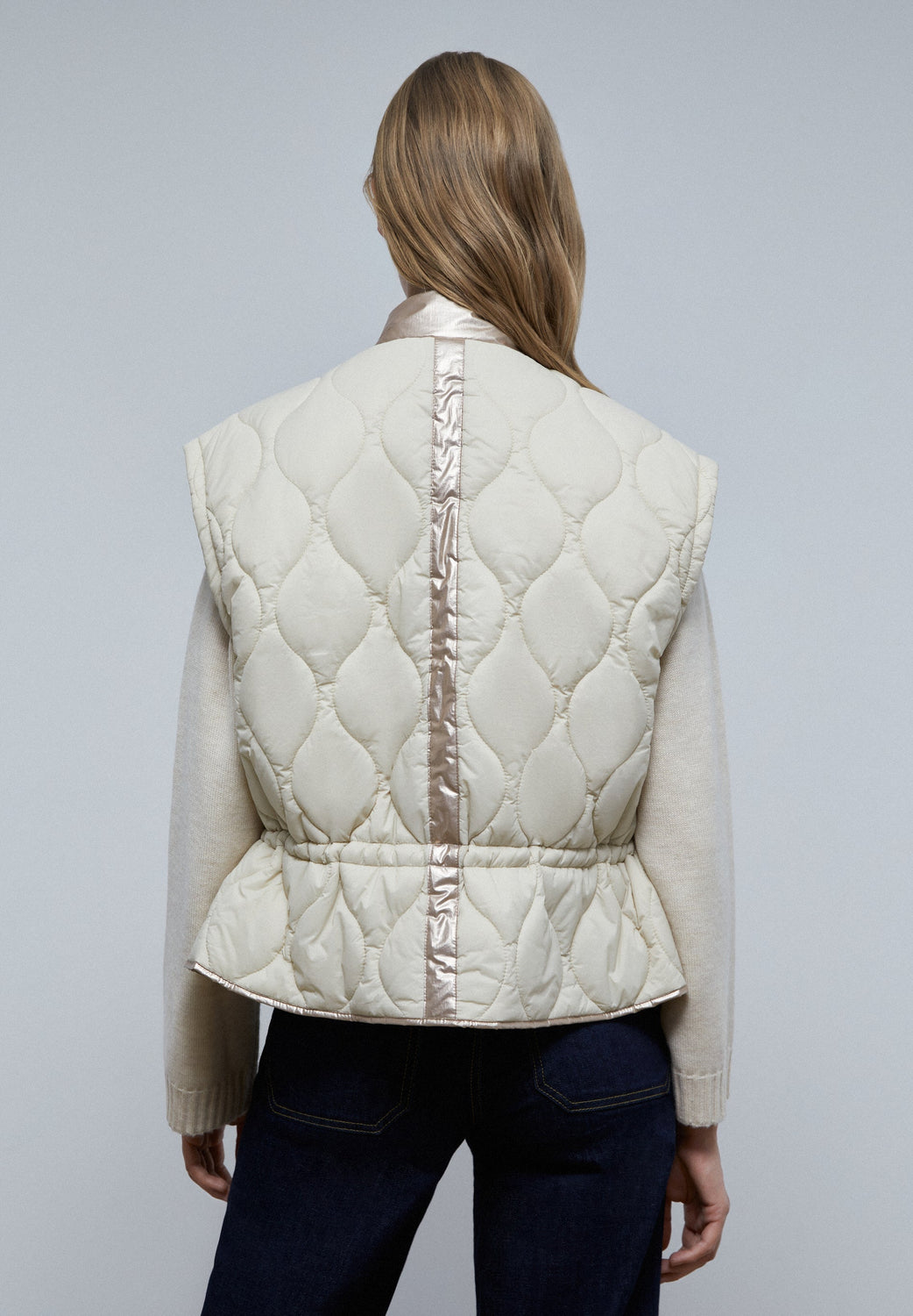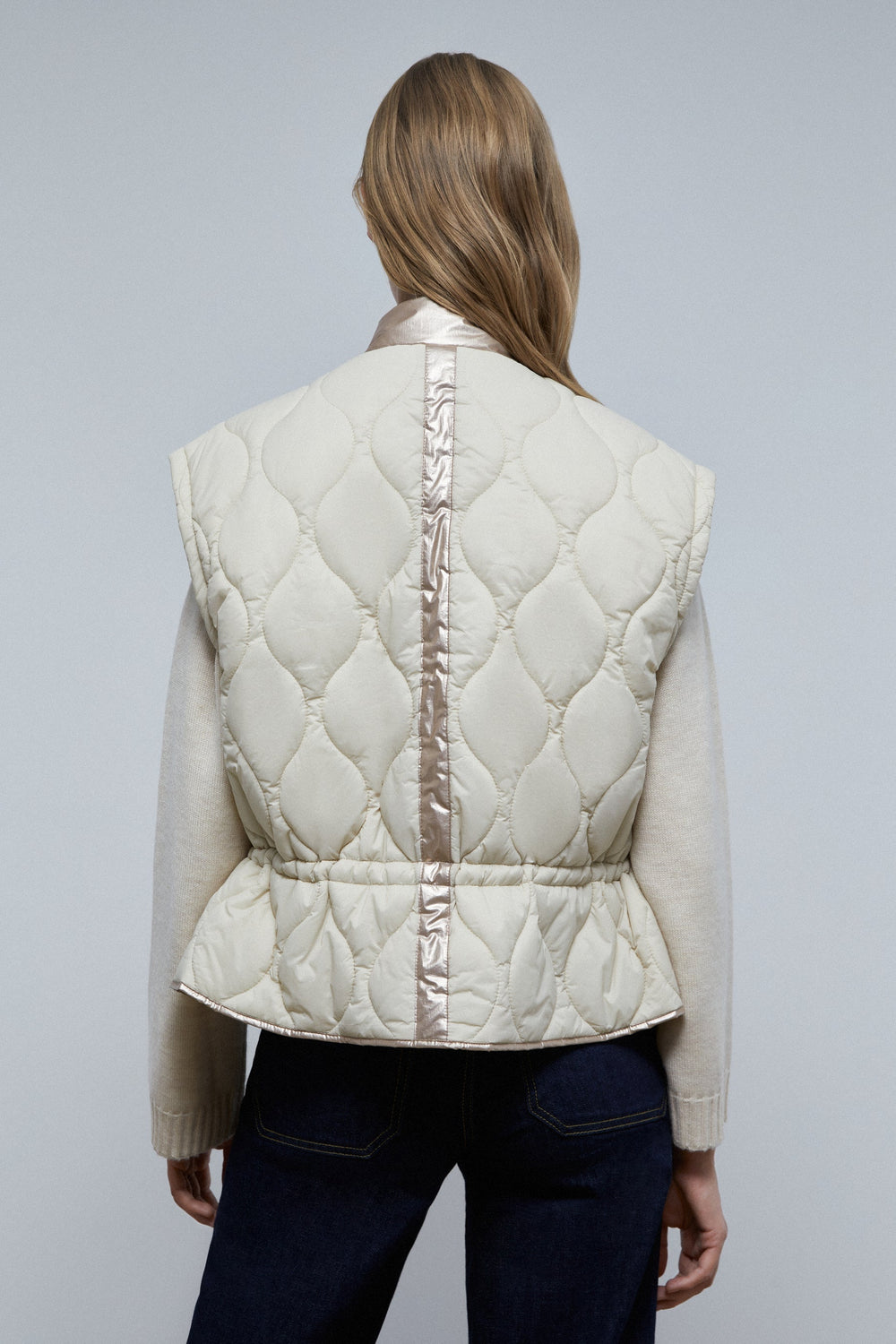 Chaleco acolchado con detalles metalizados.