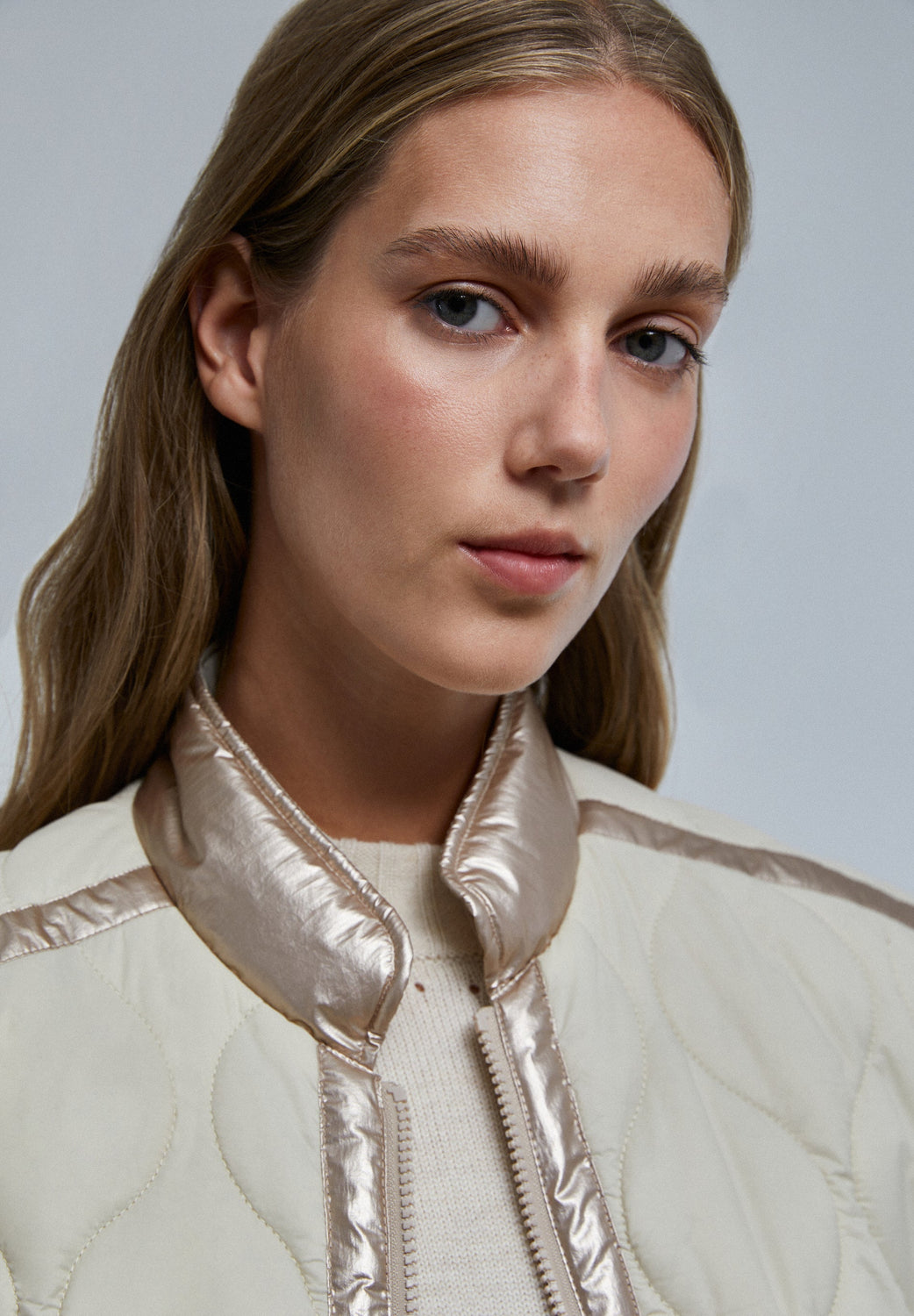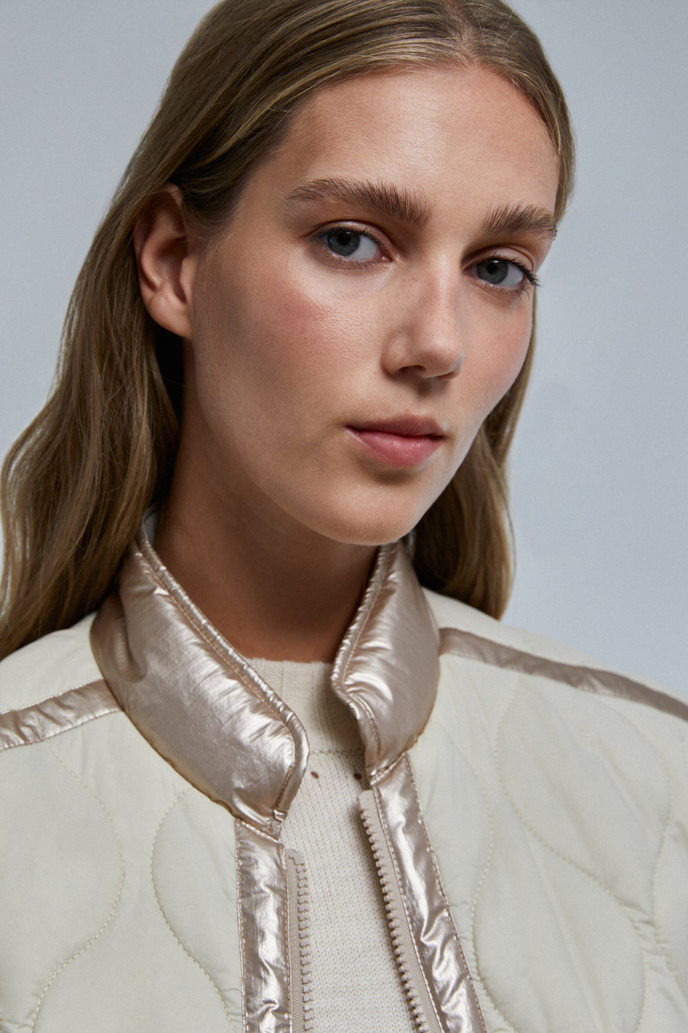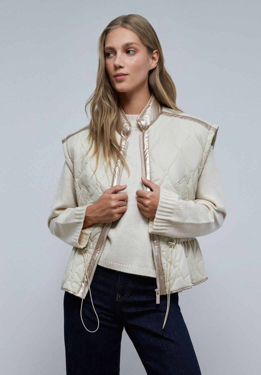 Chaleco acolchado con detalles metalizados.