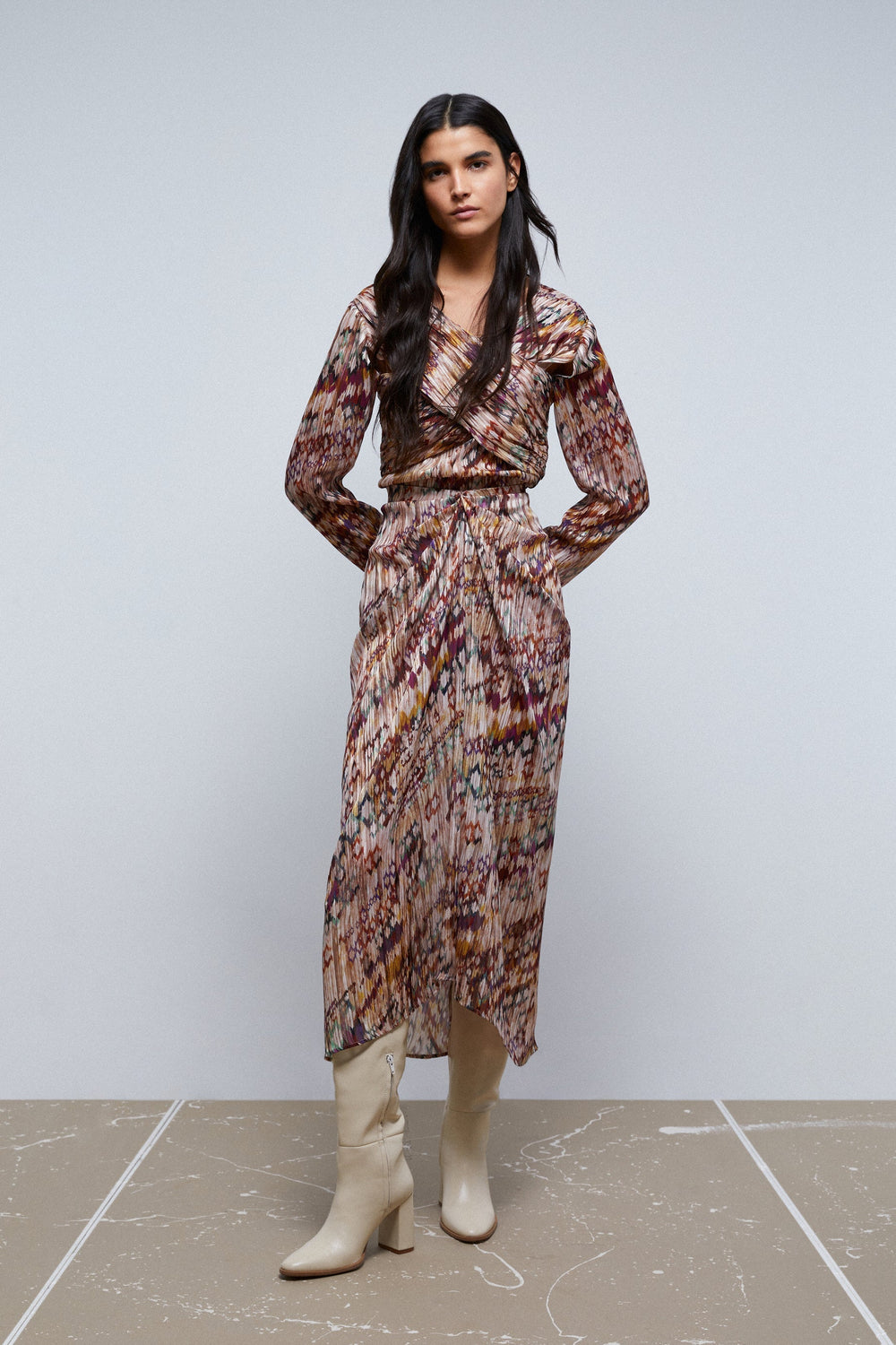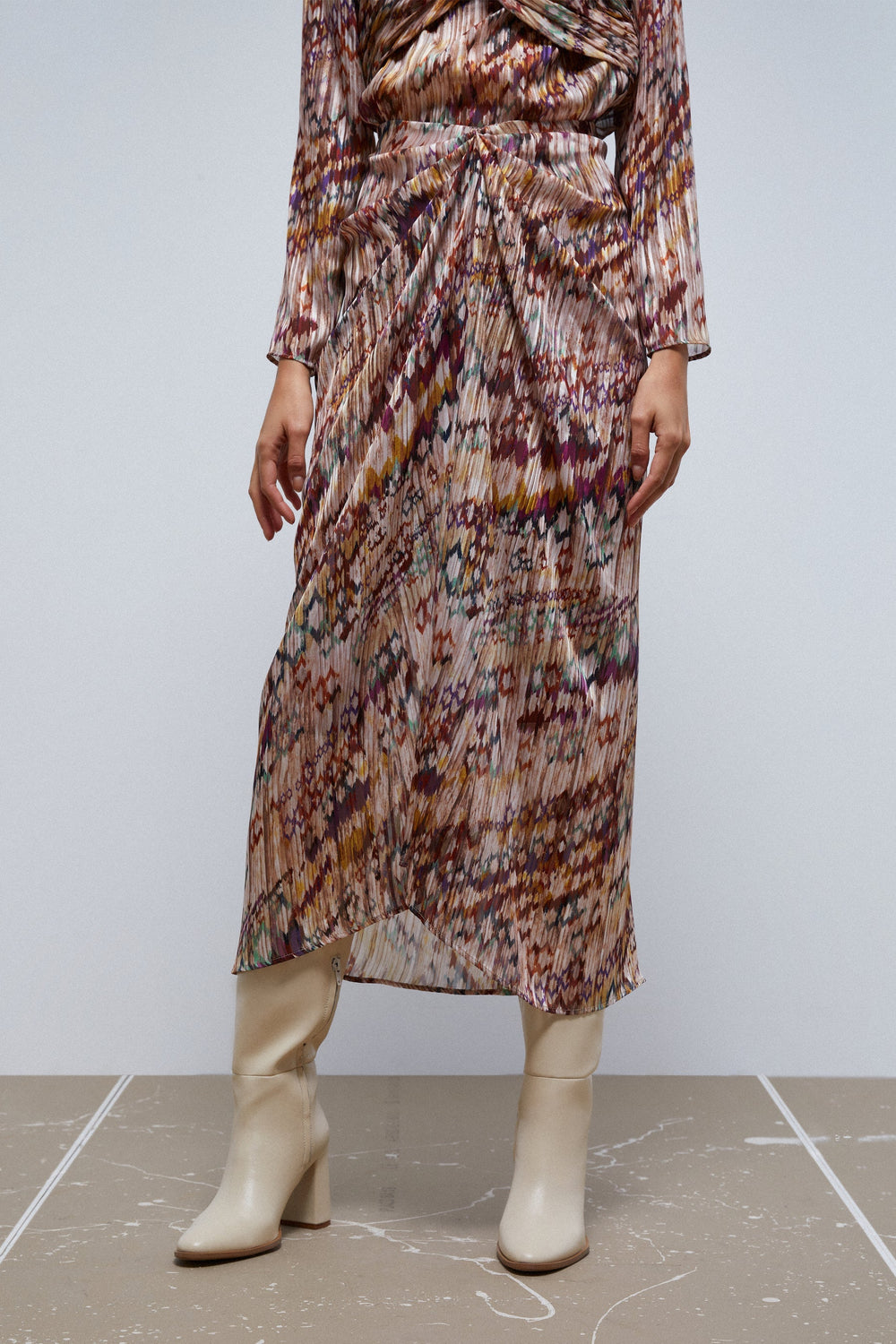 Falda midi plisada con print.