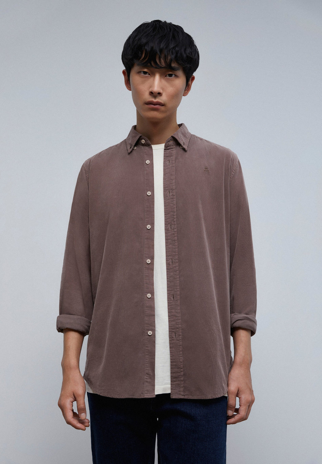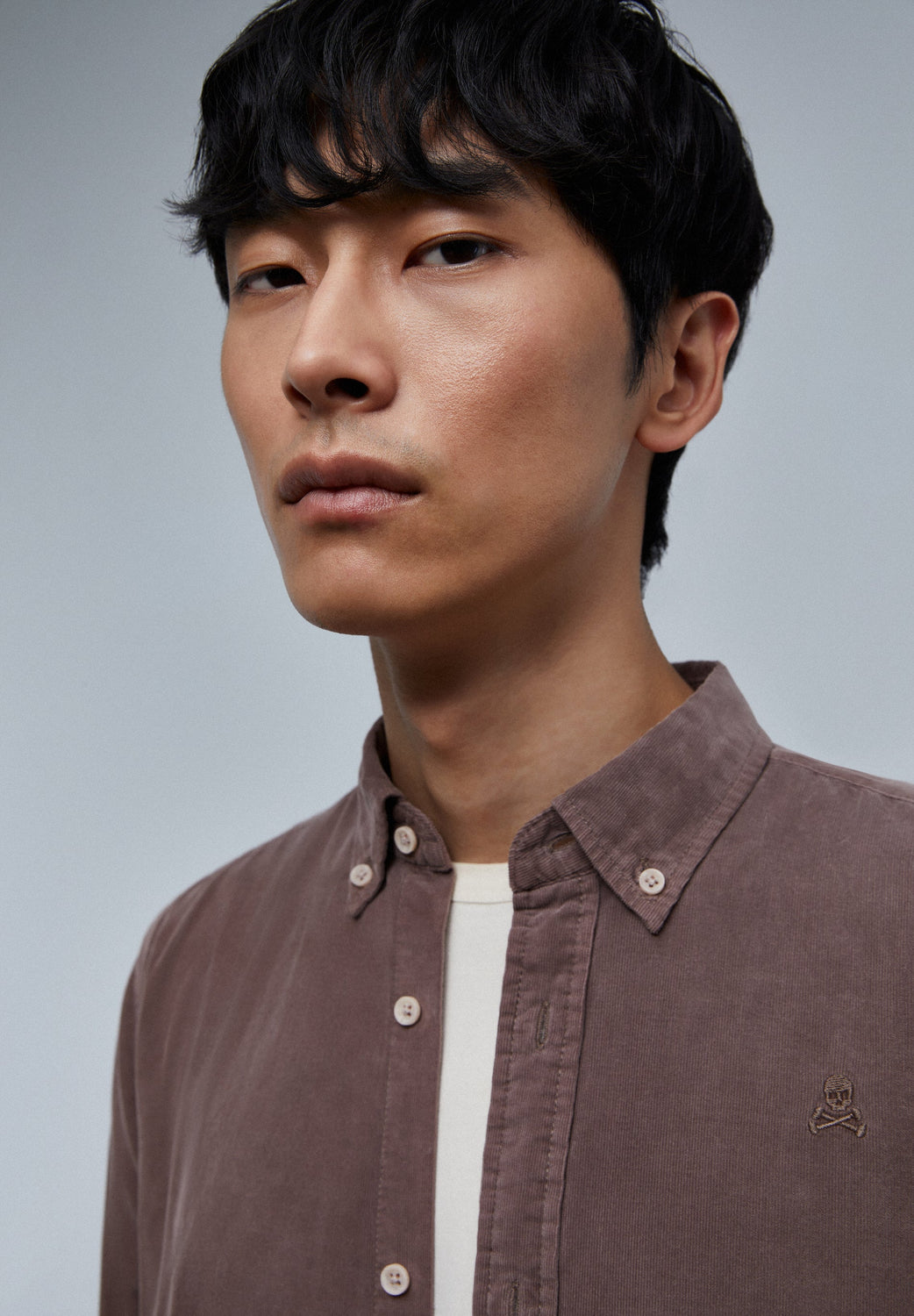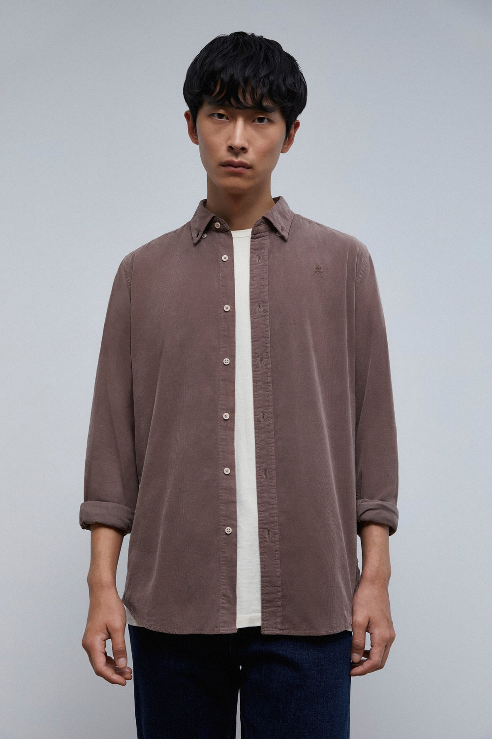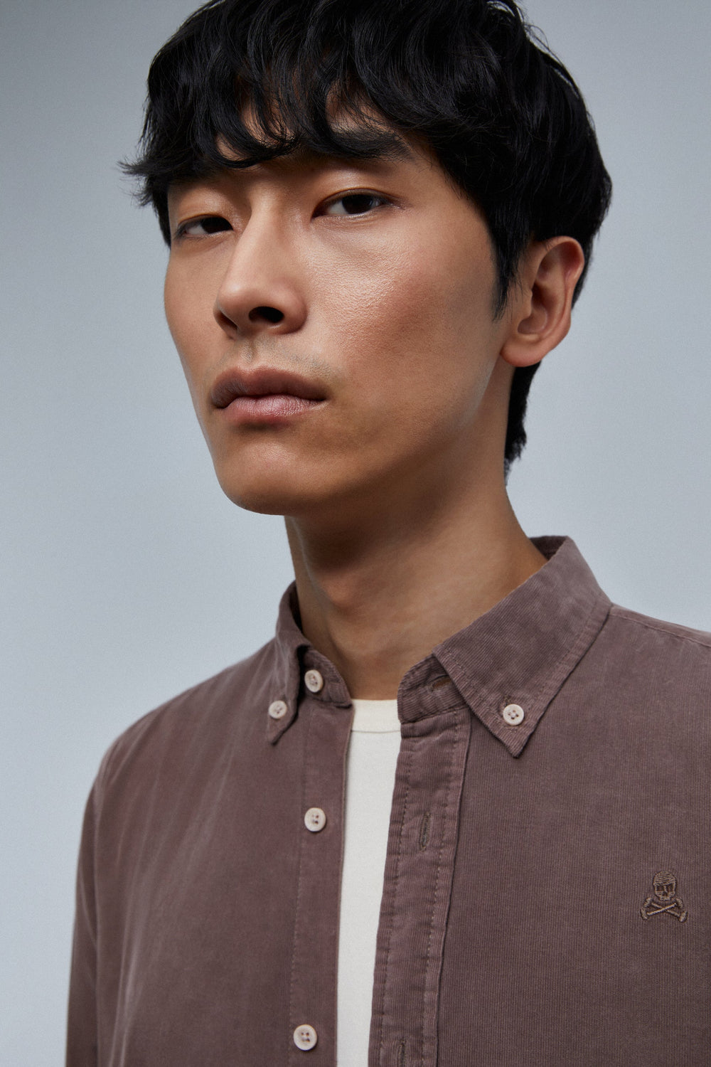 Camisa de pana con calavera bordada a tono