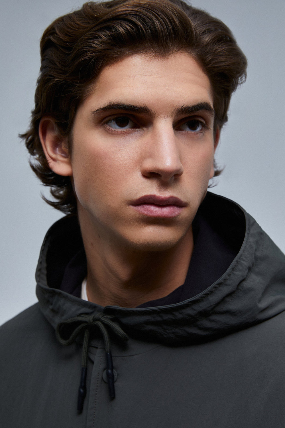 - Cuello con capucha ajustable con cordón