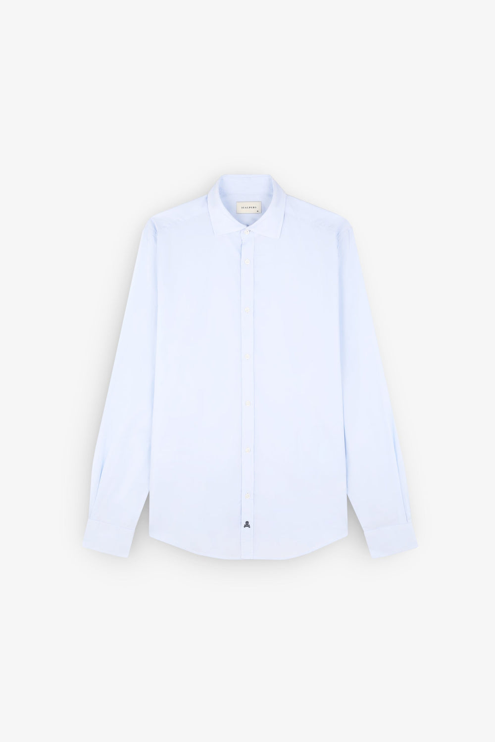 Camisa de vestir clásica con calavera bordada a contraste en tapeta.