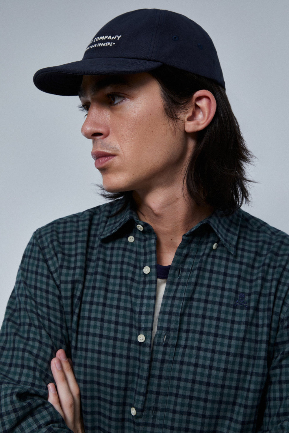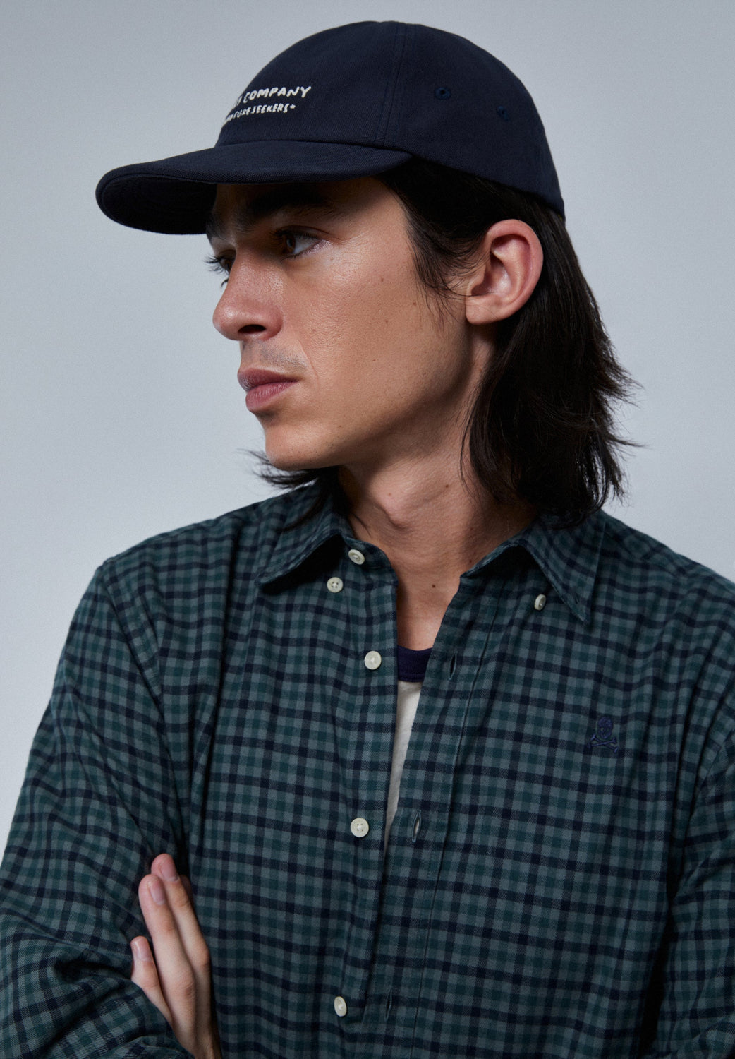 Camisa de cuadros con calavera bordada a tono en el pecho.