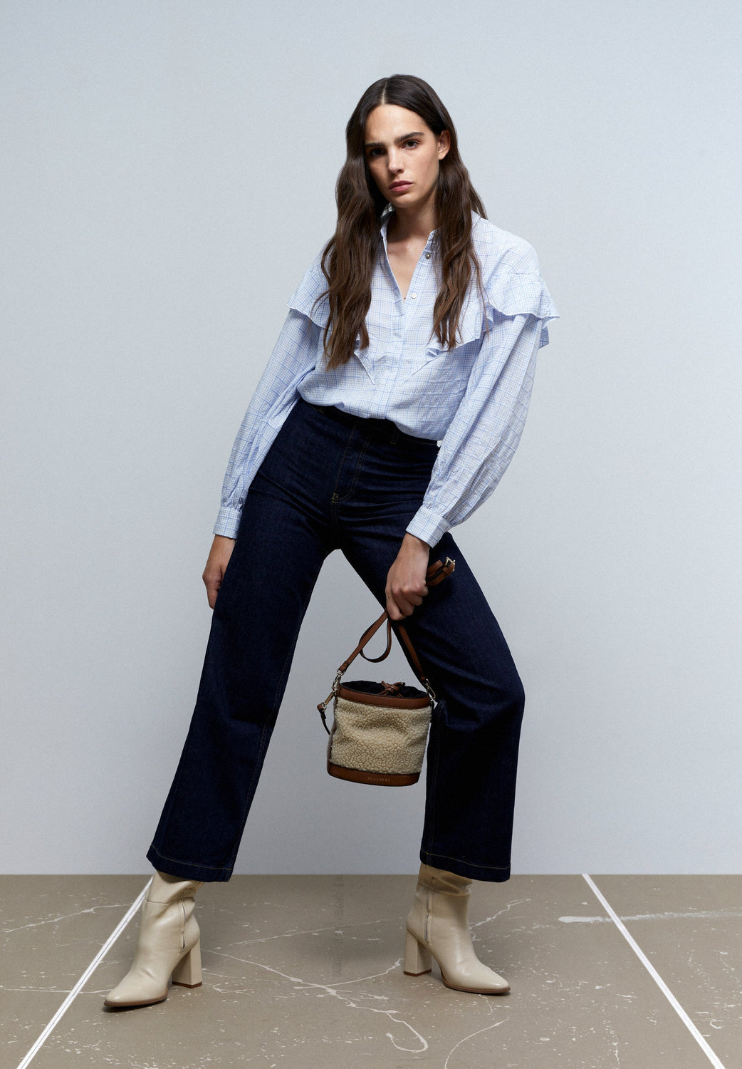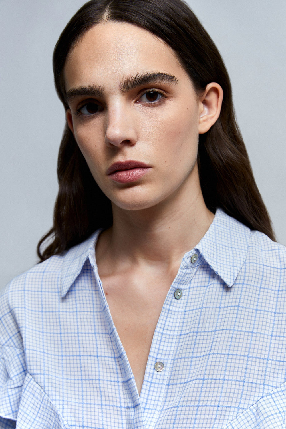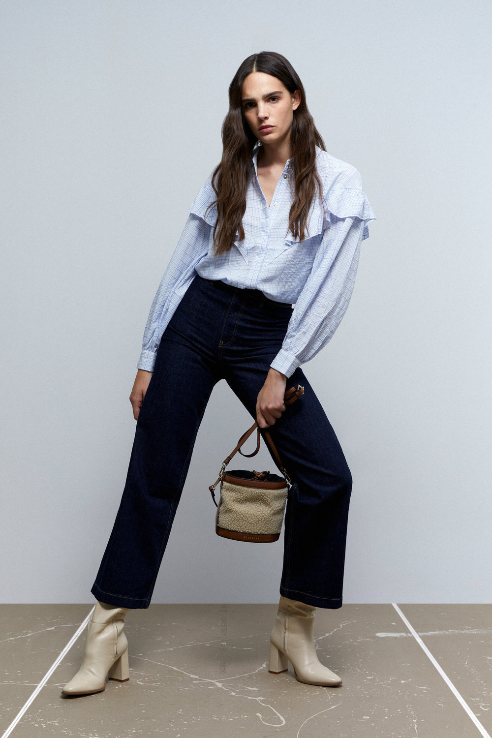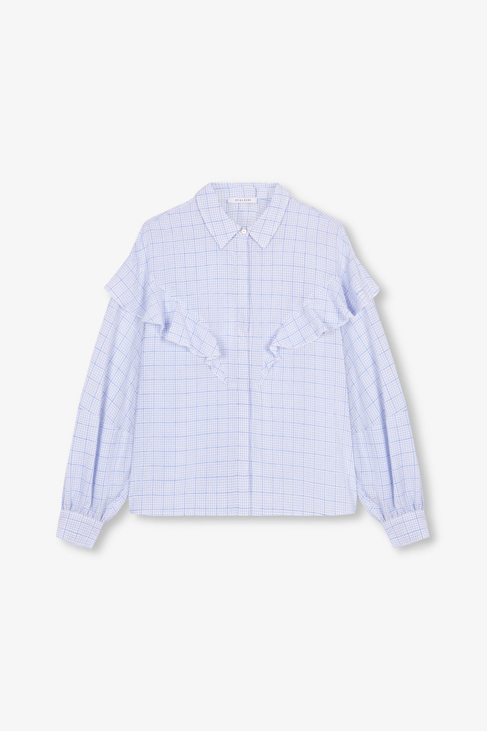 Camisa canesú con volante y estampado de cuadros