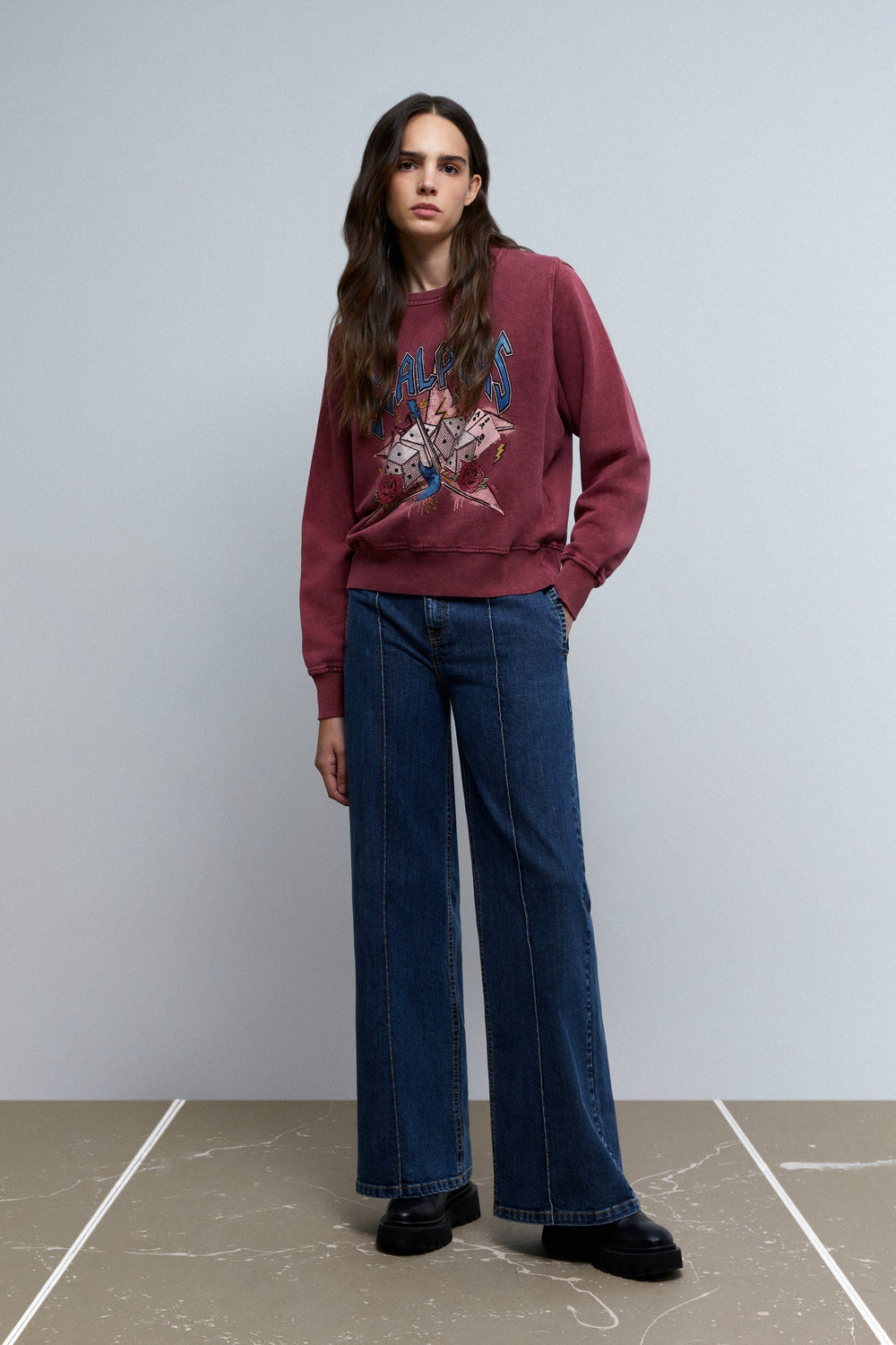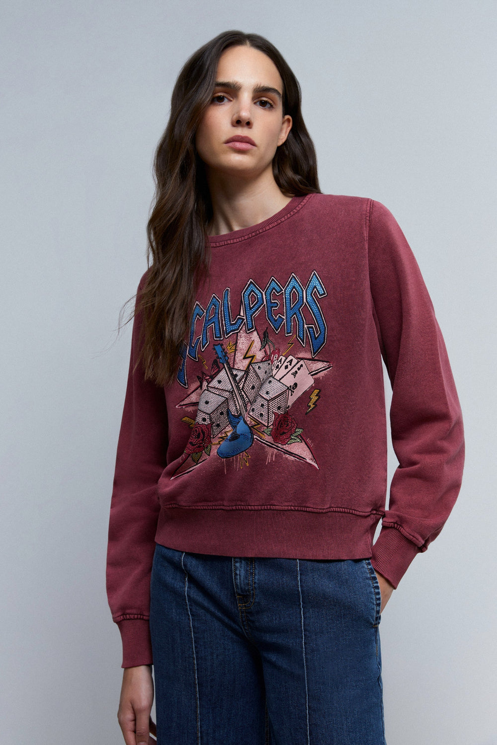 BUZO con print frontal y cristales