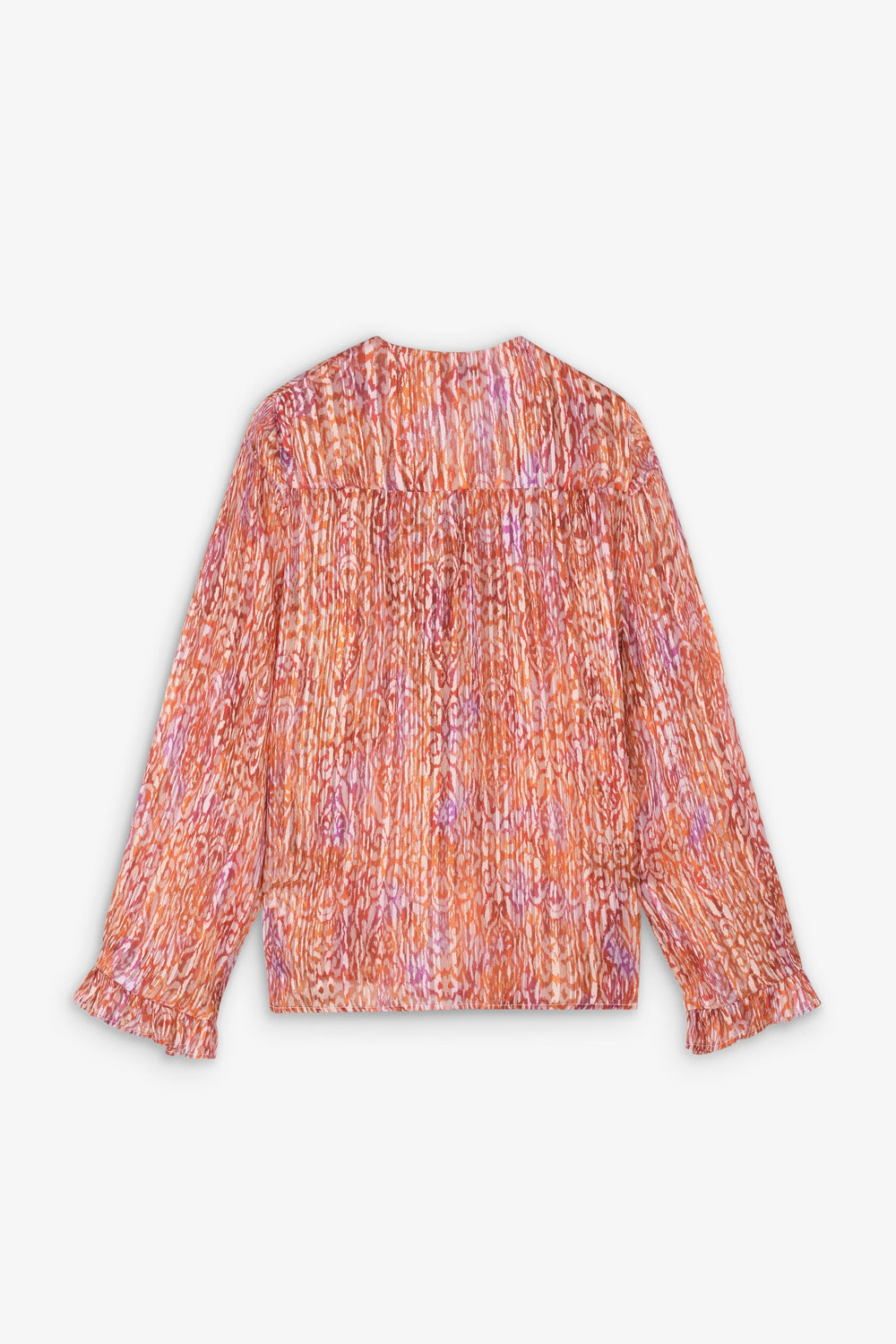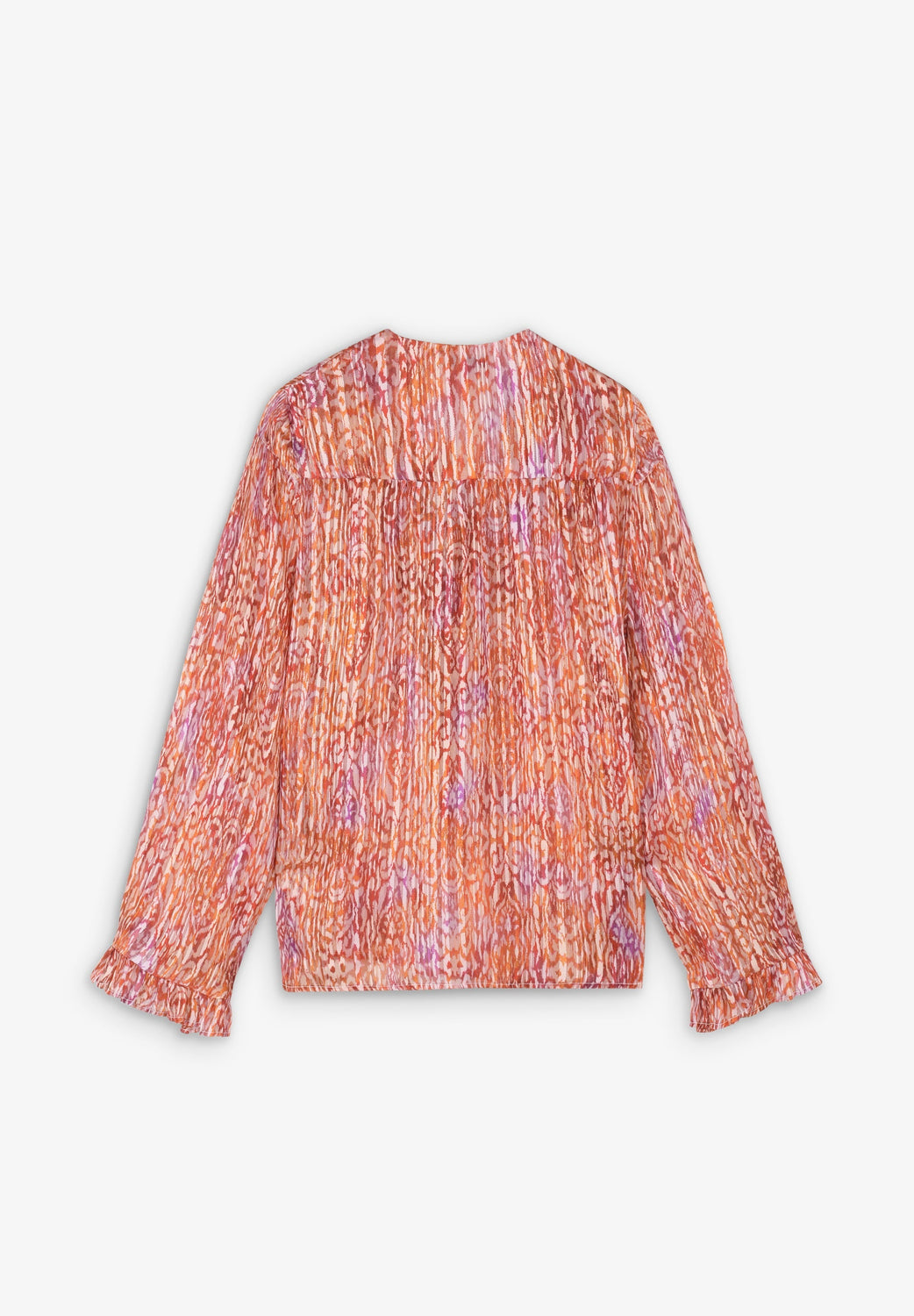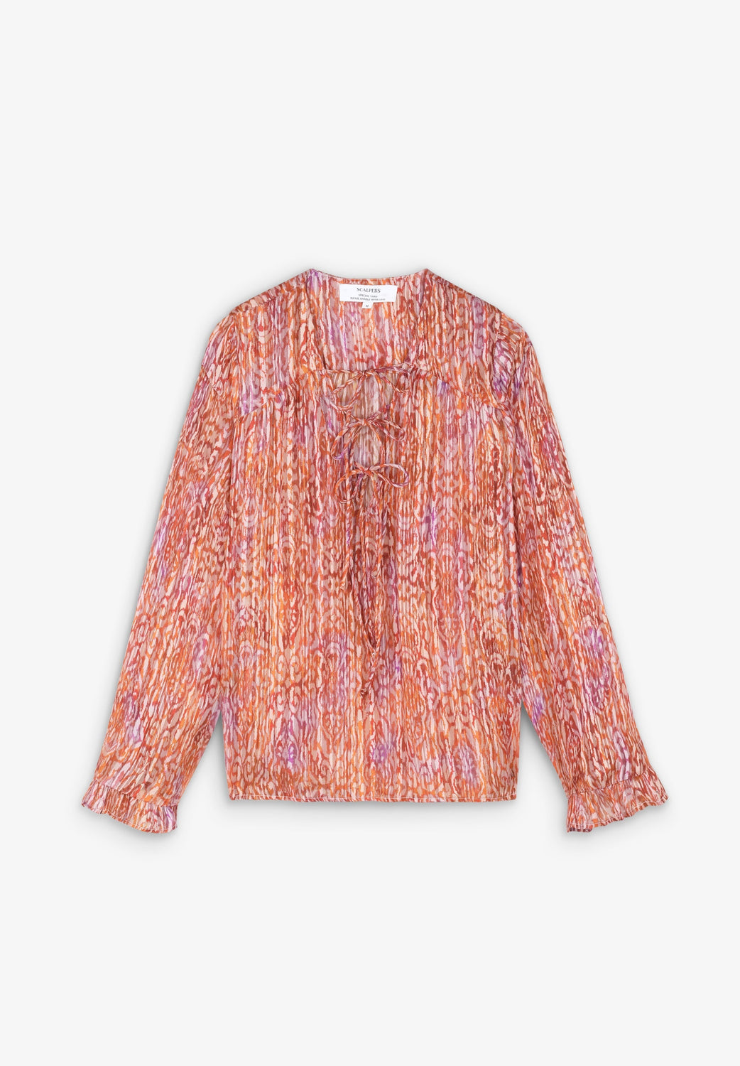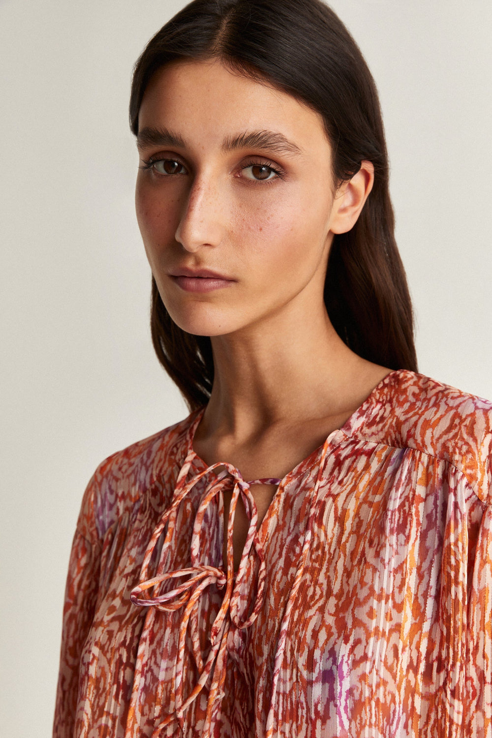 - Confeccionada en tejido fluido con detalle de hilatura metálica