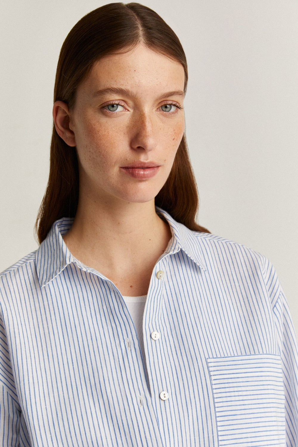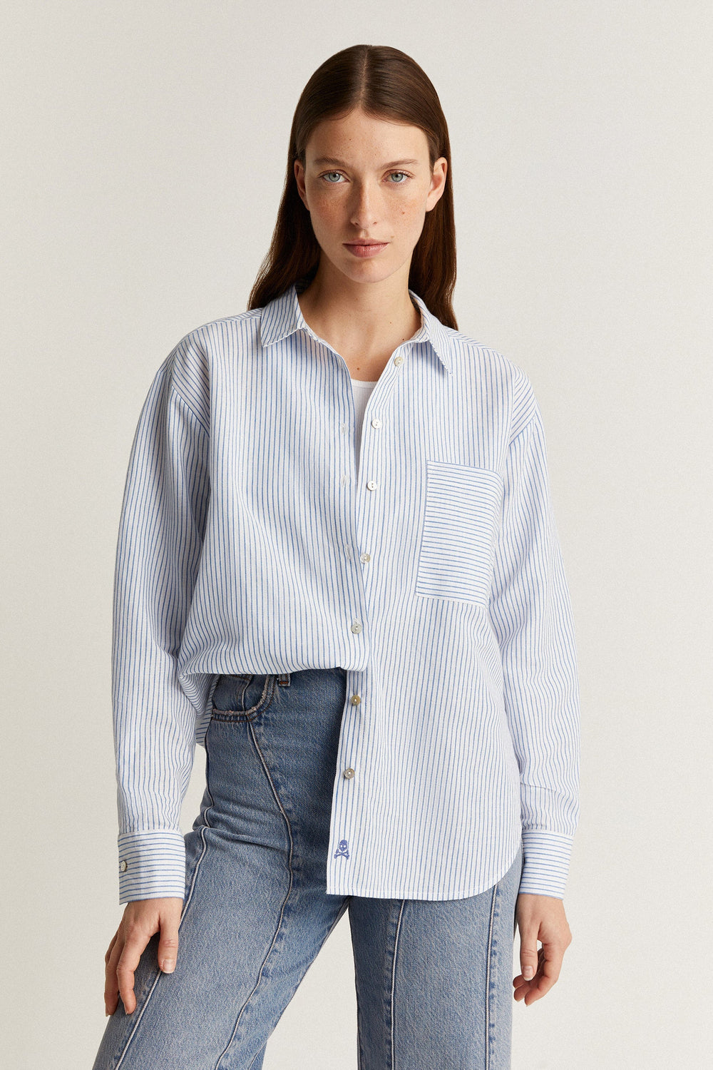 Camisa de rayas con detalles combinados.