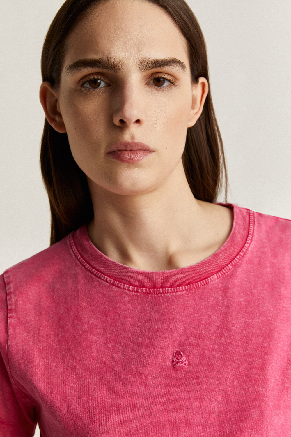 Camiseta con calavera bordada frontal con detalle de hilatura metalizada.