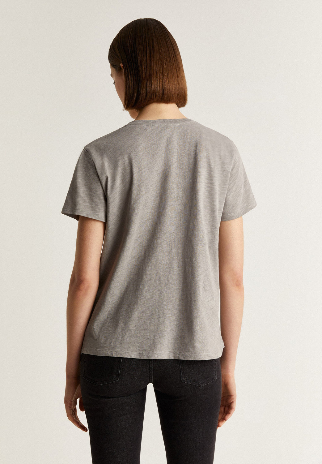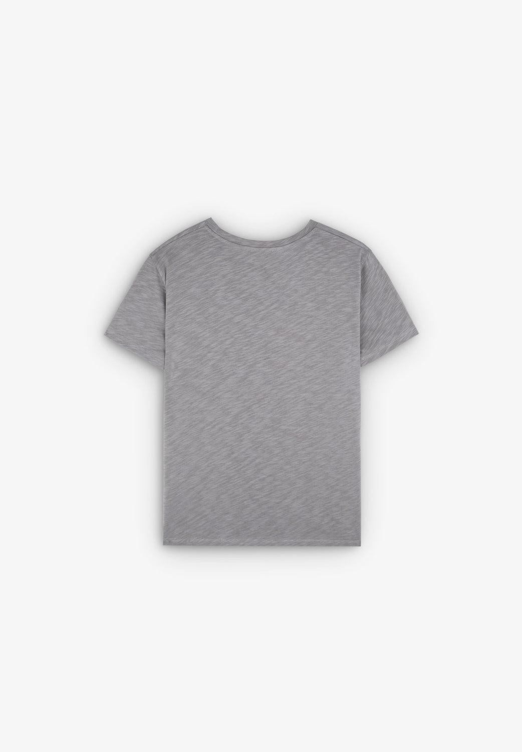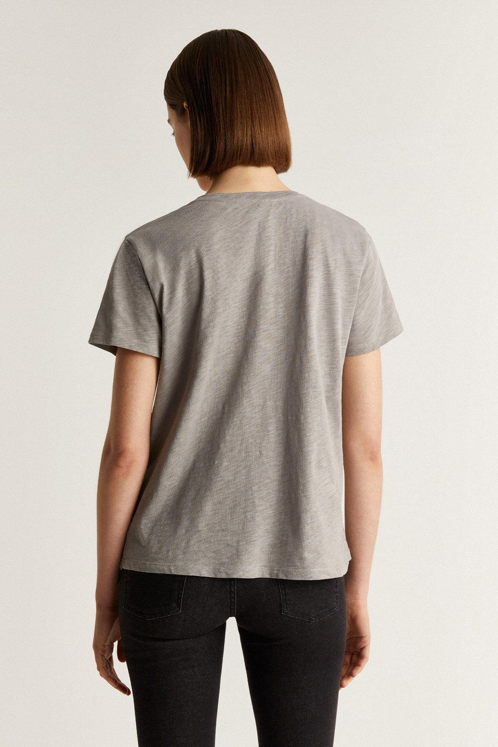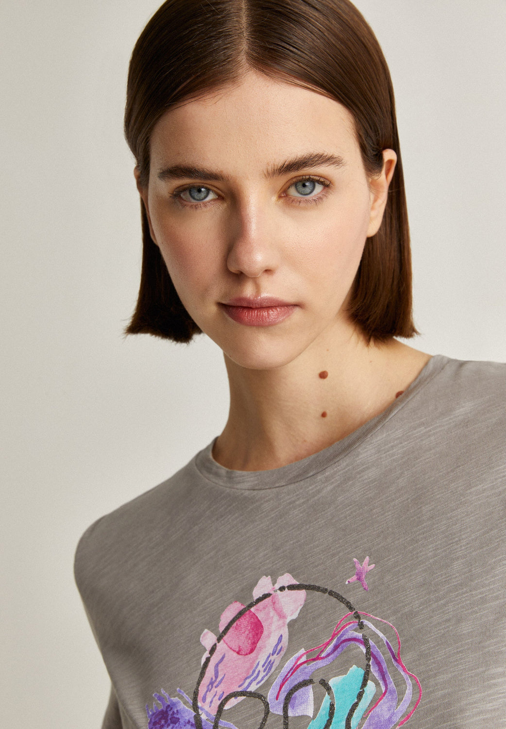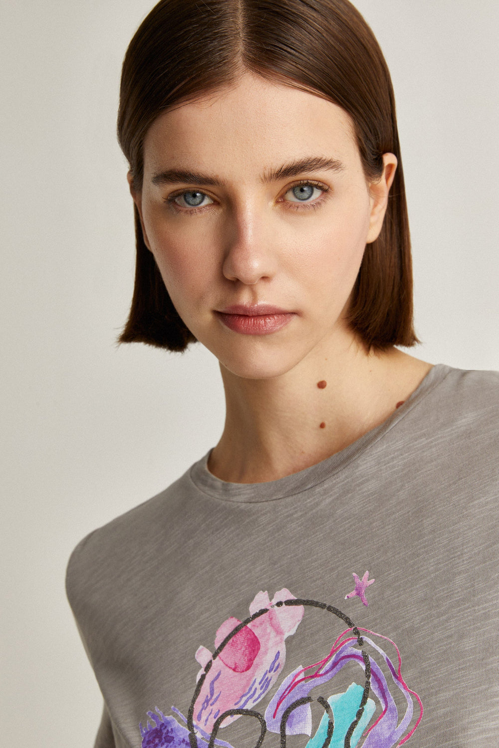 Camiseta con print frontal y detalle contorno calavera en glitter.