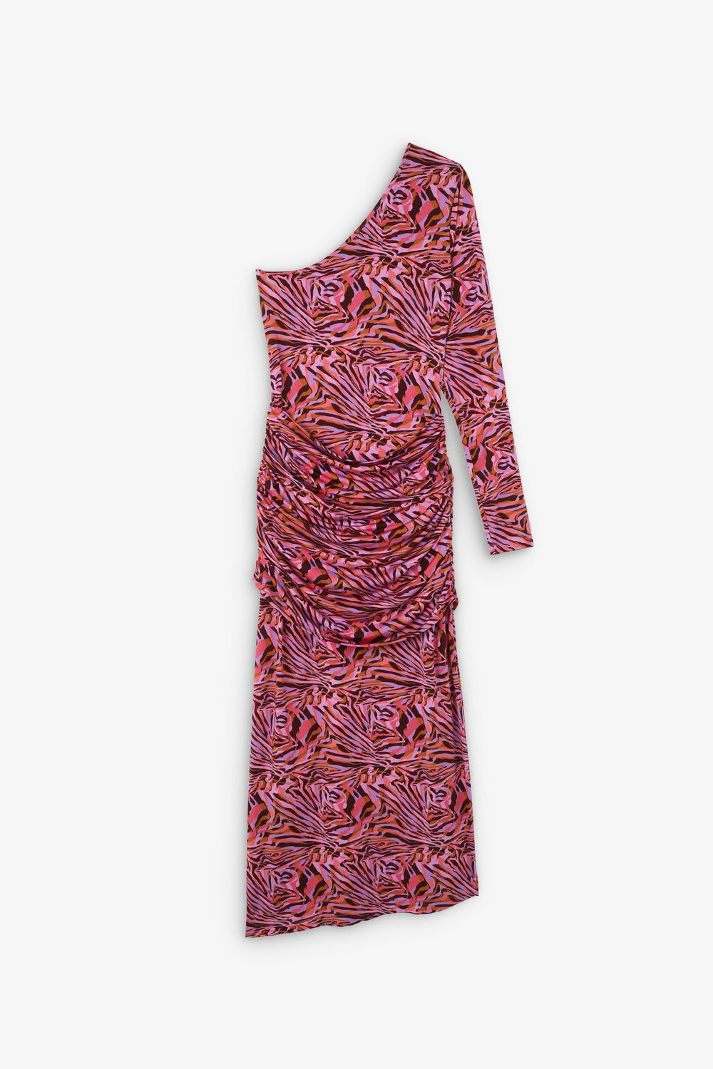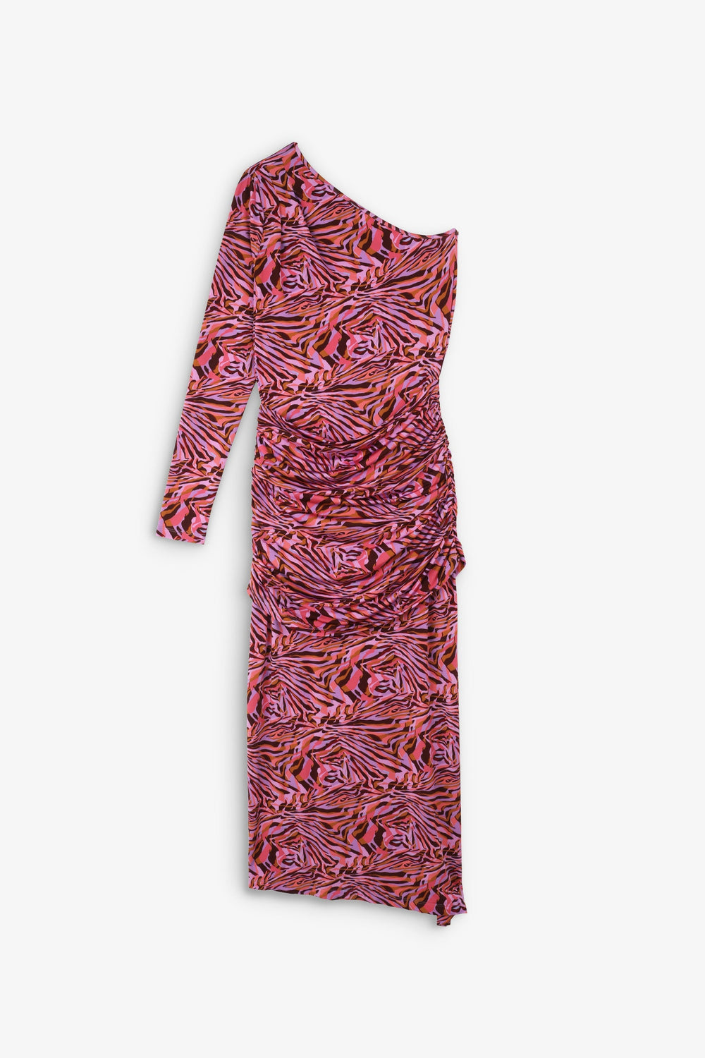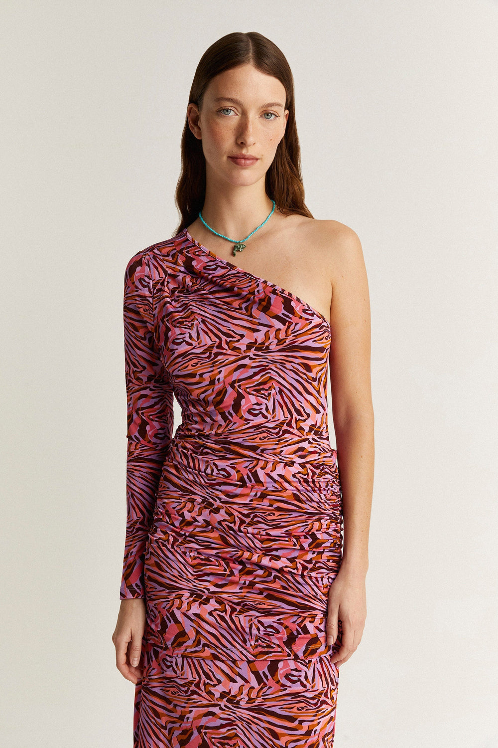 Vestido midi asimétrico con detalle de frunces.