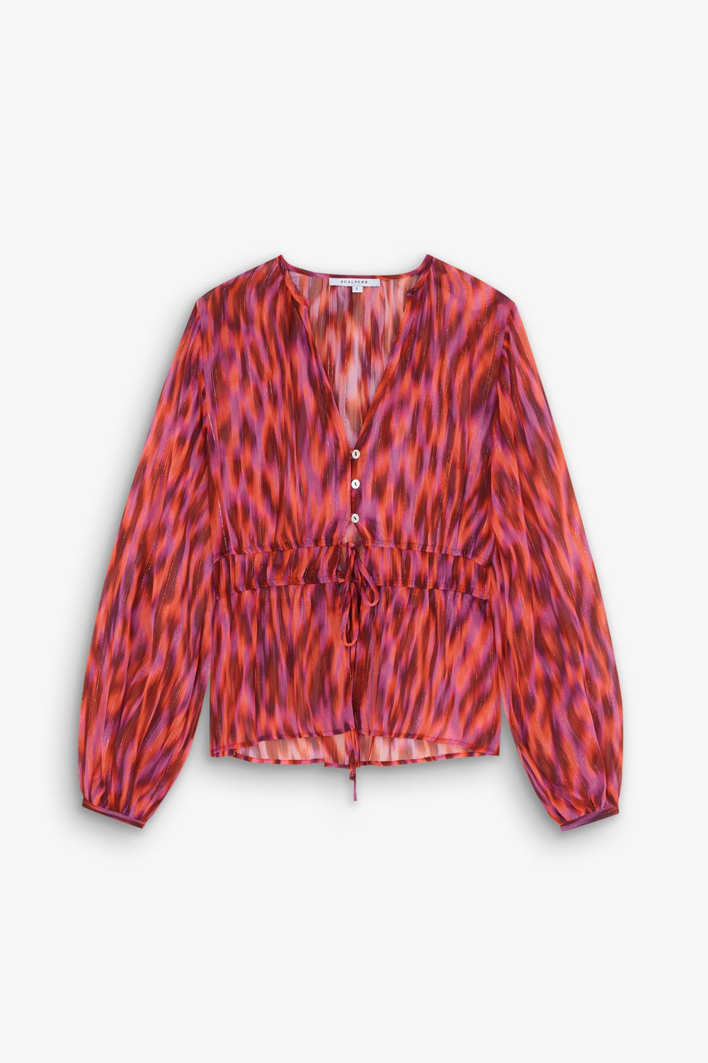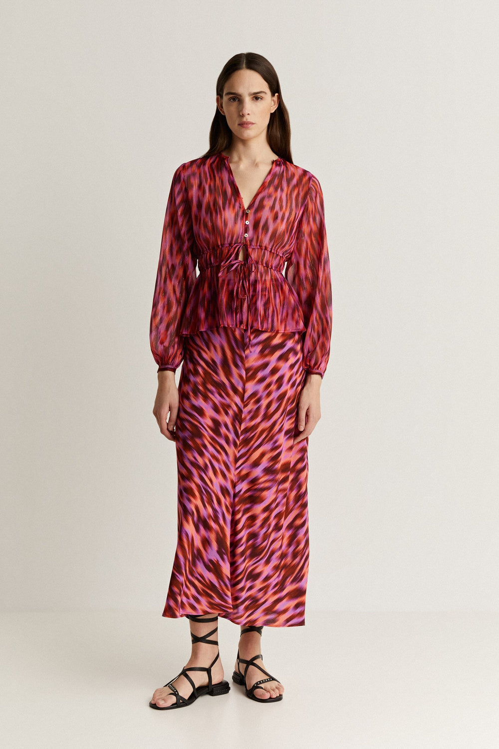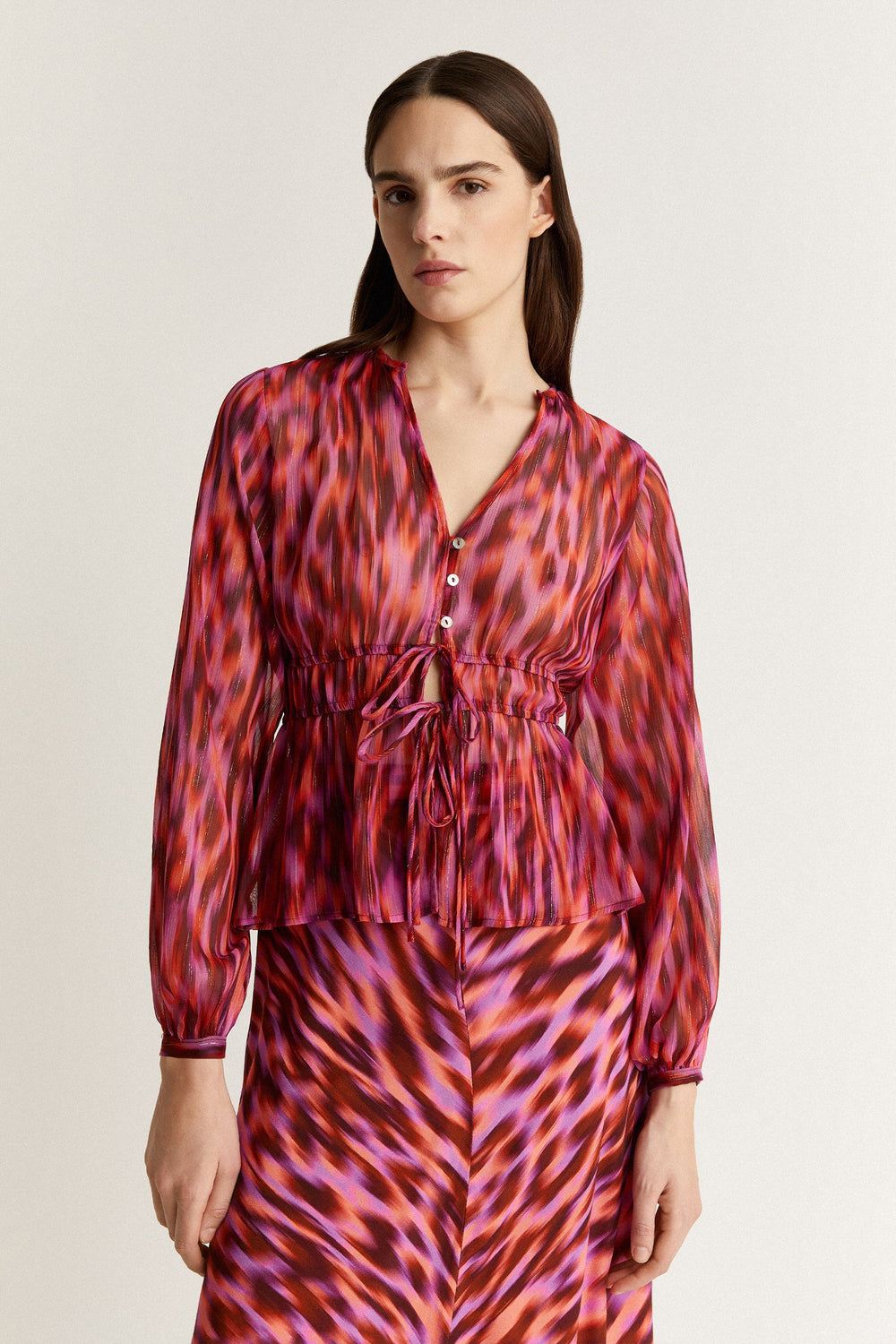 - Confeccionada en tejido fluido con detalle de hilatura metalizada