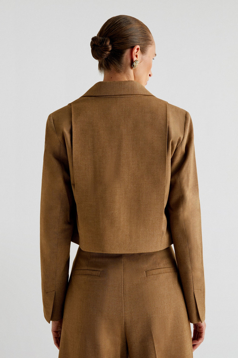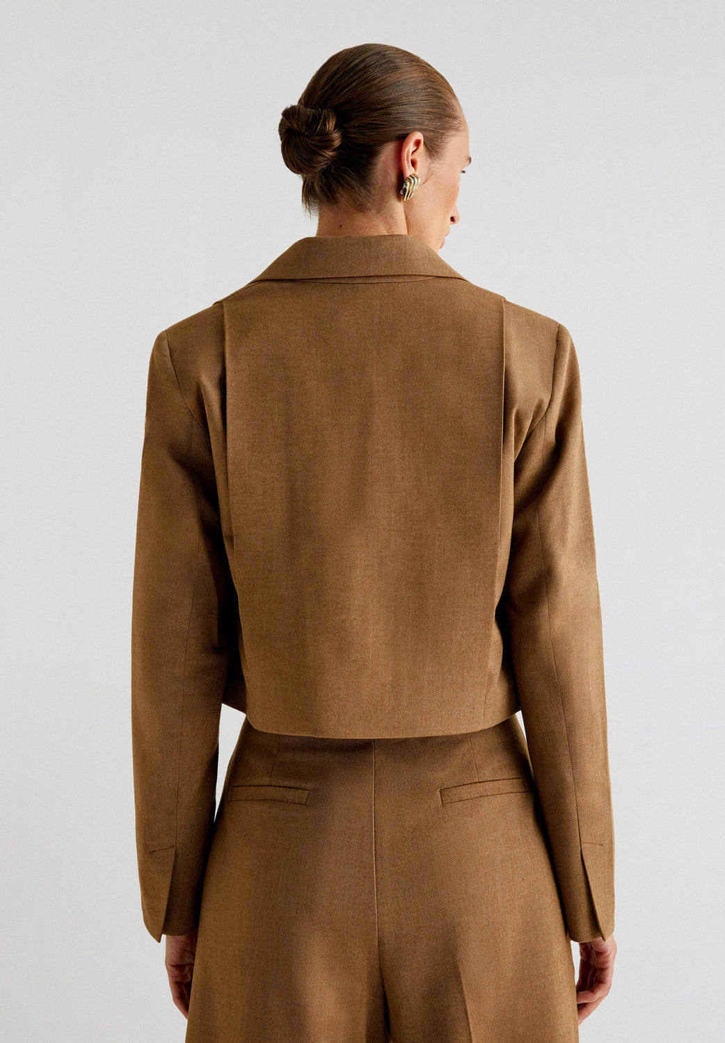 Blazer de corte cropped. Slim fit, cuello con solapas y cierre con botón. Manga larga y detalle de pliegues en delantero.