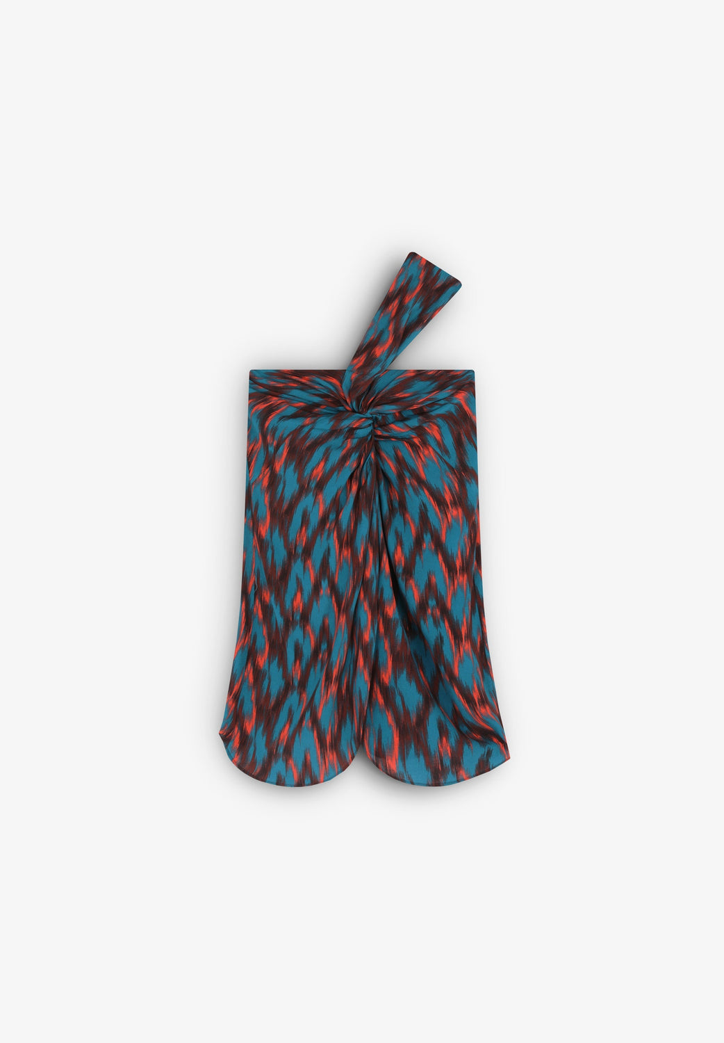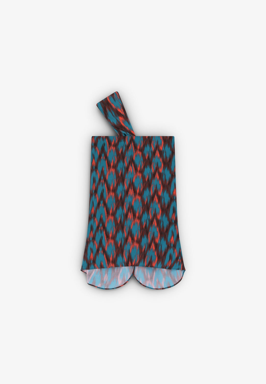 Top asimétrico con abertura frontal. Escote fruncido. Confeccionado en tejido fluido. Cierre con cremallera lateral.