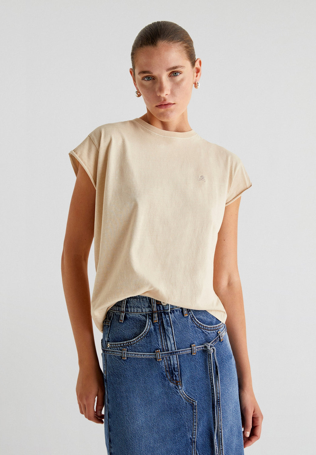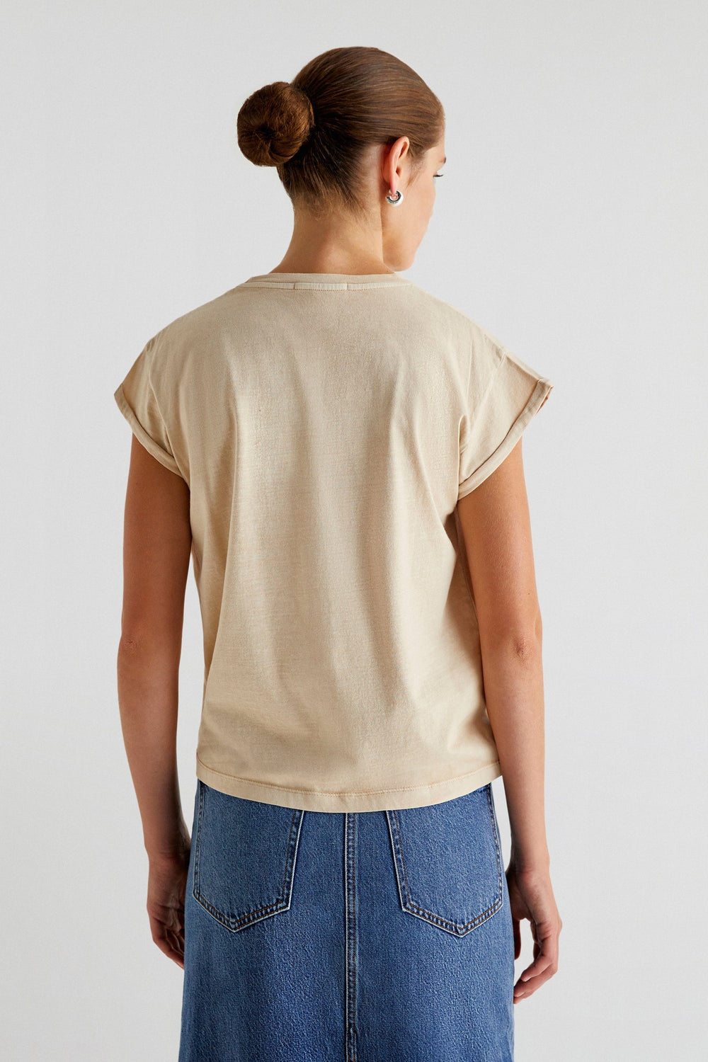Camiseta confeccionada en 100% algodón BCI. Regular fit, cuello redondo y manga corta. Detalle de calavera bordada a tono.