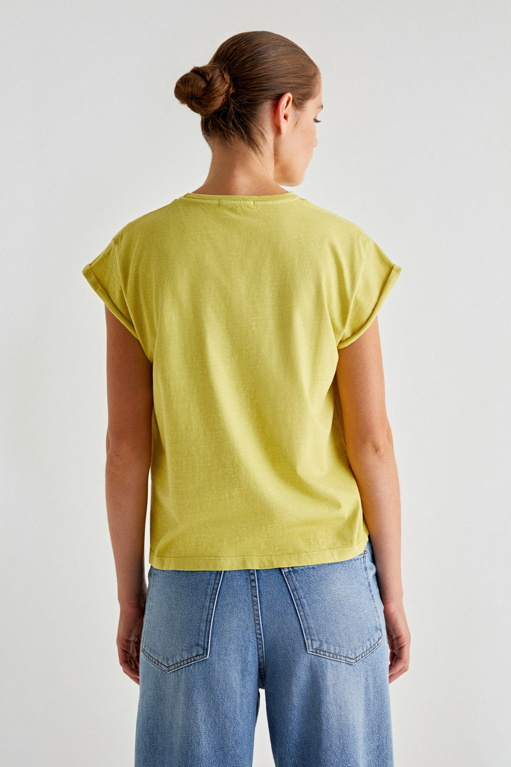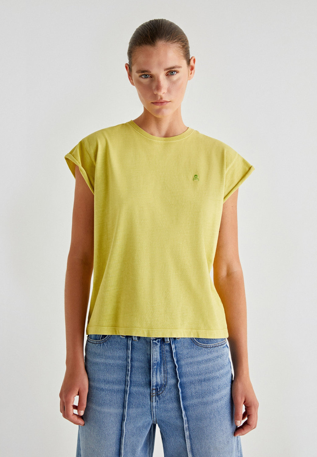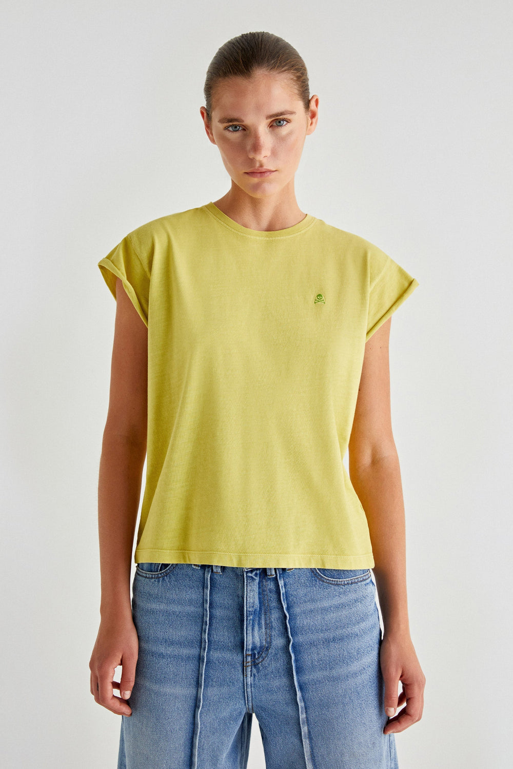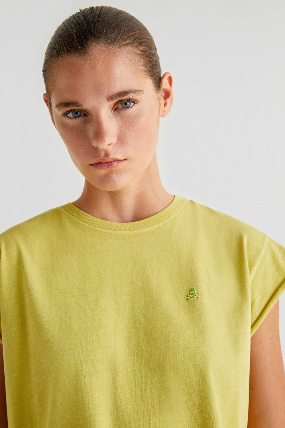 Camiseta confeccionada en 100% algodón BCI. Regular fit, cuello redondo y manga corta. Detalle de calavera bordada a tono.