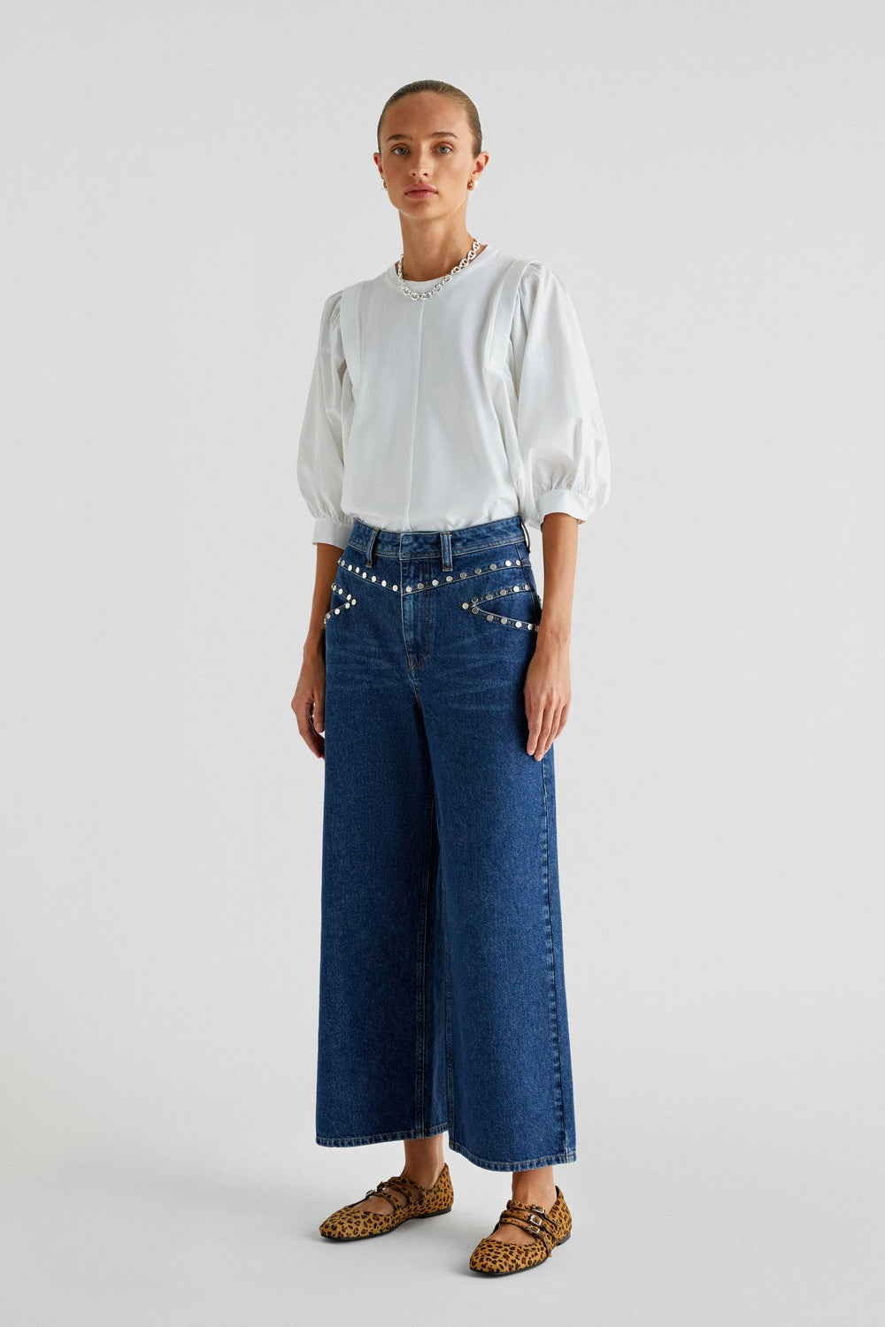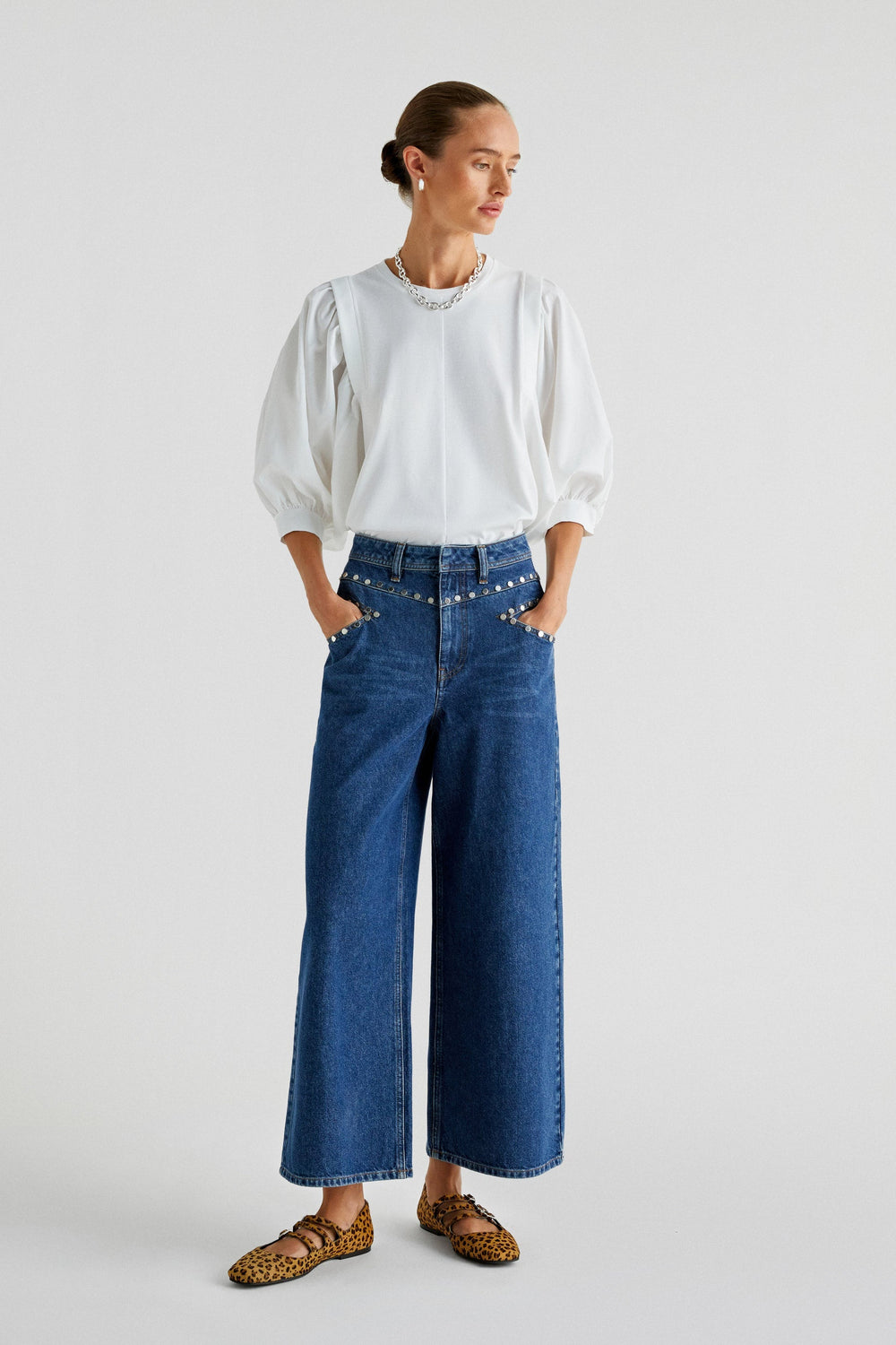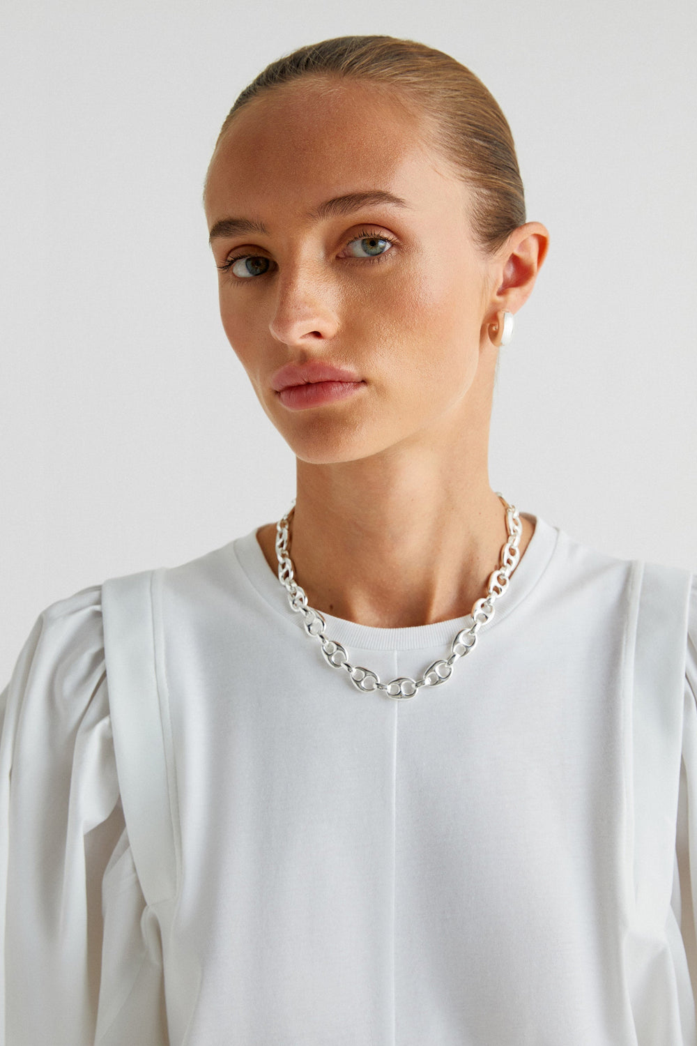 Camiseta confeccionada en 100% algodón. Regular fit, cuello redondo y mangas de popelín abullonadas.