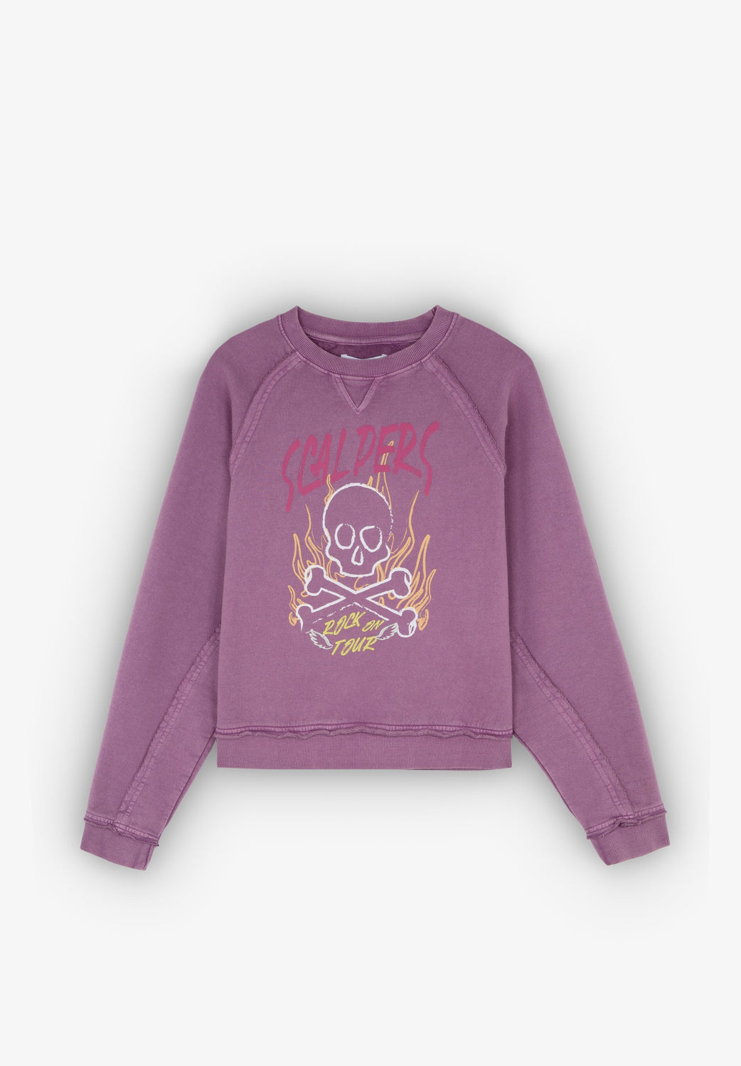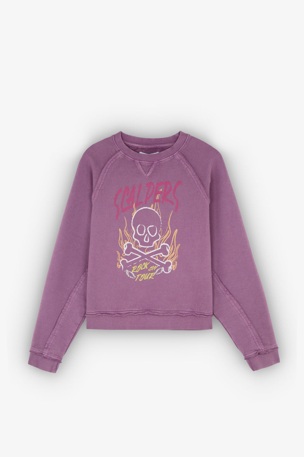 Sudadera lavada confeccionada en 100% algodón BCI. Regular fit, cuello redondo y manga larga. Detalle de print frontal de calavera.