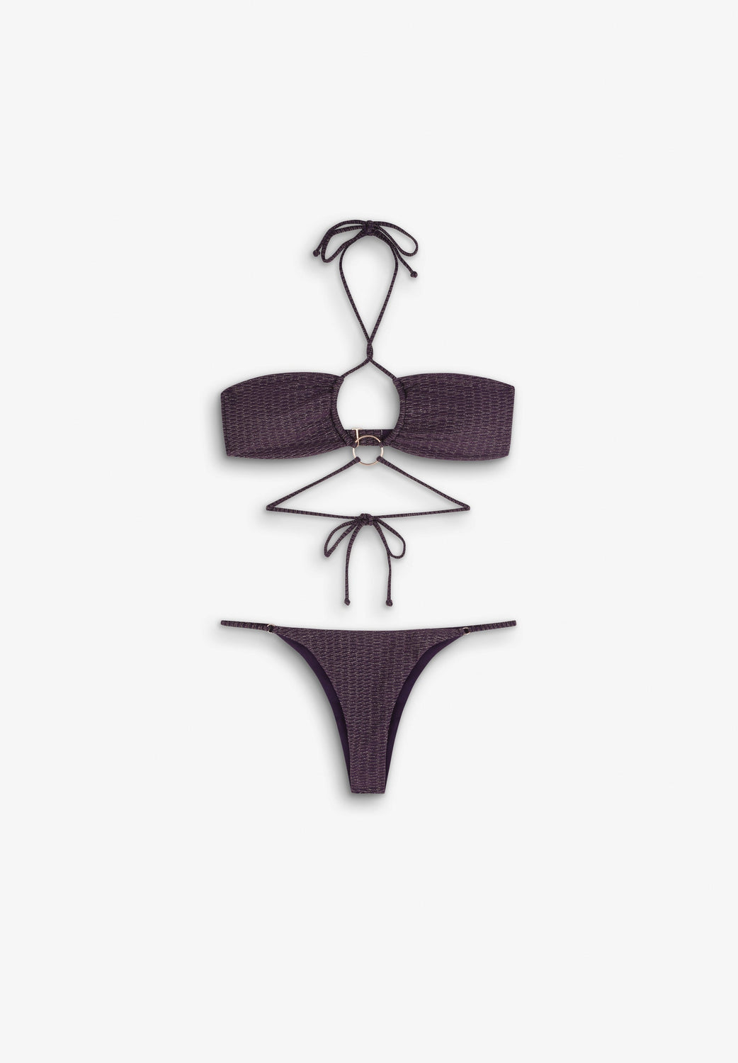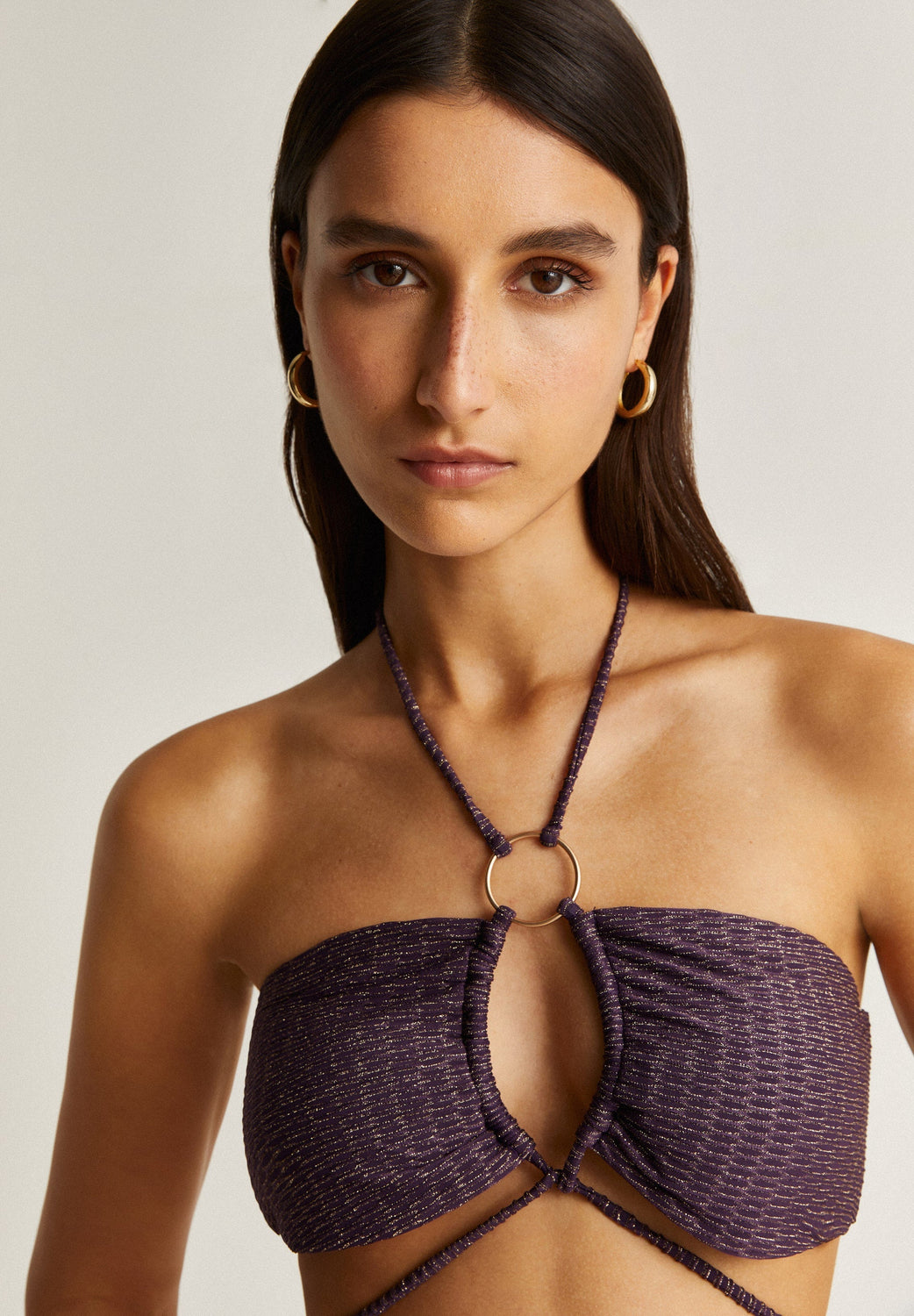 - Top con tiras finas con escote halter con cierre trasero con broche.
