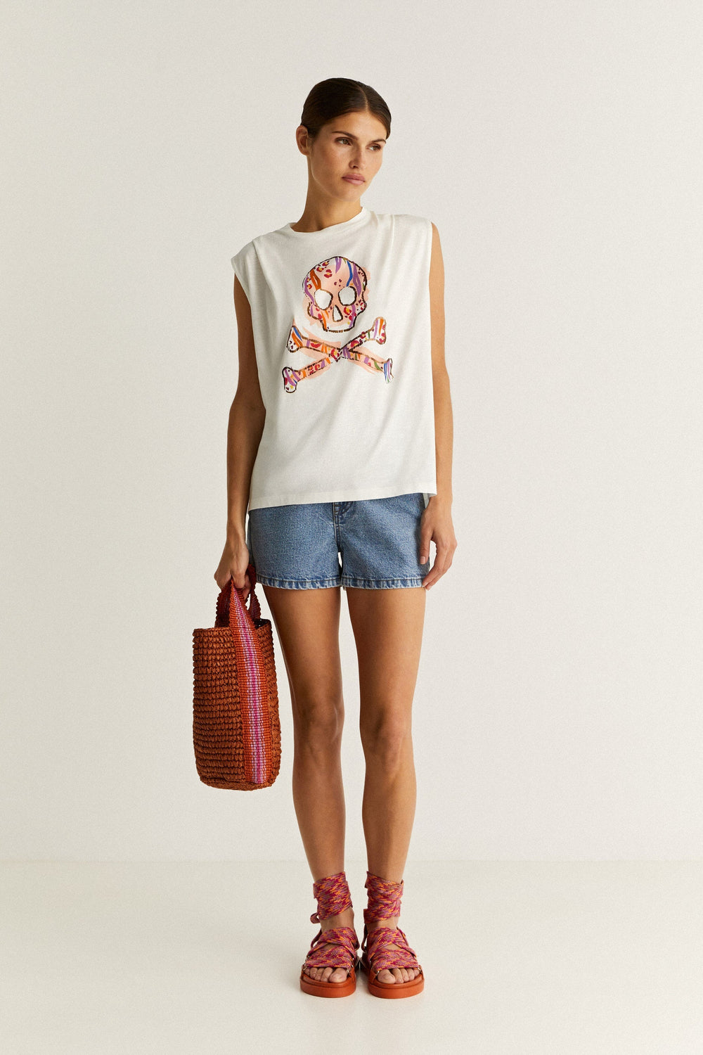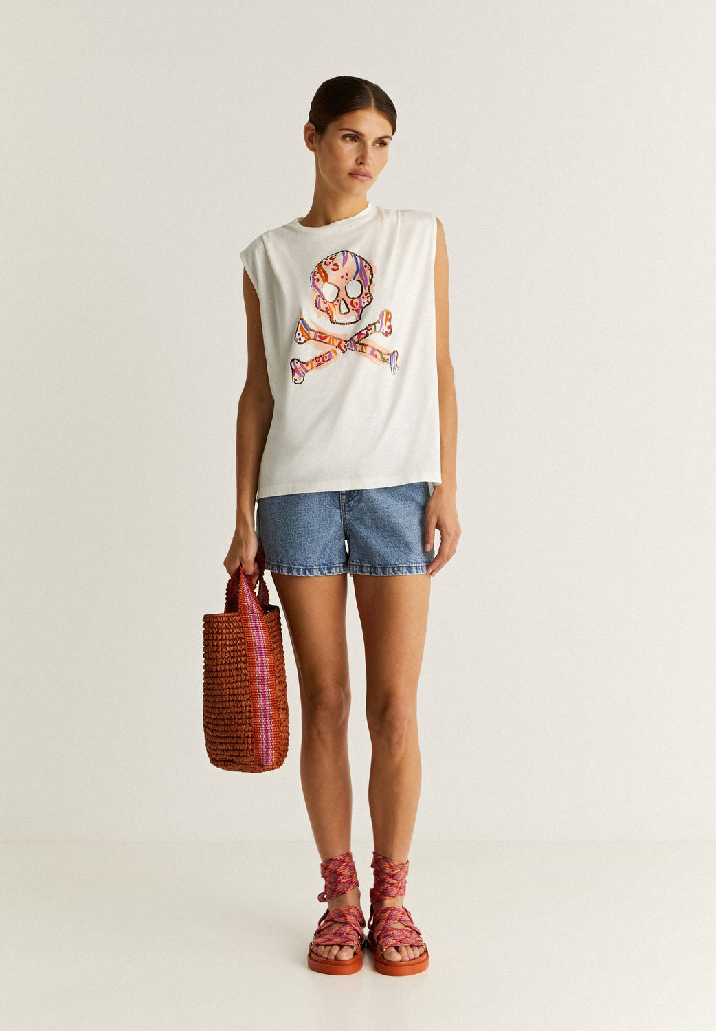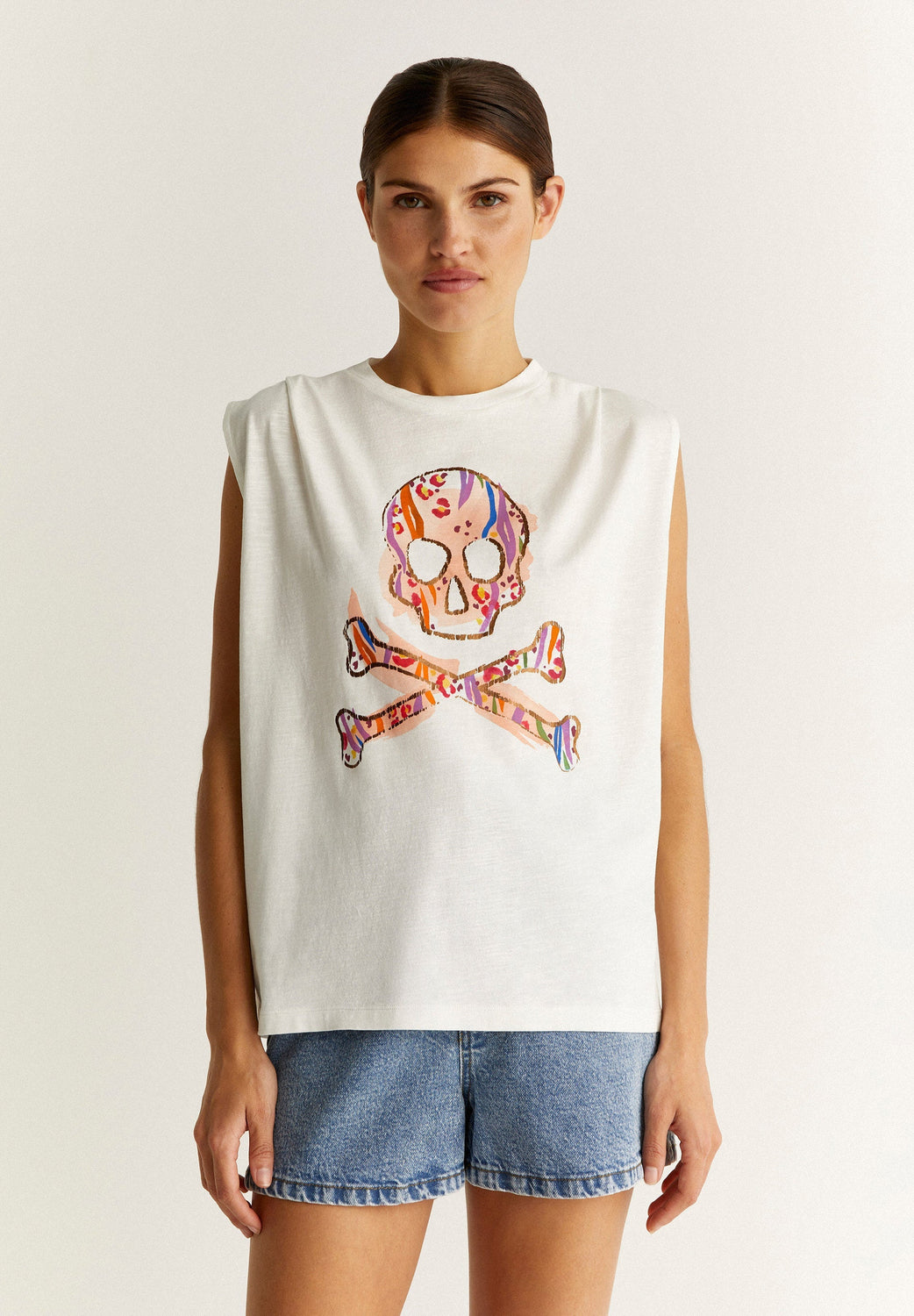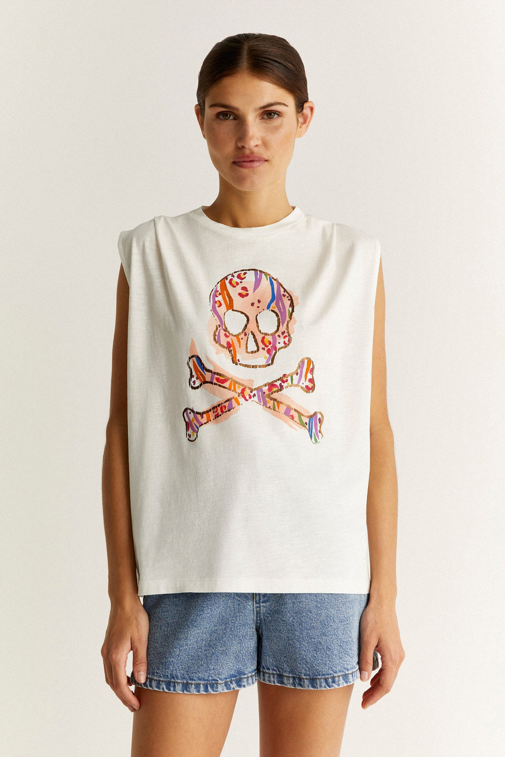 Camiseta con print de calavera frontal.