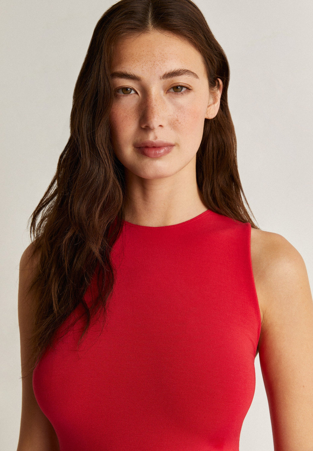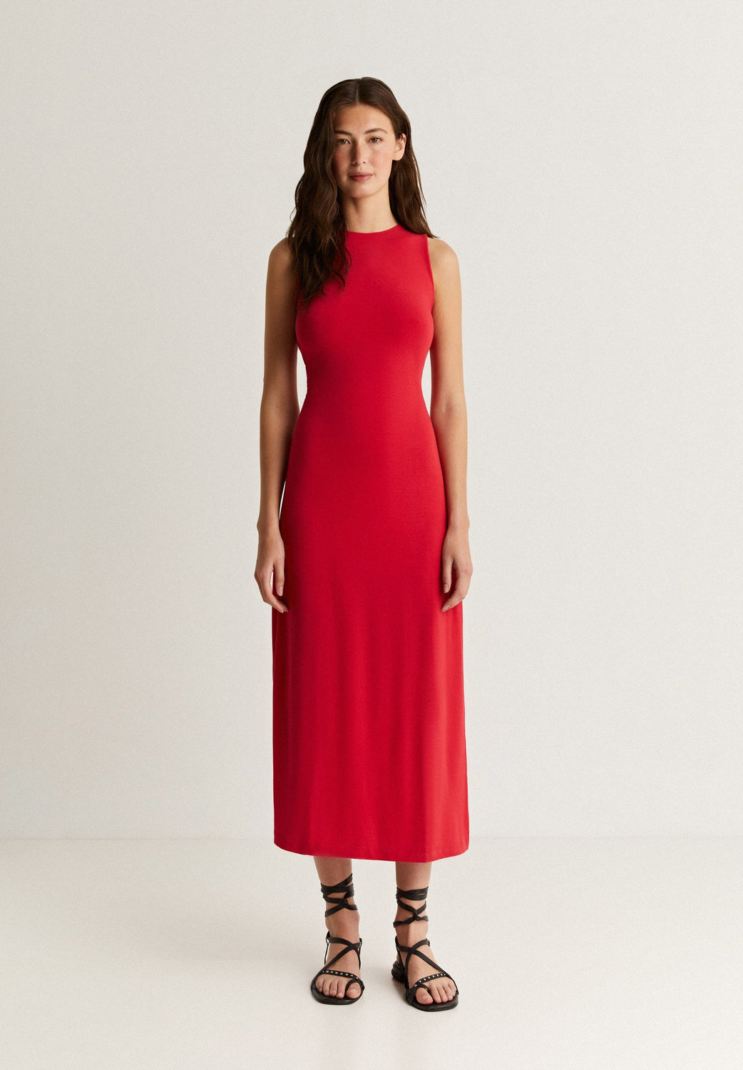 Vestido midi con detalle de nudo en espalda.
