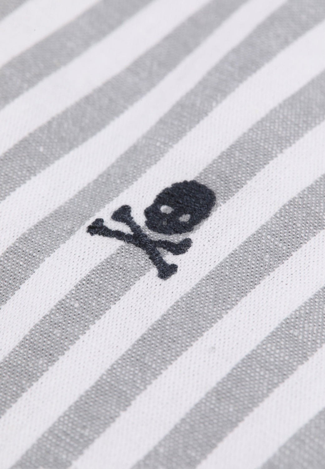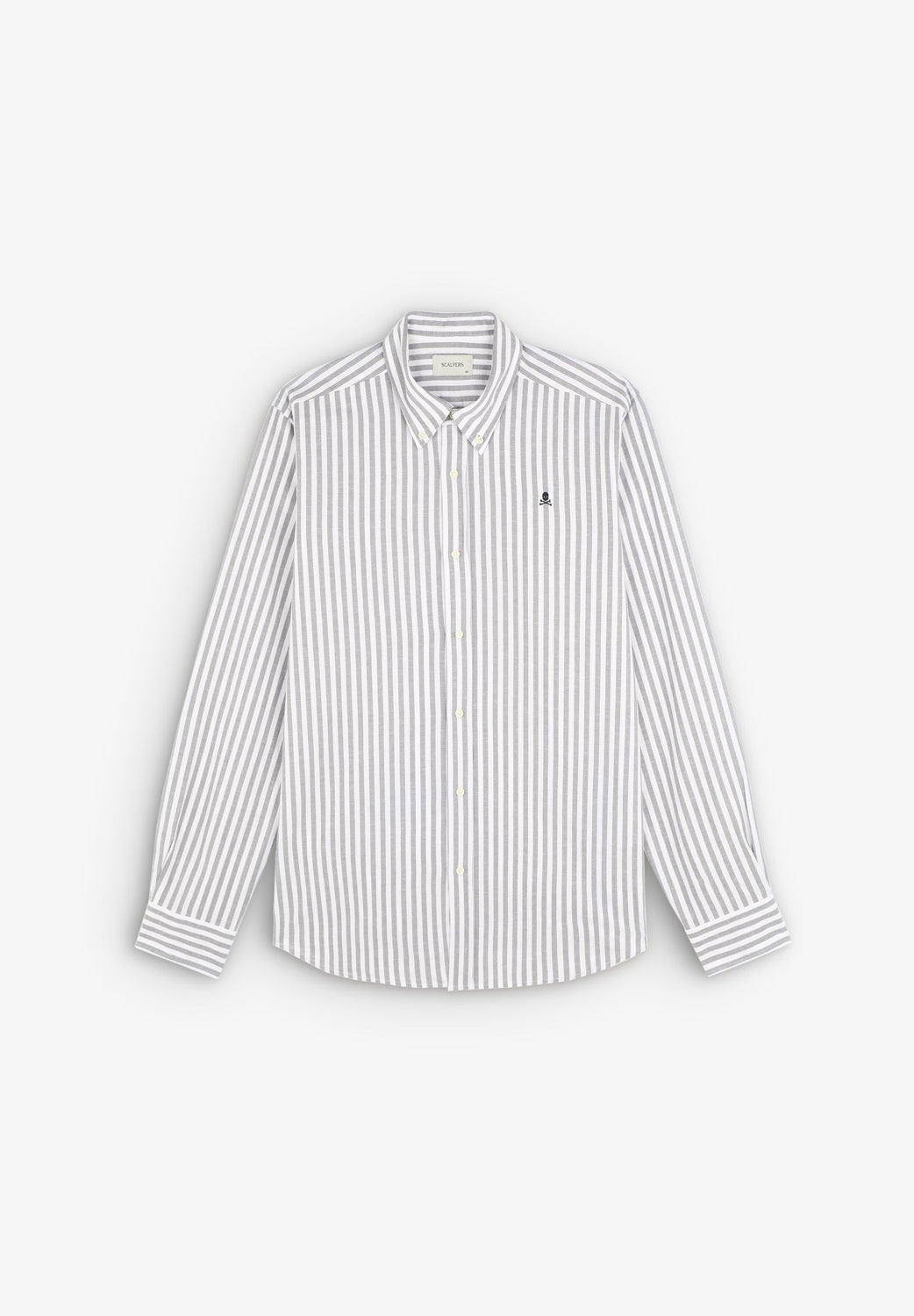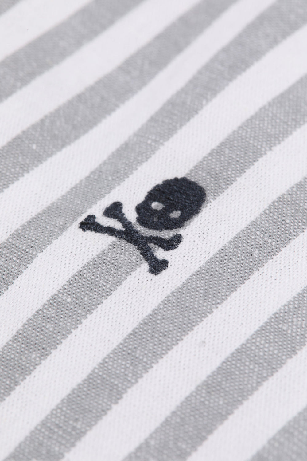 Camisa de rayas con calavera bordada a contraste en pecho.