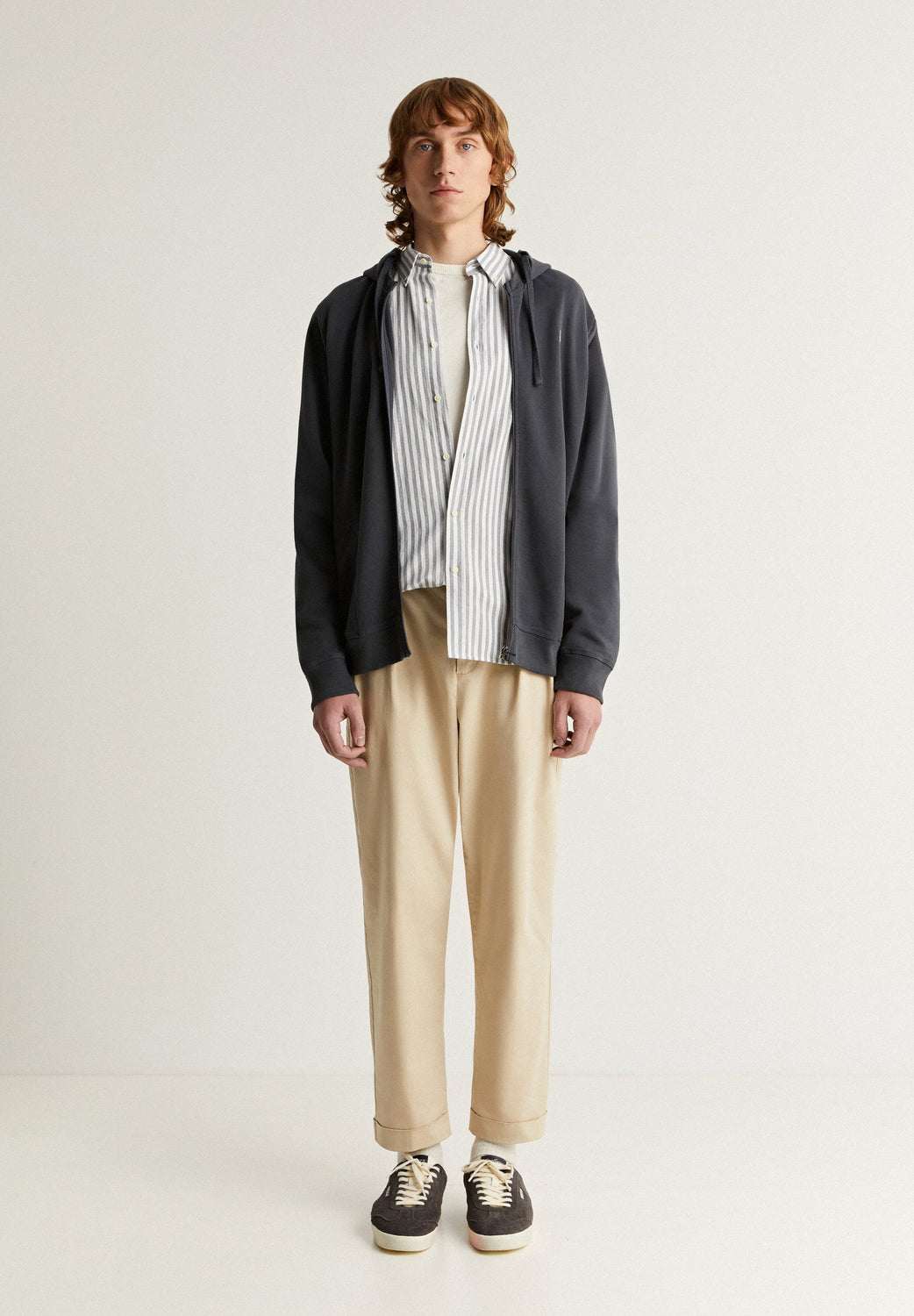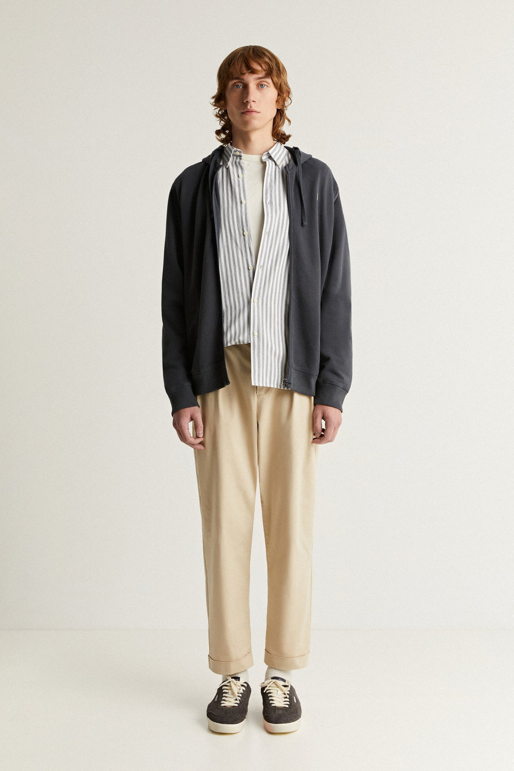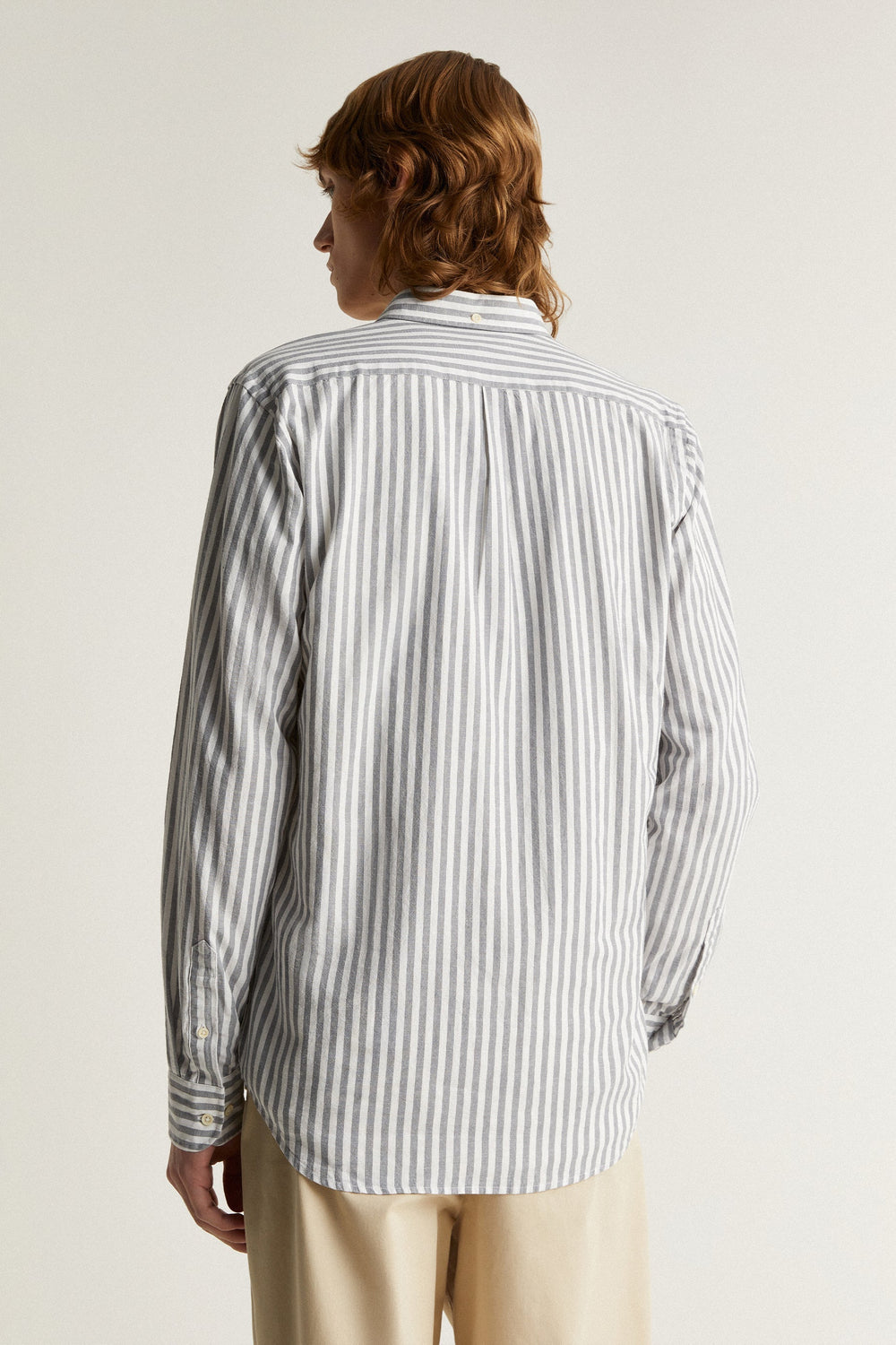 Camisa de rayas con calavera bordada a contraste en pecho.