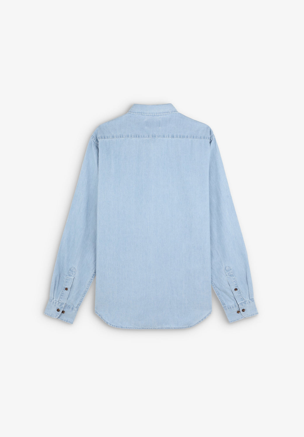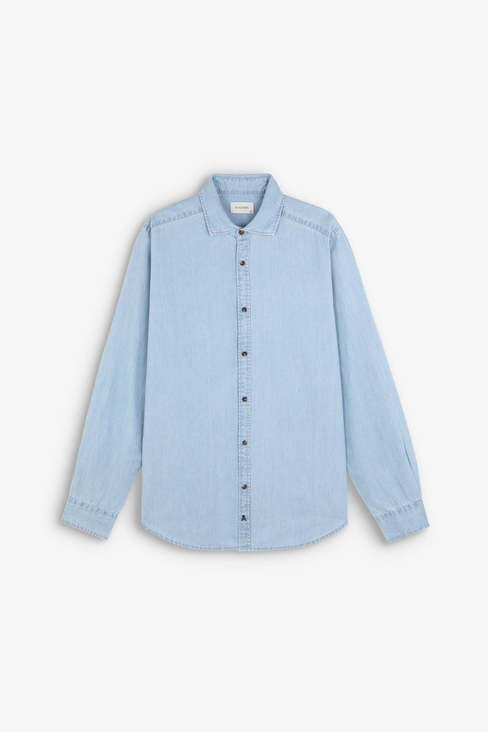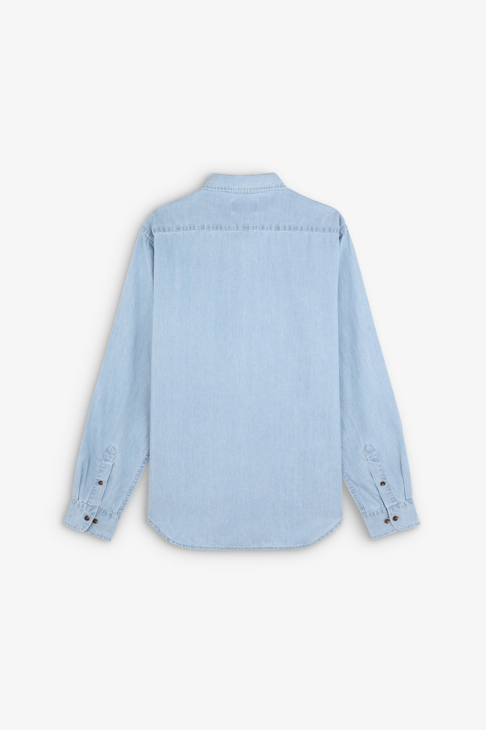 Camisa vaquera con detalle de calavera bordada en bajo tapeta.