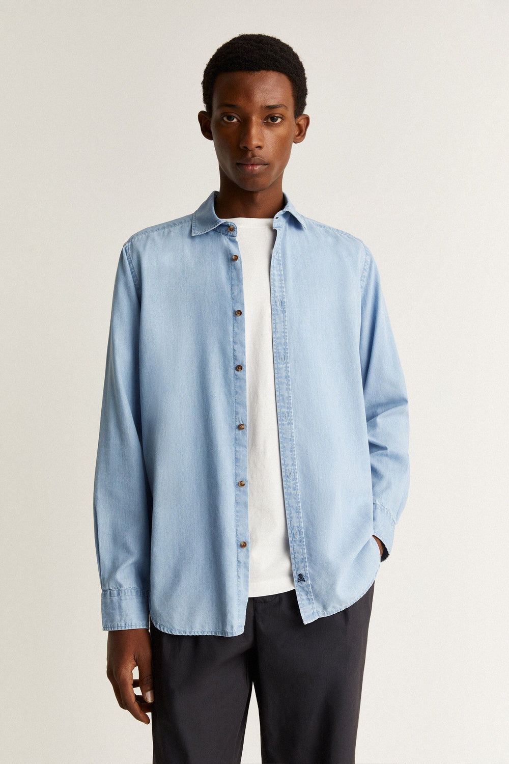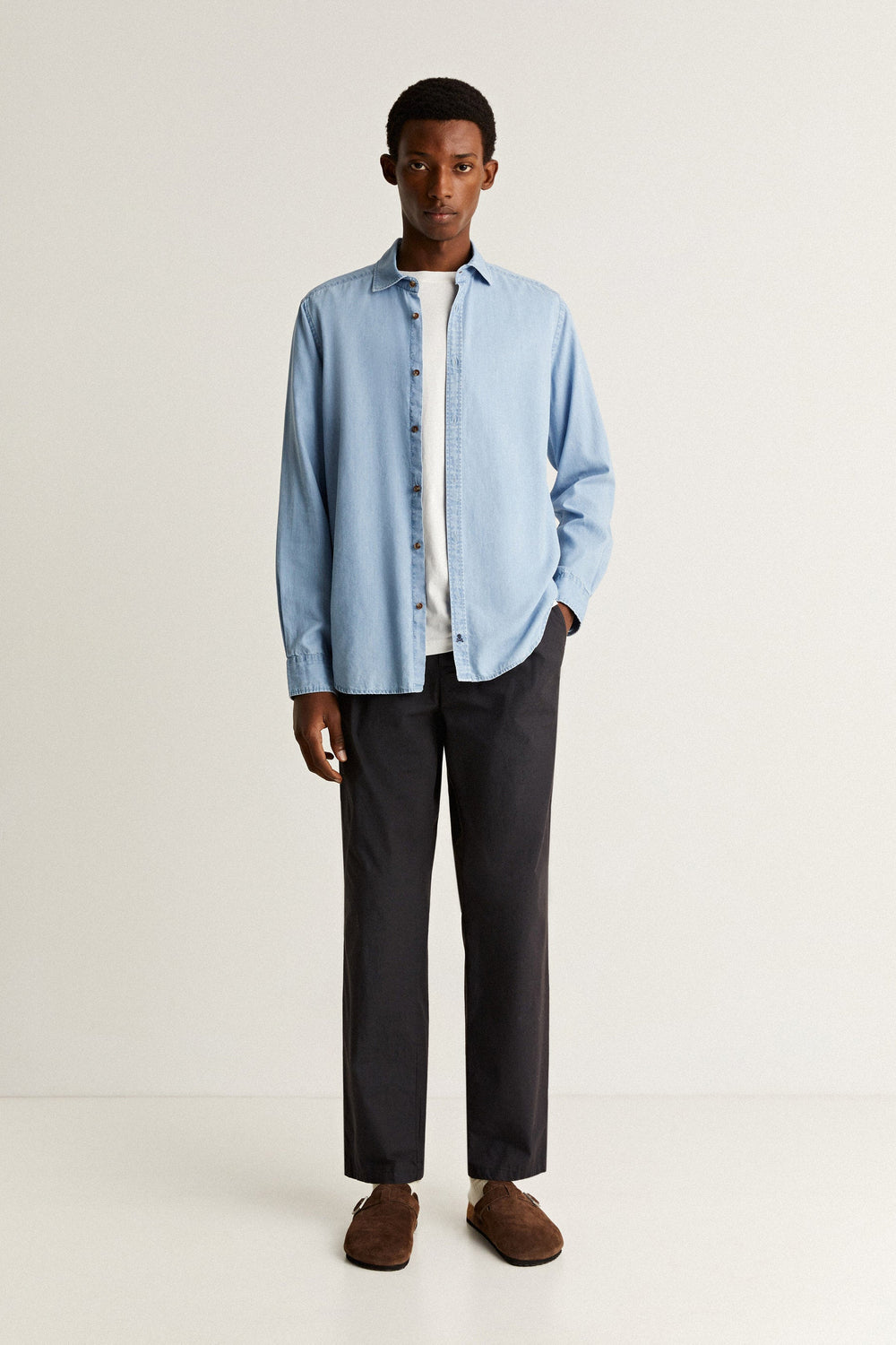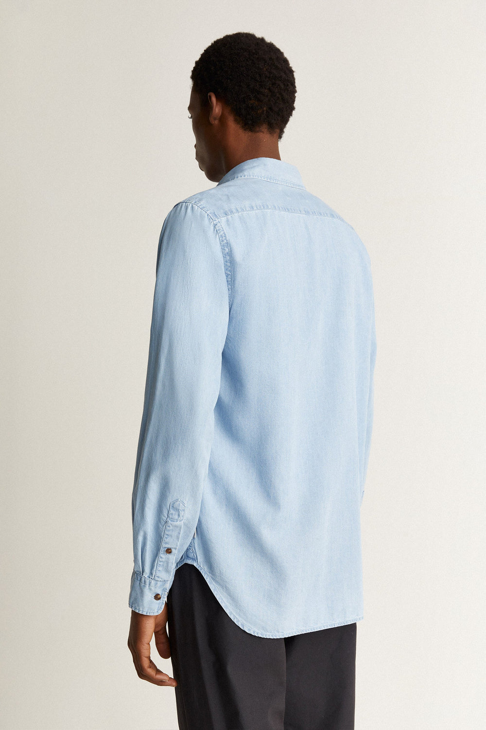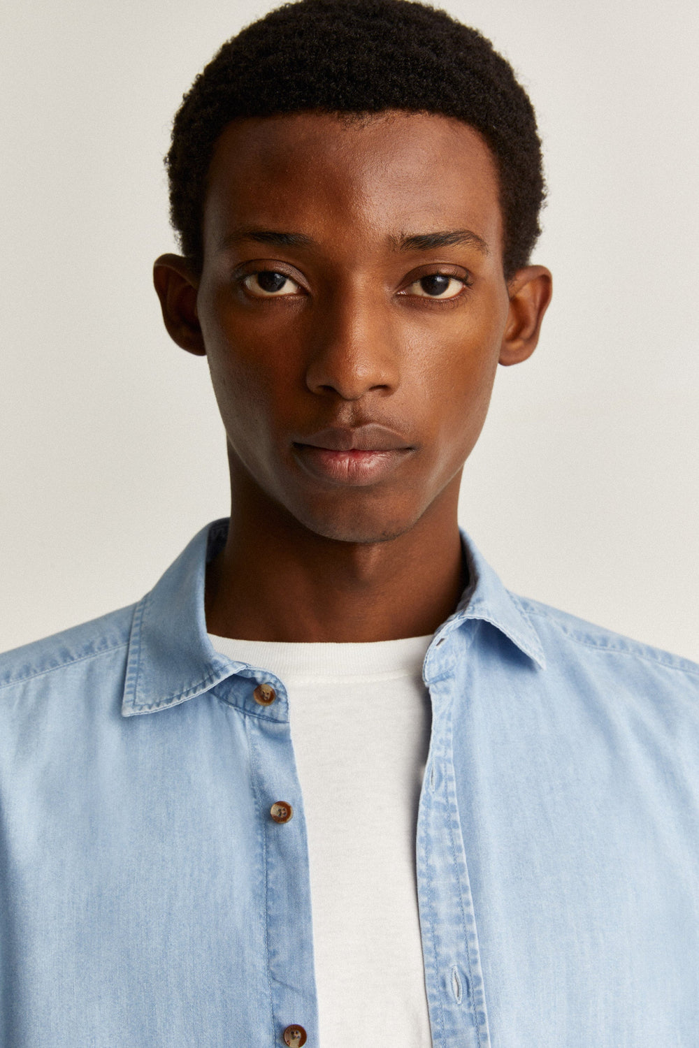 Camisa vaquera con detalle de calavera bordada en bajo tapeta.