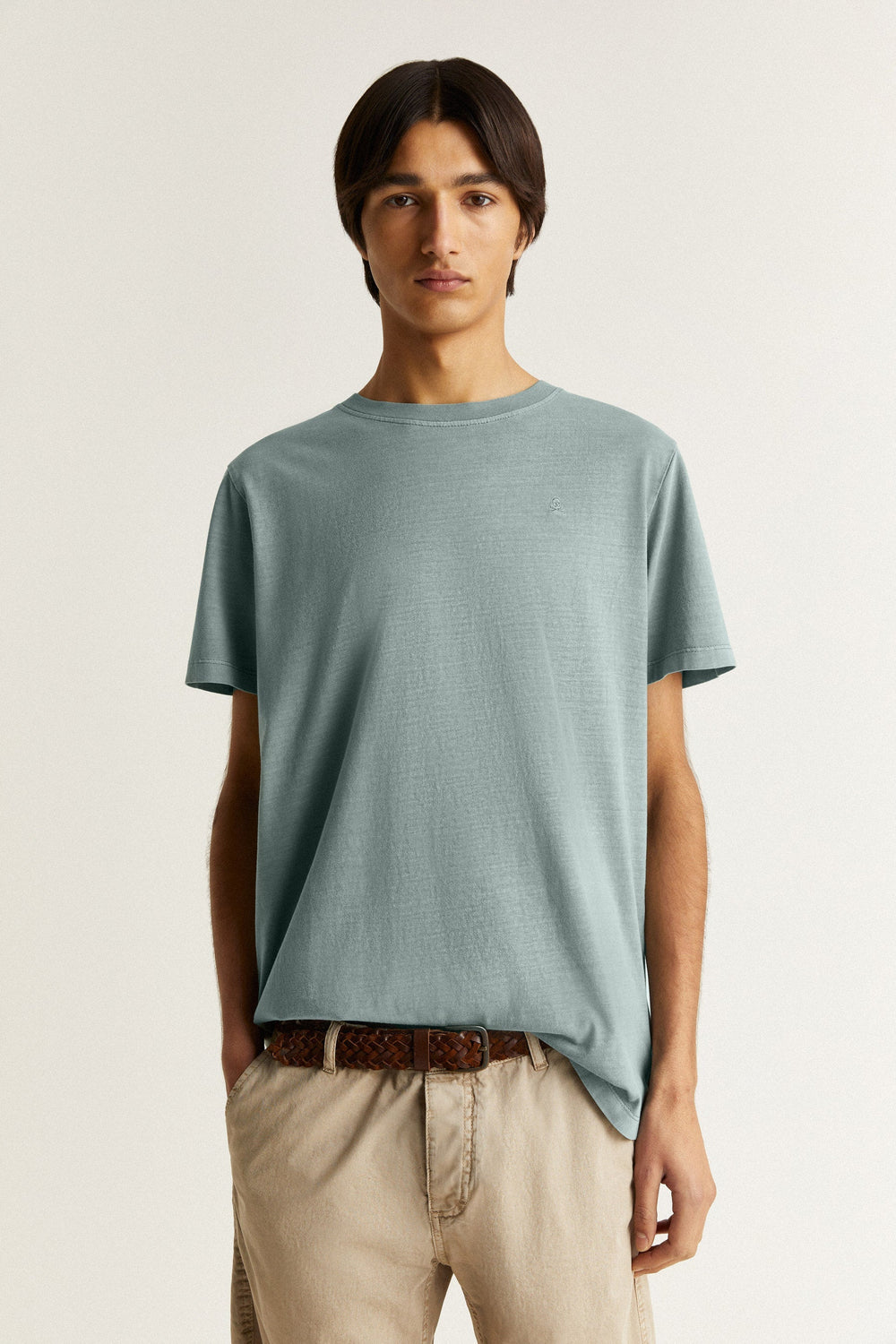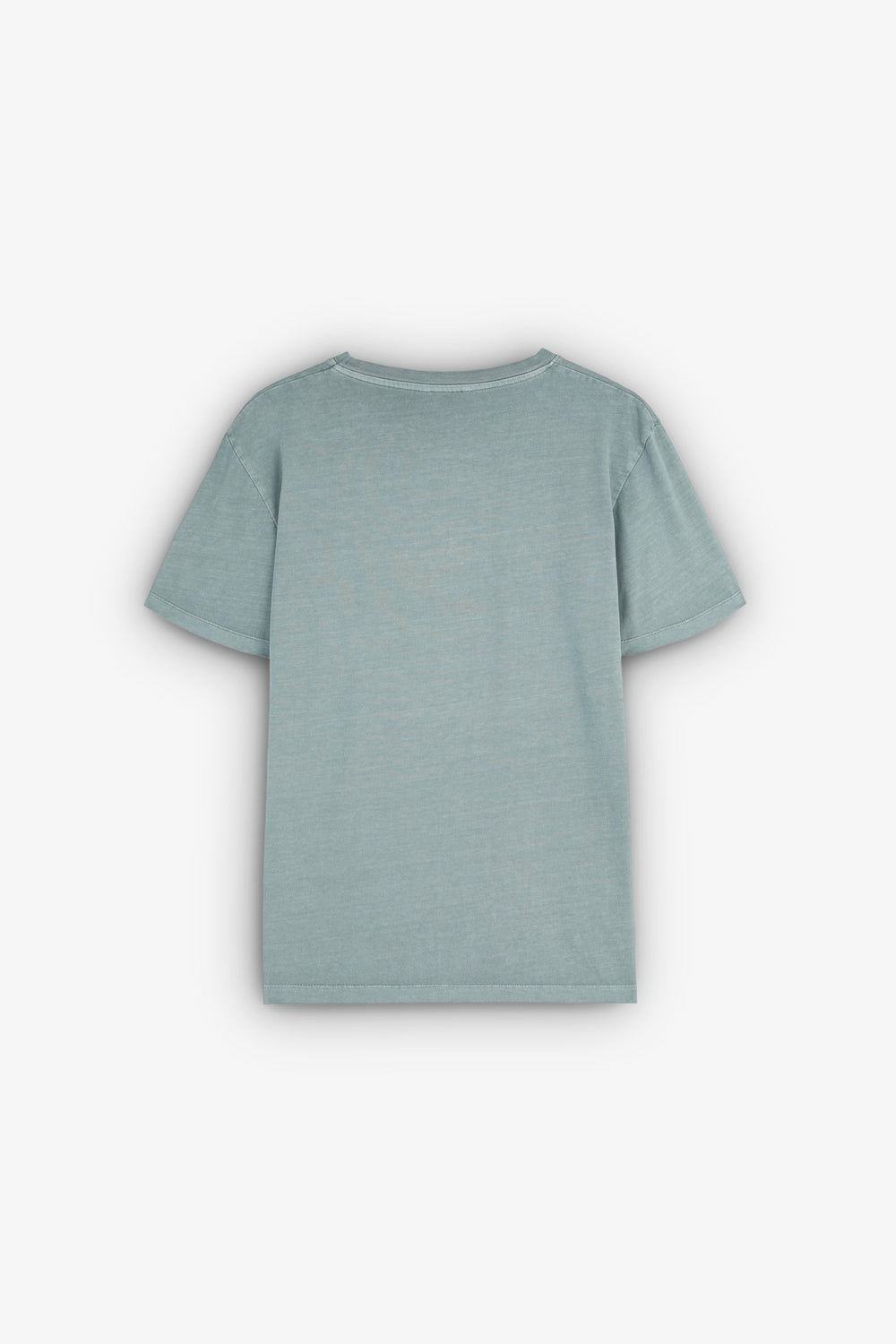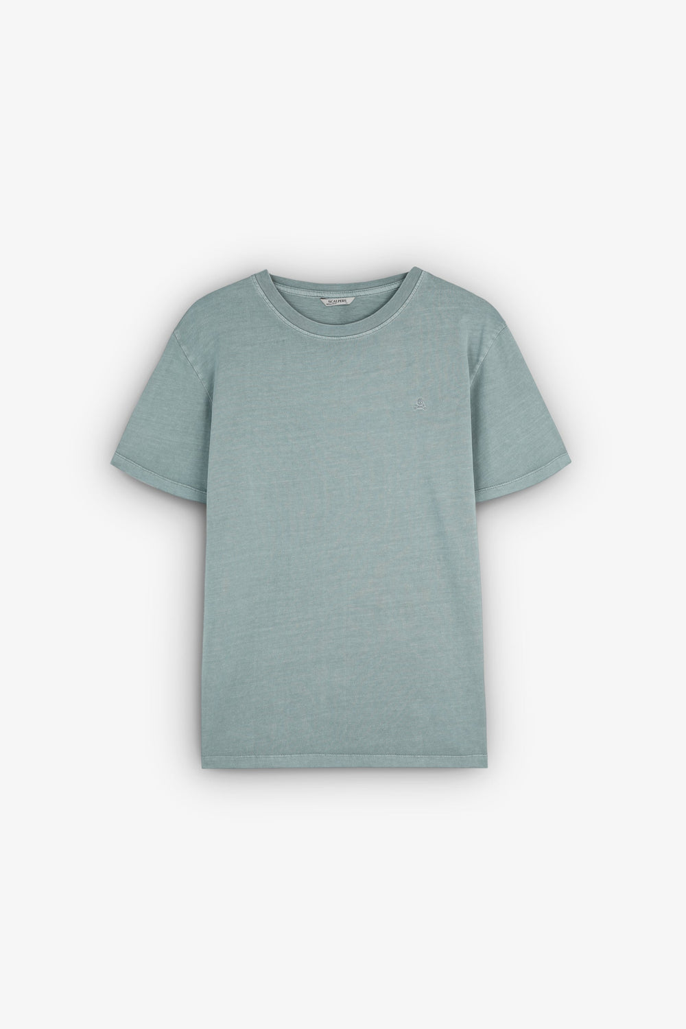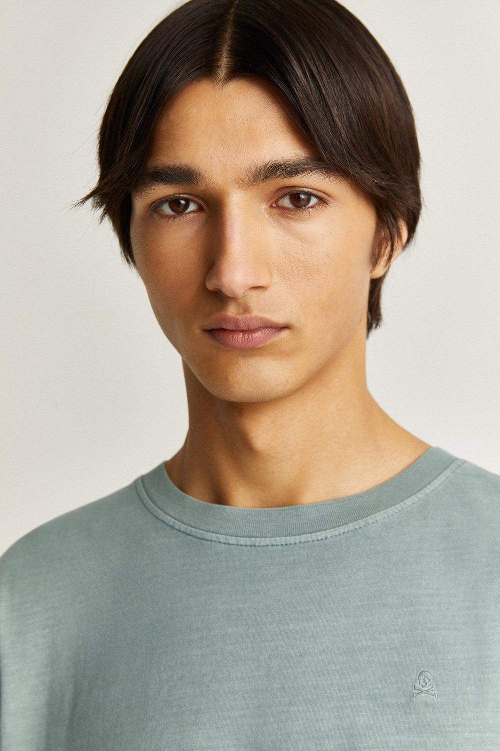 Camiseta efecto lavado con calavera bordada en pecho a tono.