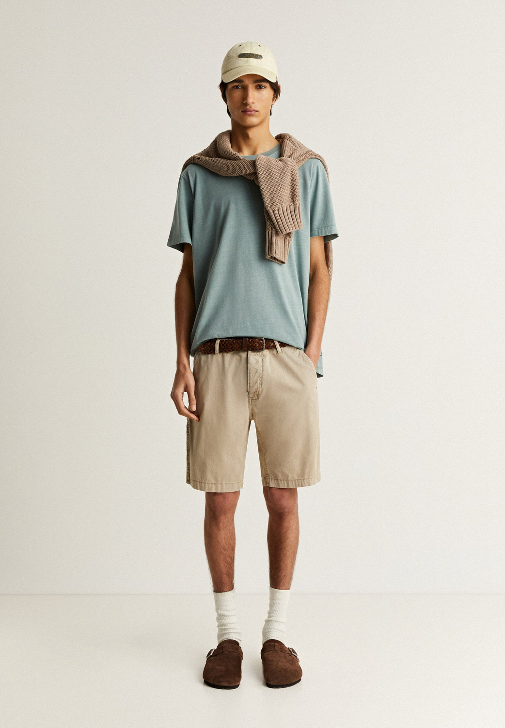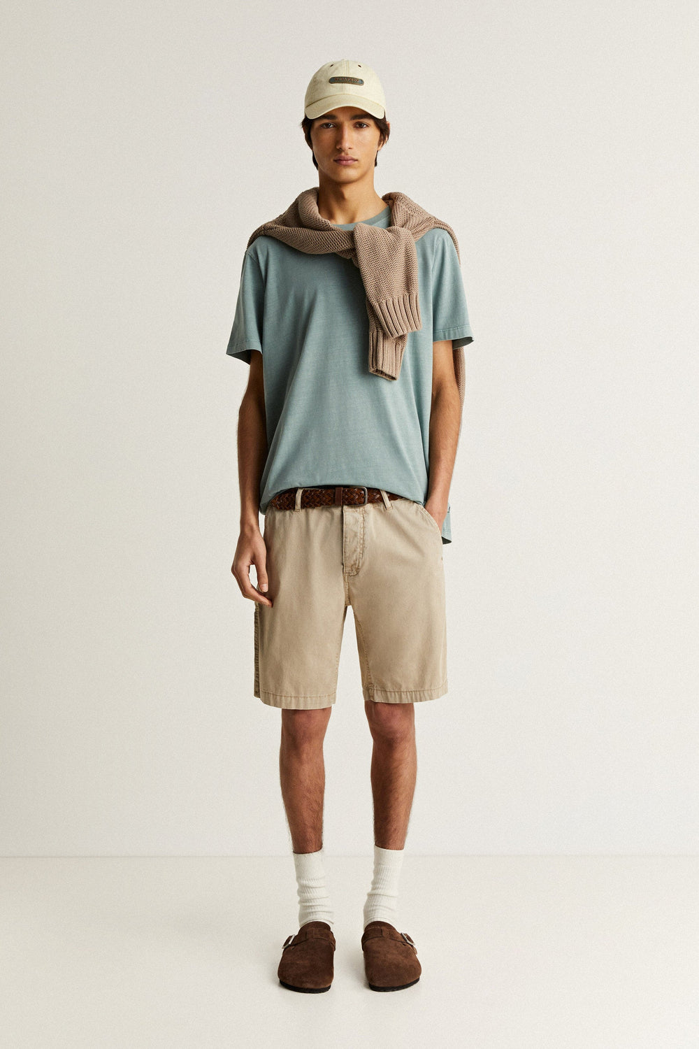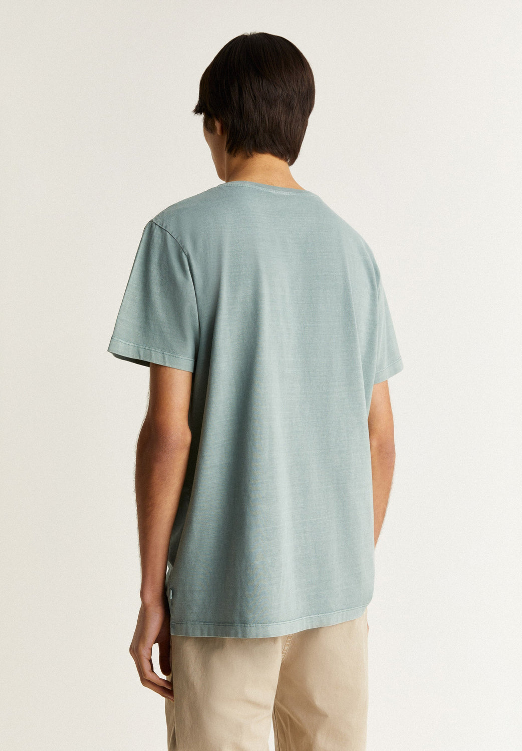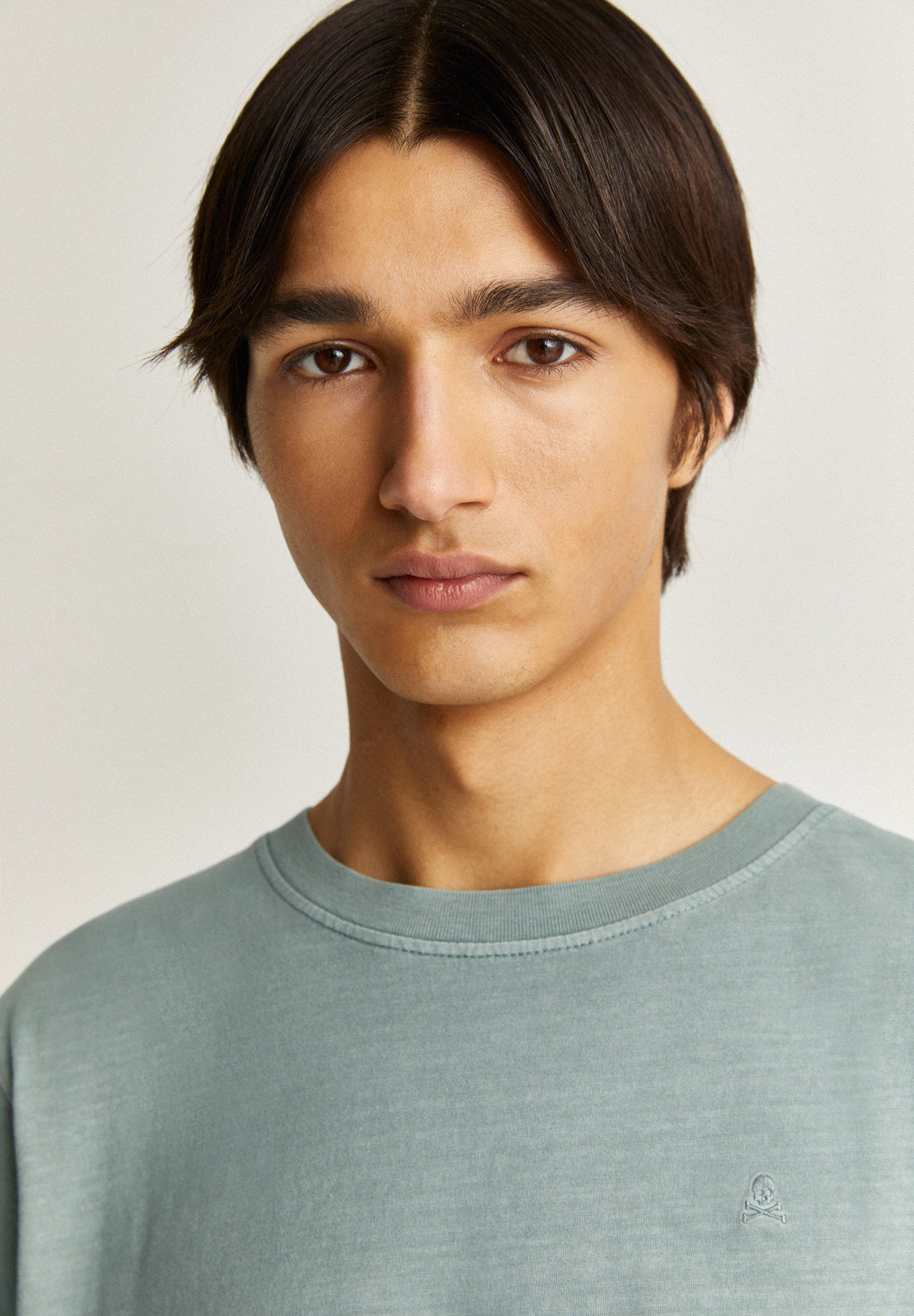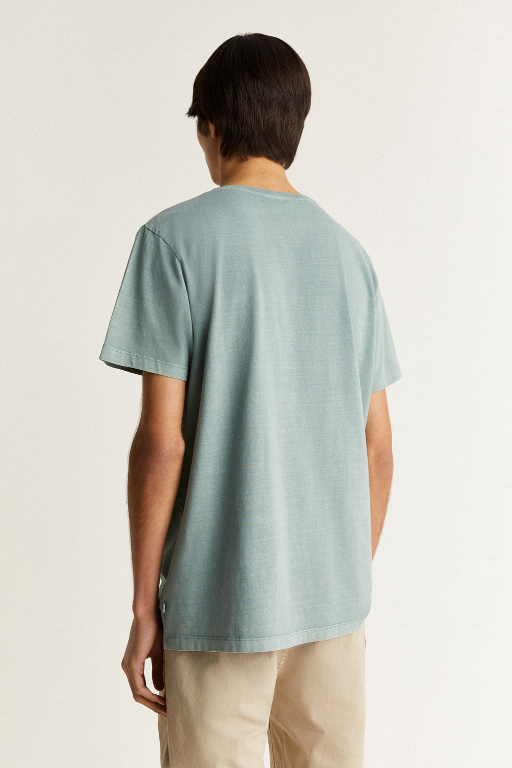 Camiseta efecto lavado con calavera bordada en pecho a tono.
