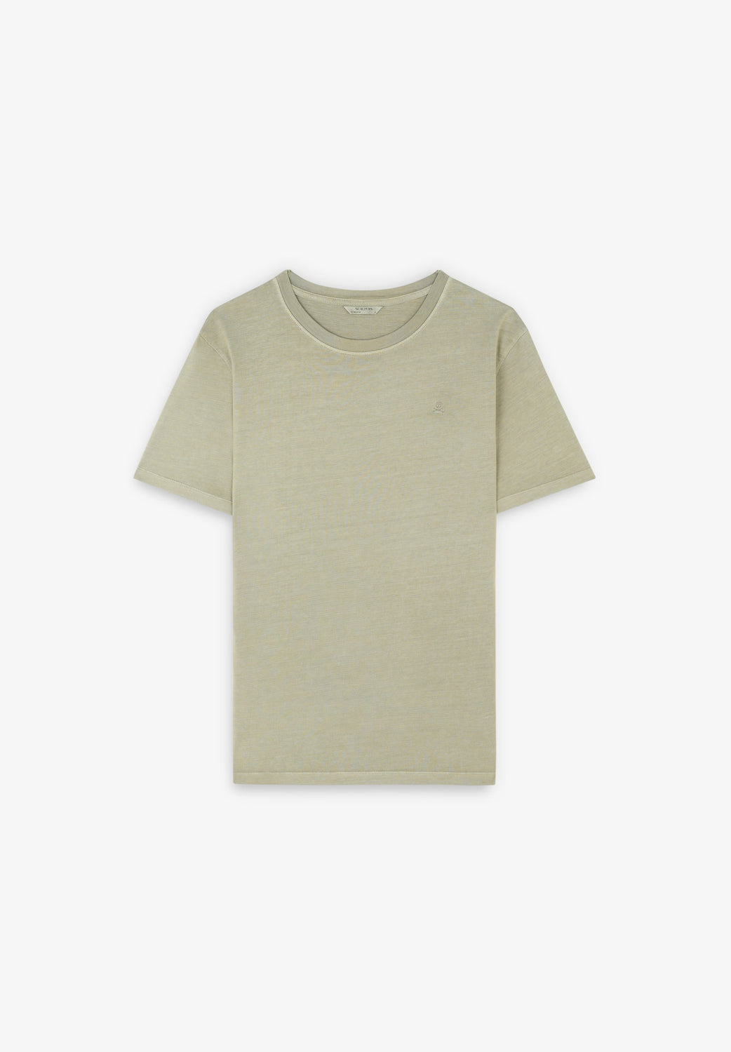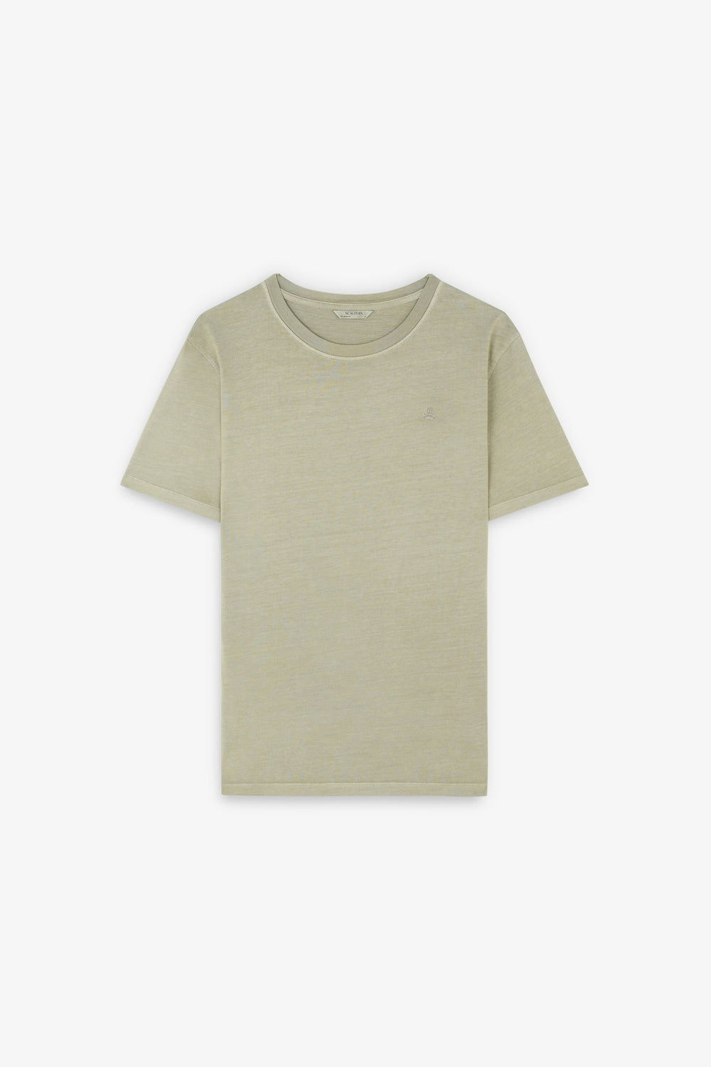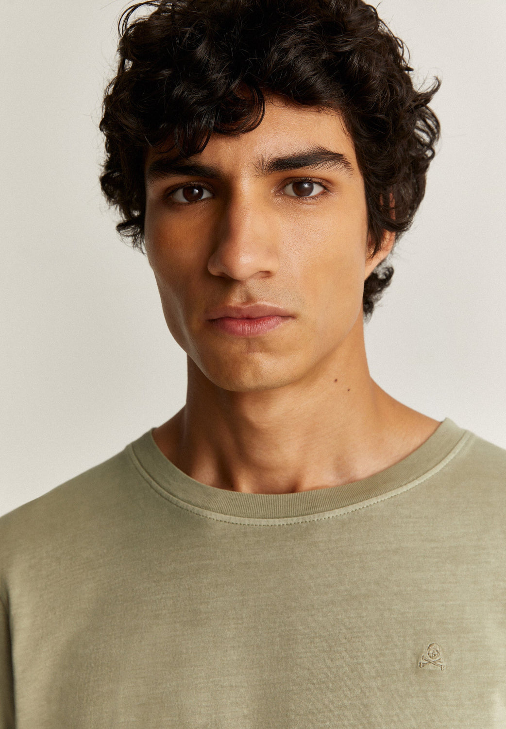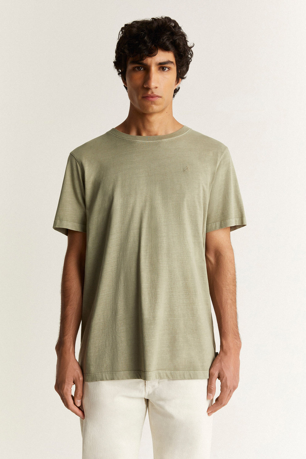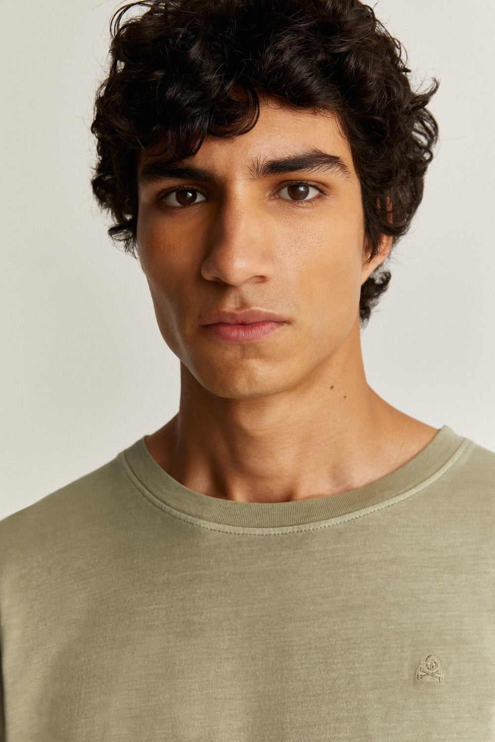 Camiseta efecto lavado con calavera bordada en pecho a tono.