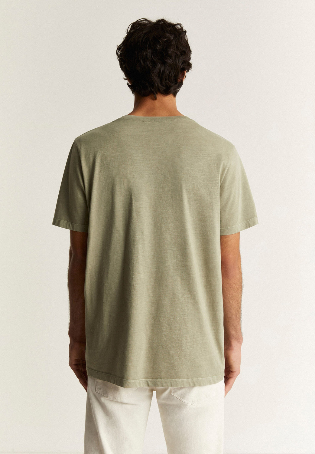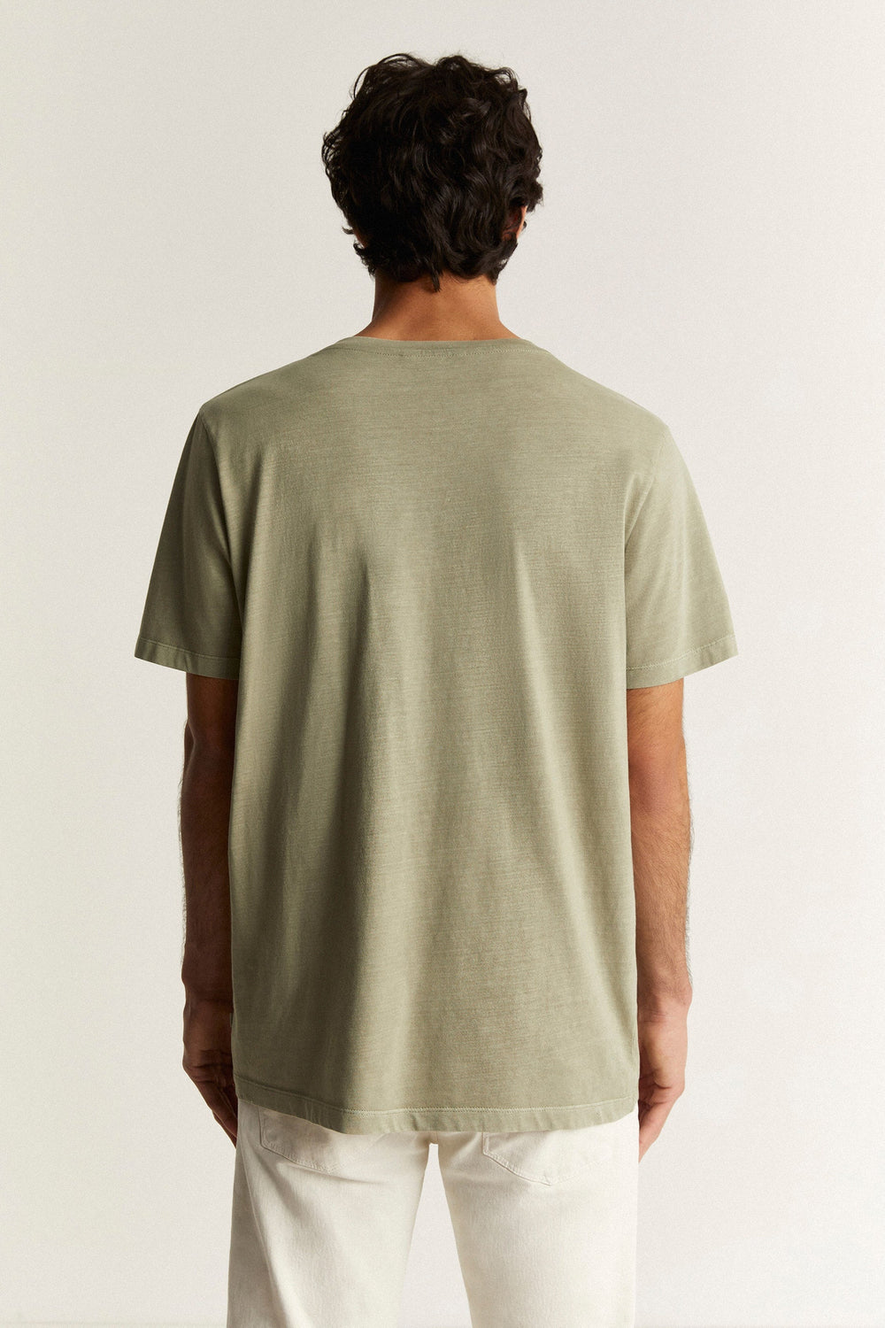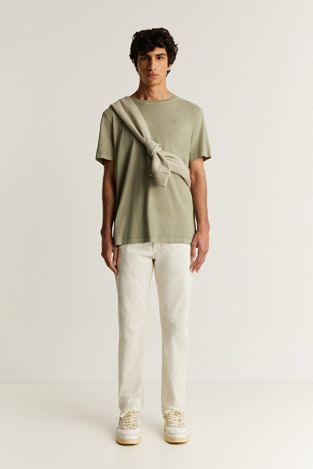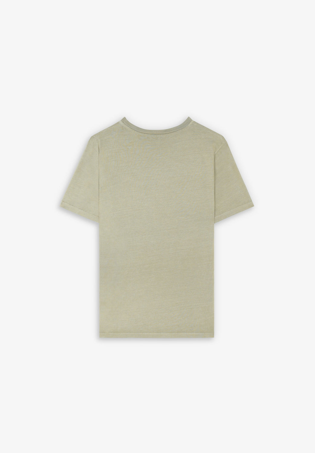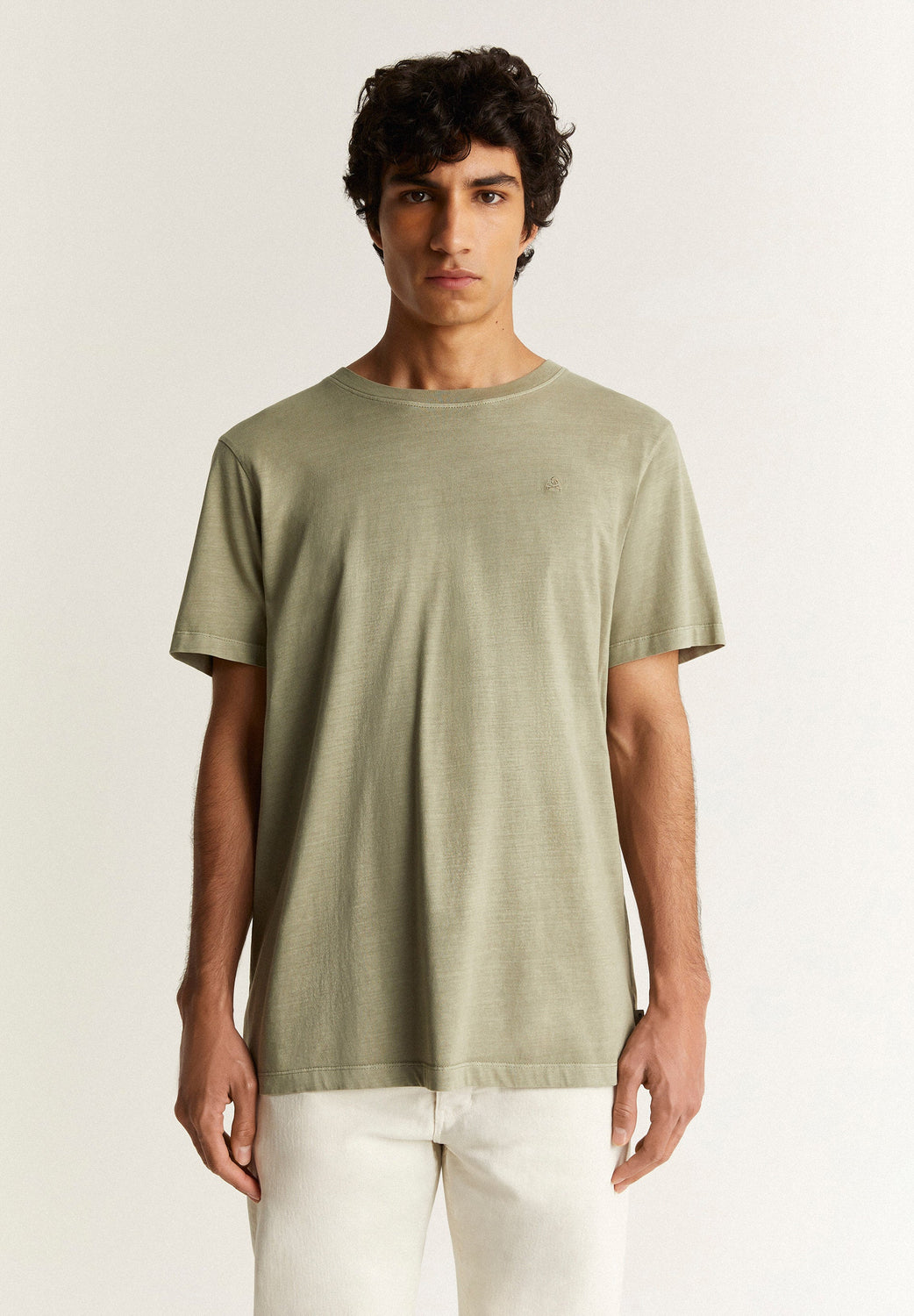 Camiseta efecto lavado con calavera bordada en pecho a tono.