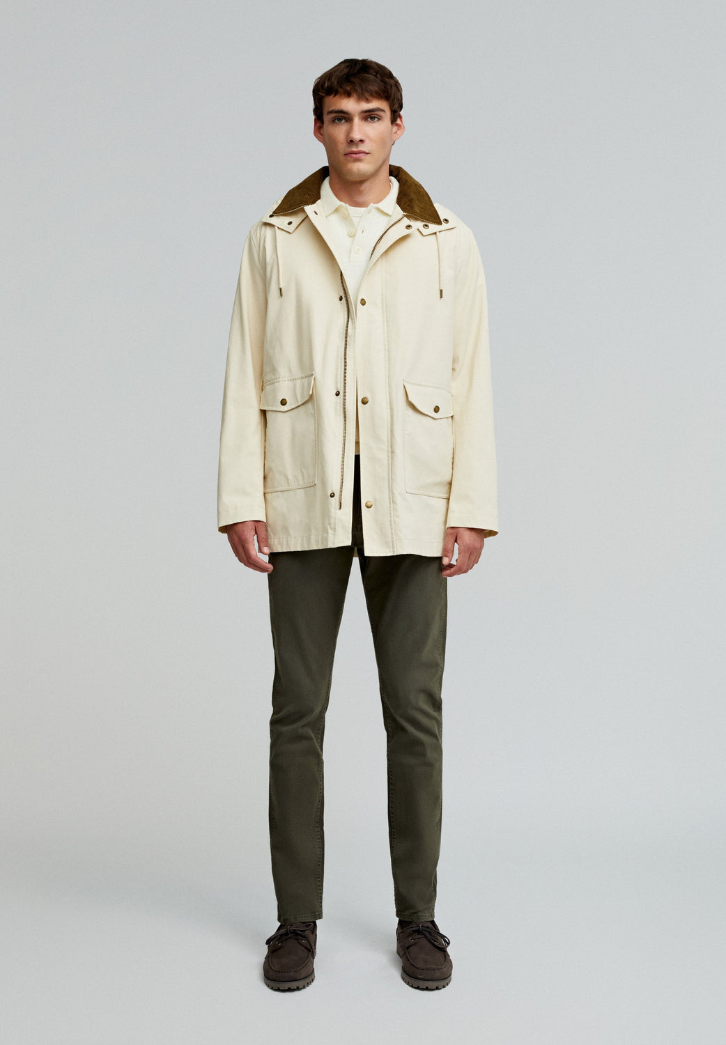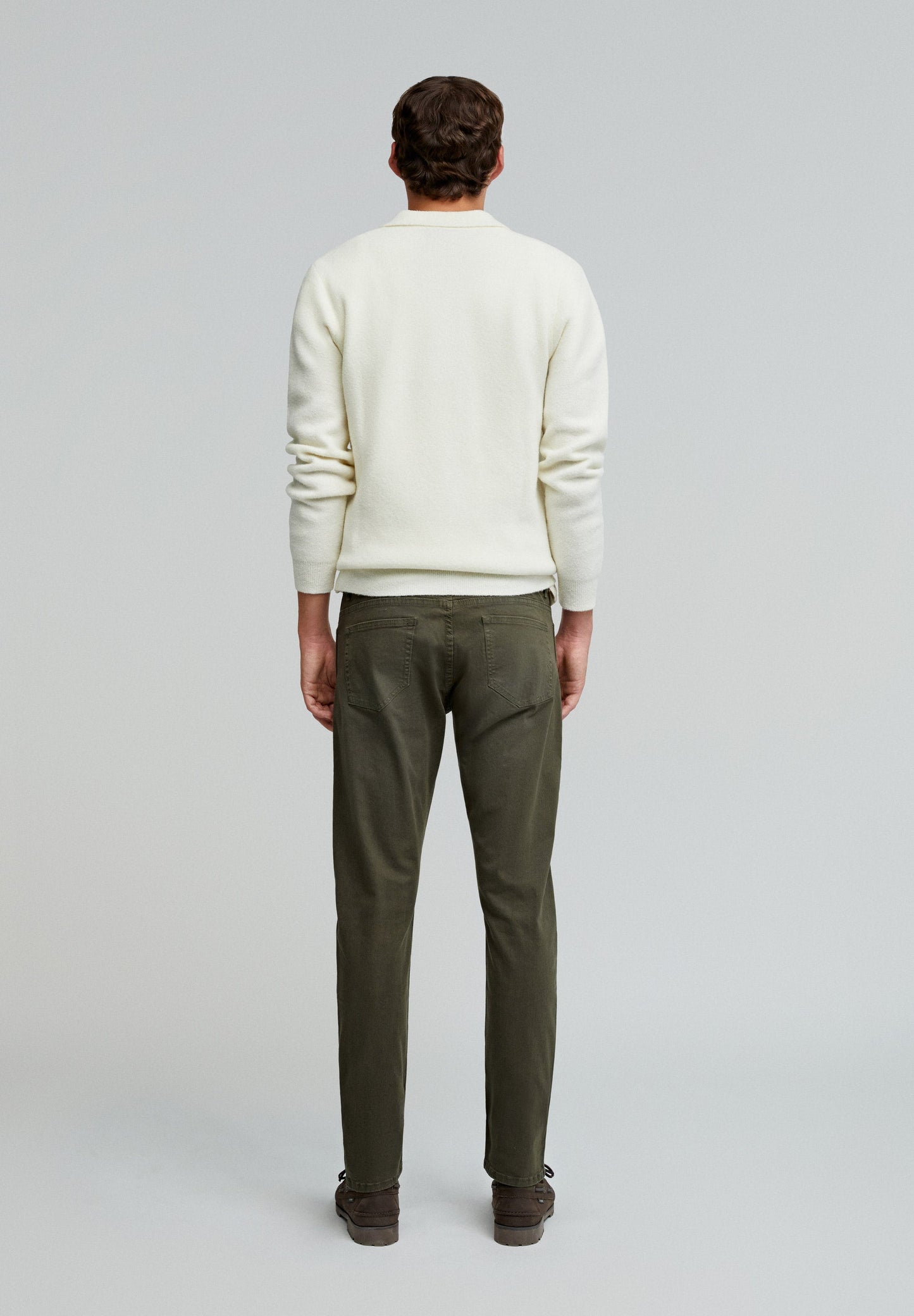 Pantalón confeccionado en algodón ligeramente elástico. Regular fit, cierre con botón y cremallera. Bolsillos laterales y trasero. Trabillas en cintura.
