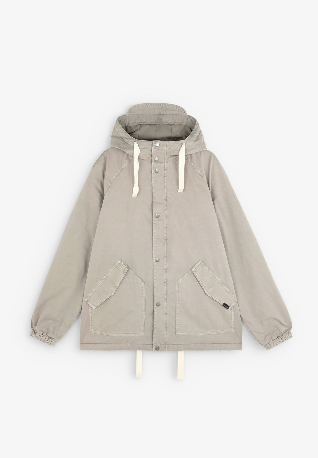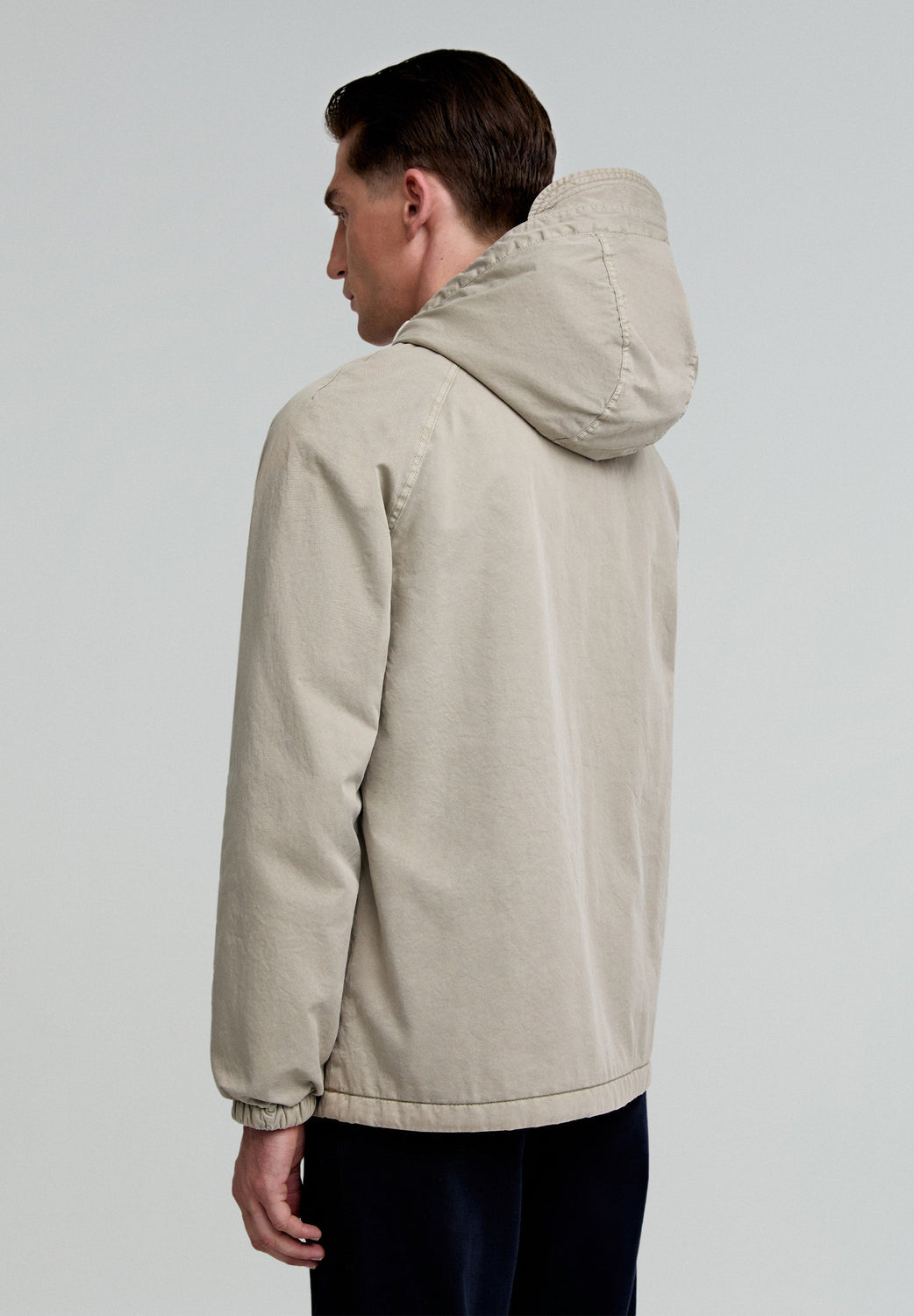 Chaqueta ligera confeccionada en 100% algodón BCI. Regular fit, cuello con capucha ajustable con cordones y cierre con snaps. Manga larga terminada en elástico y bolsillos con tapeta. Bolsillo interior con cremallera.