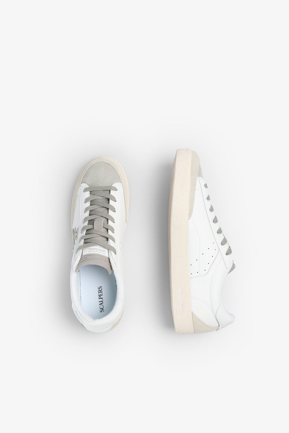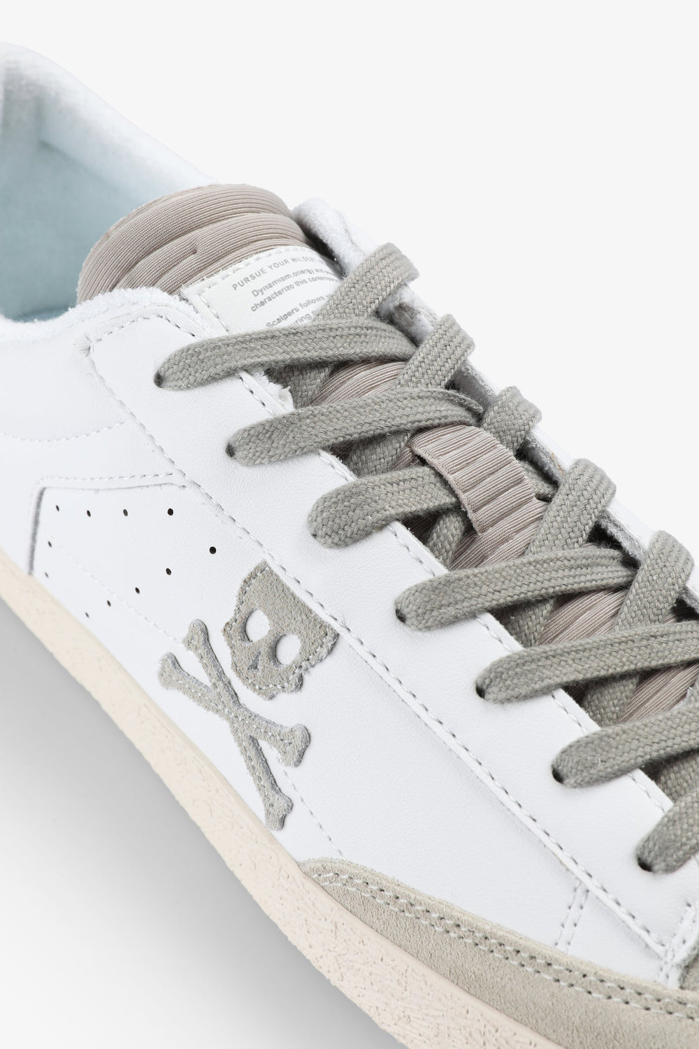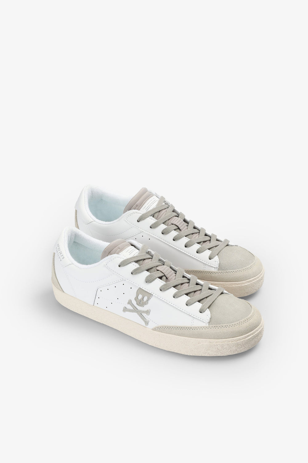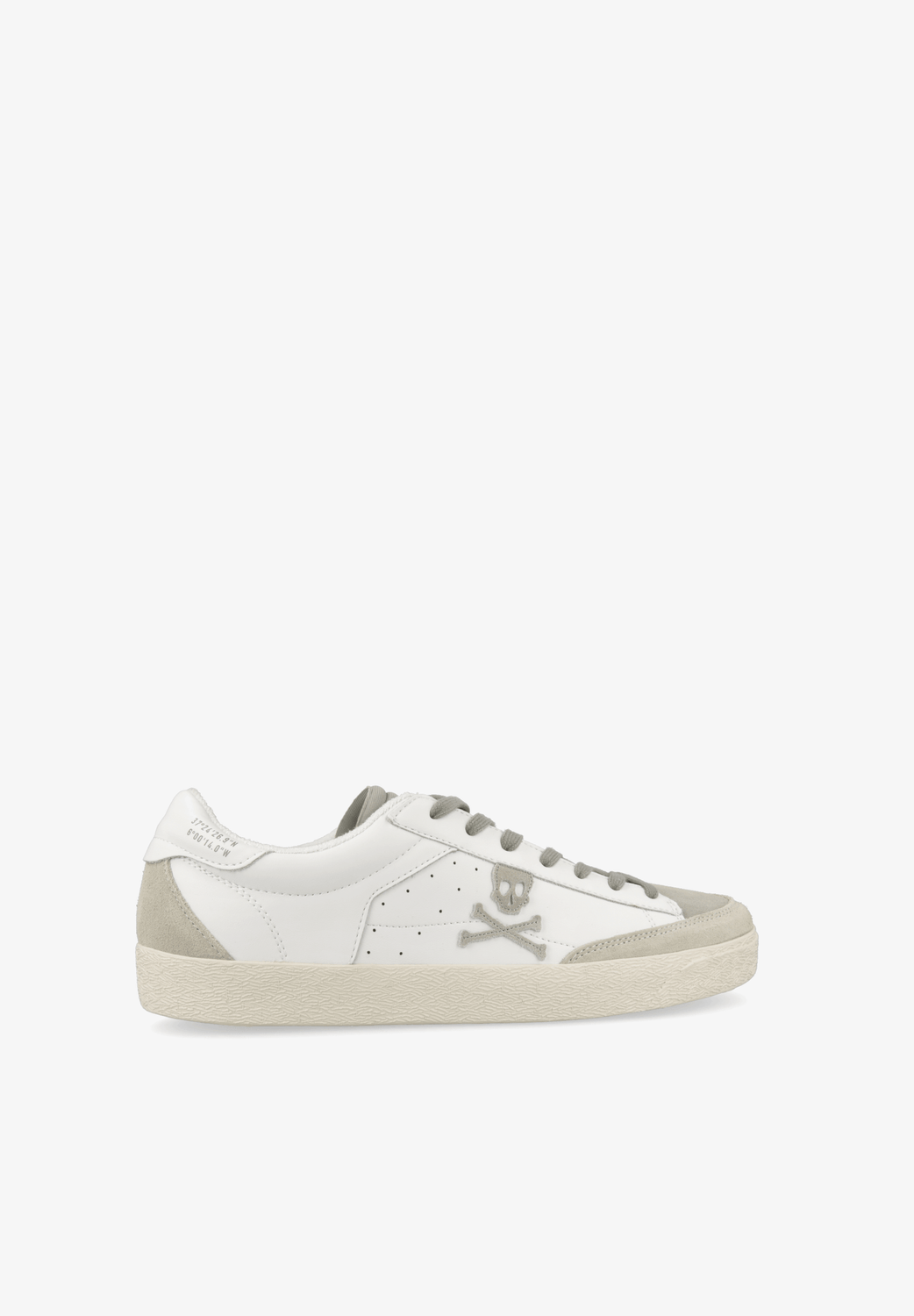Sneakers confeccionadas en piel. Cierre con cordones a tono, suela de goma y calavera lateral en relieve. Detalle en puntera y talón a contraste.