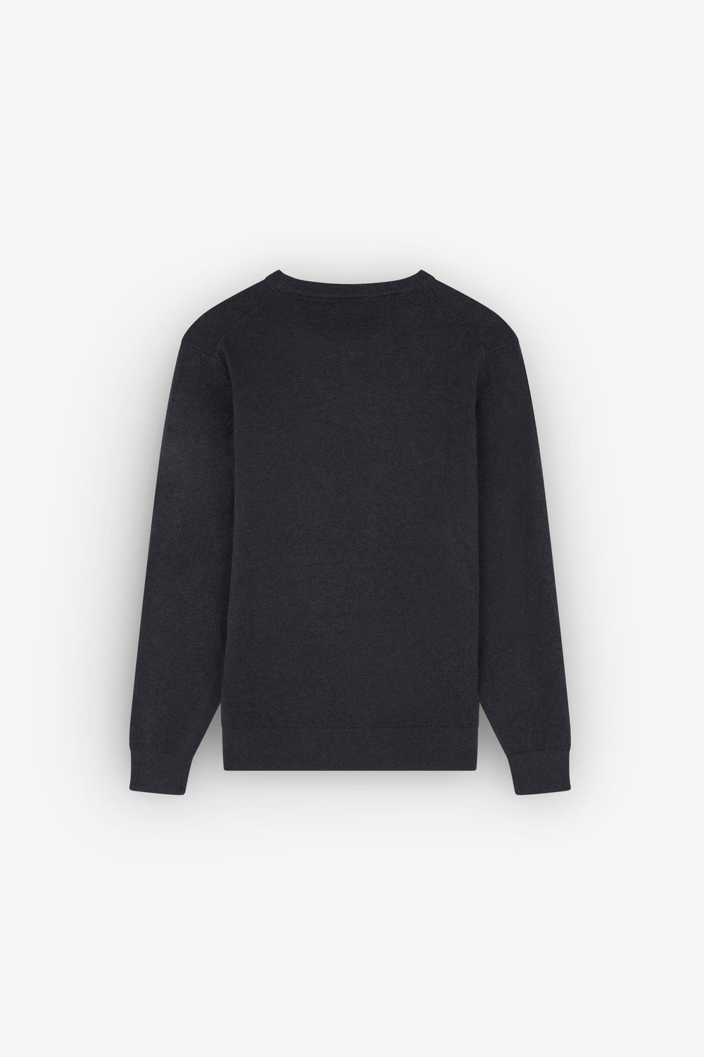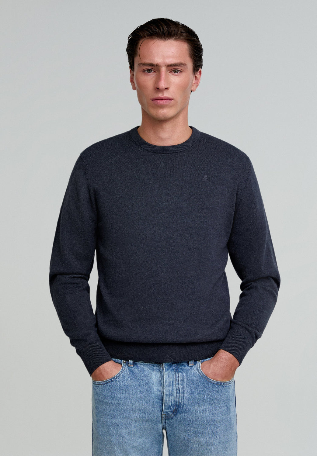 Jersey confeccionado en algodón BCI y cashmere. Regular fit, cuello redondo y manga larga.